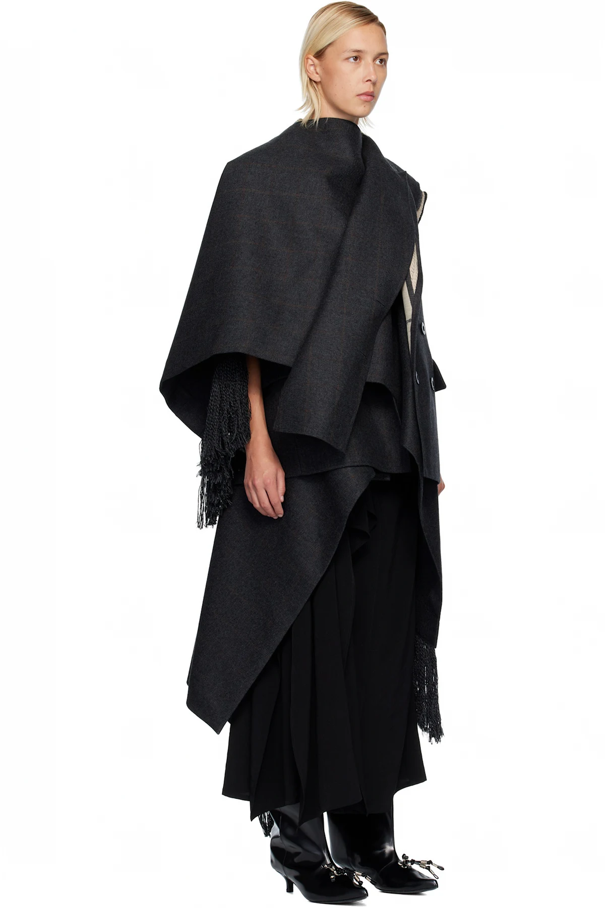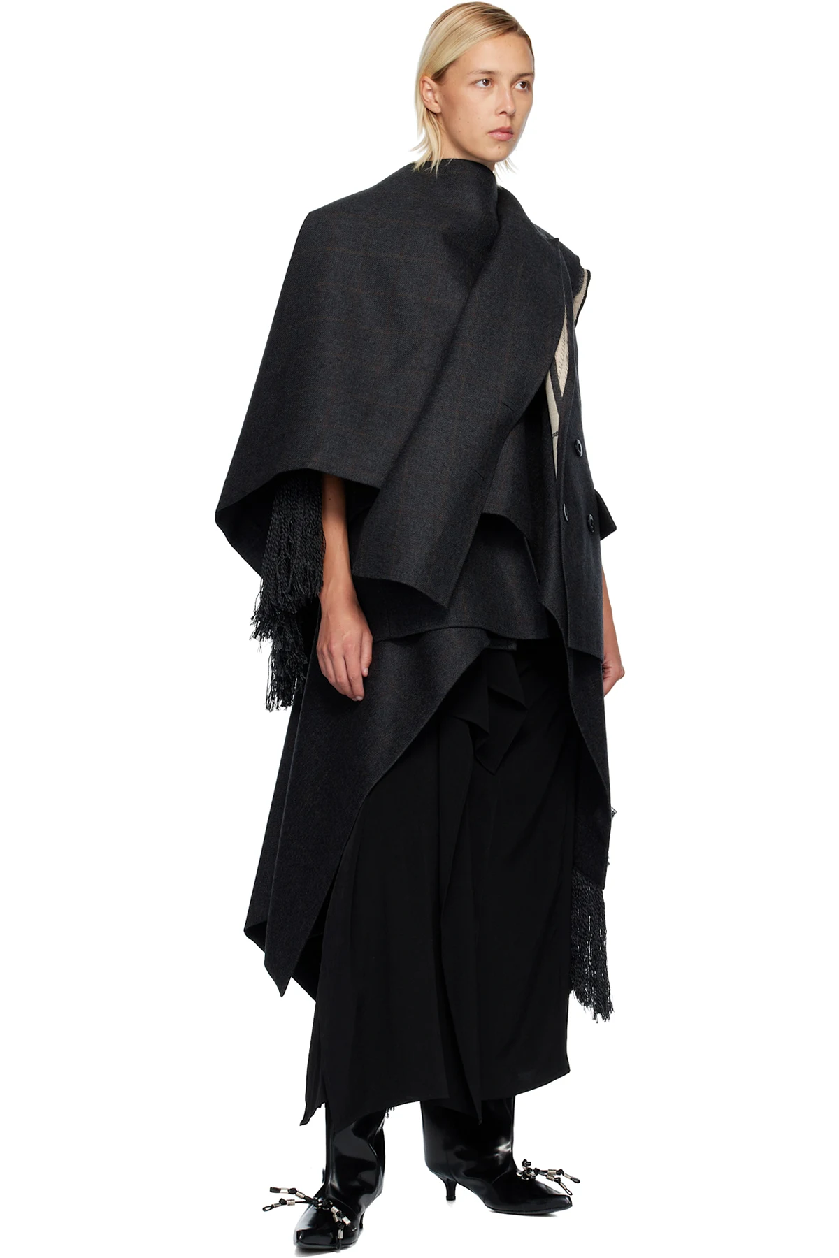 · Fringed detailing at asymmetric hem