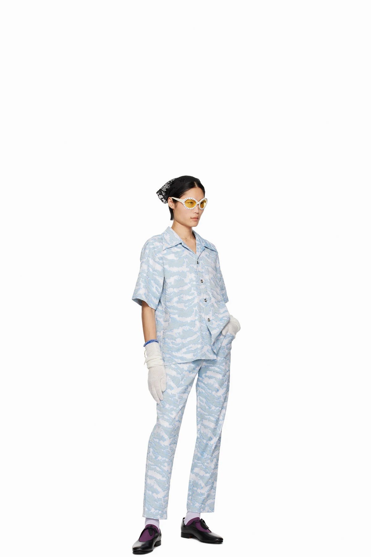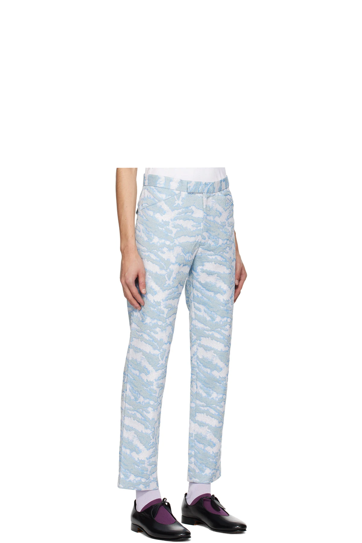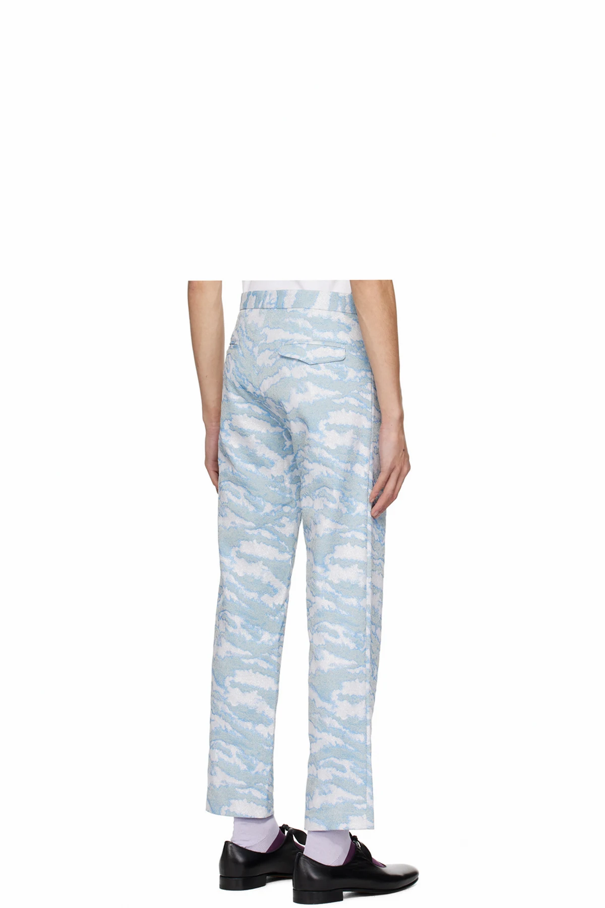Stretch cotton-blend gobelin trousers. Metallic thread detailing and jacquard graphic pattern throughout.