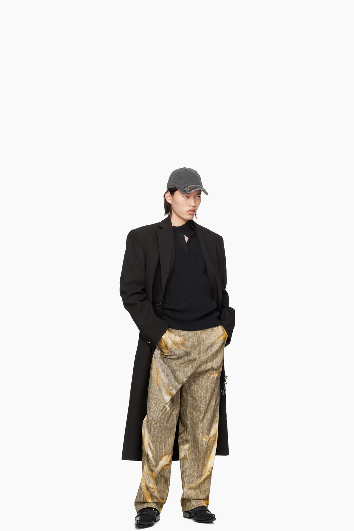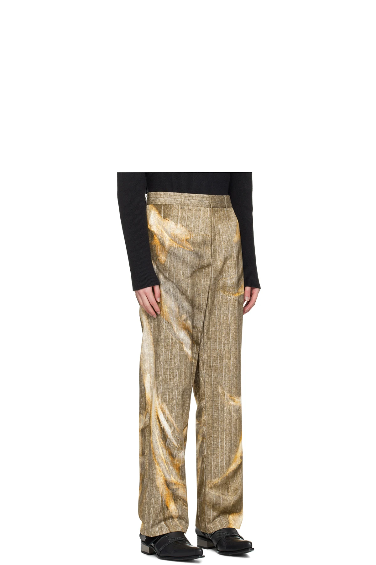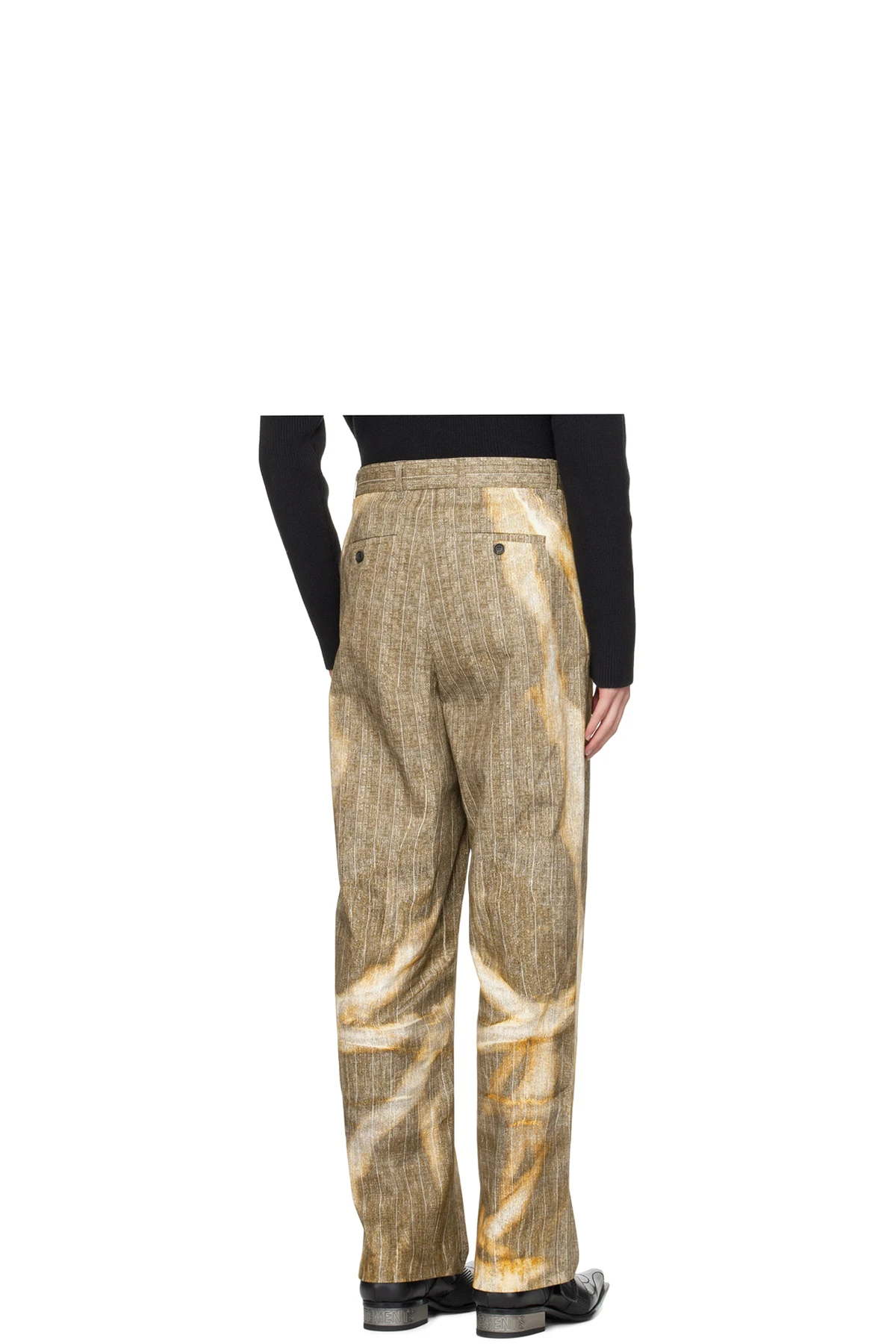 Stretch cotton twill trousers. Modified stripes and bleach effect printed throughout.