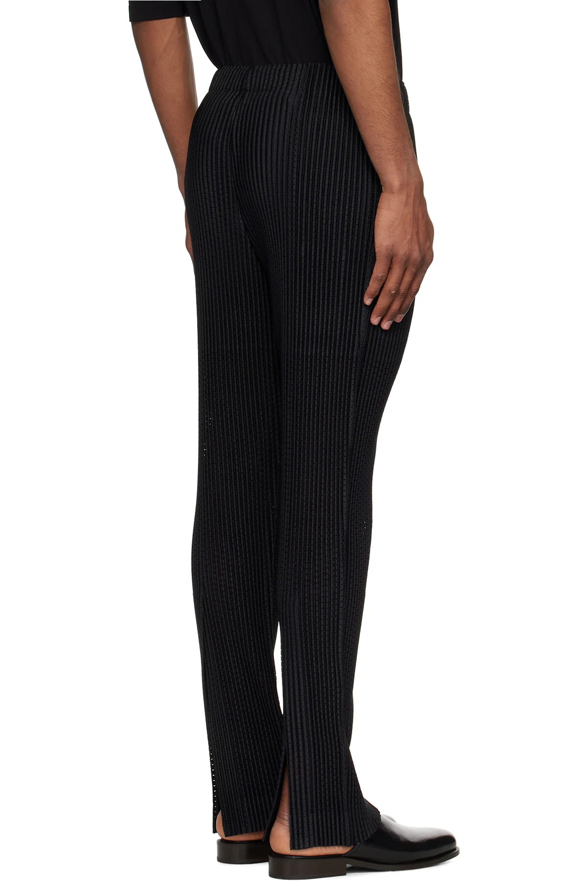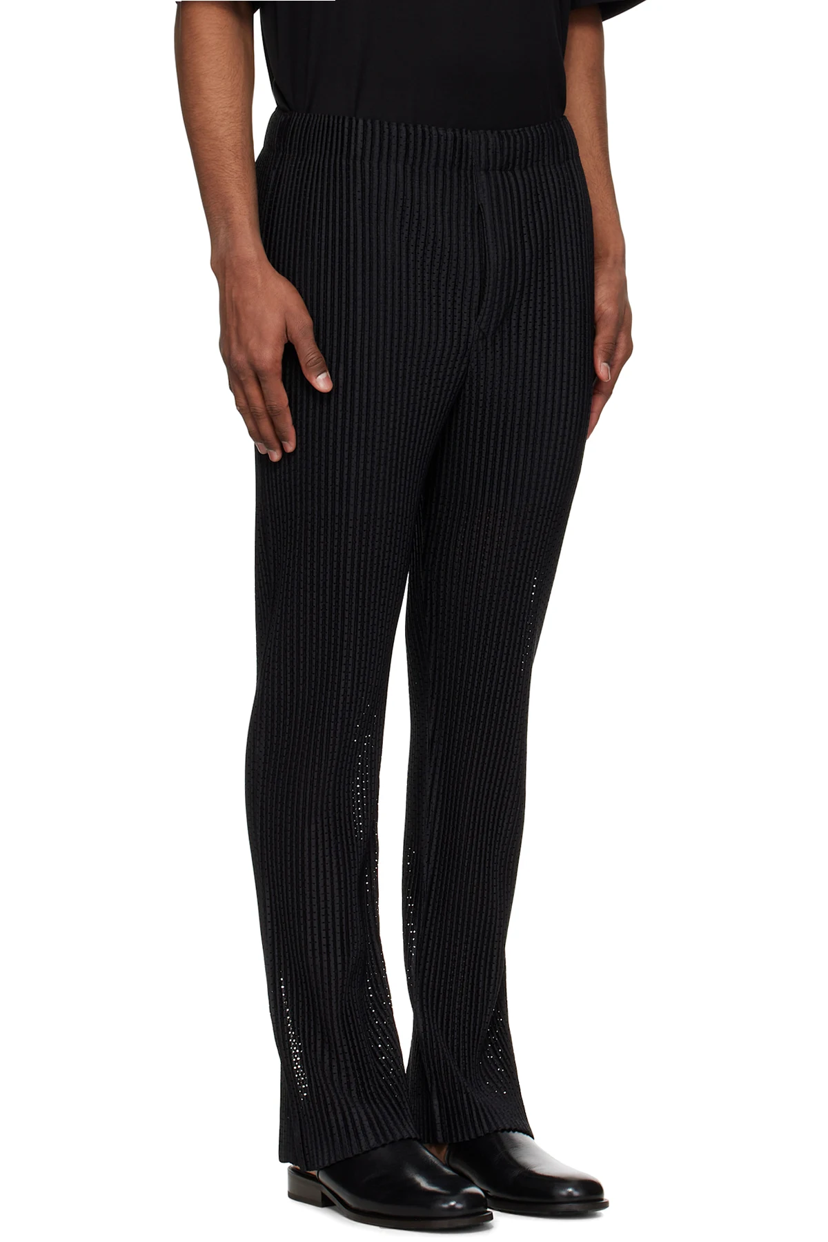 Garment-pleated recycled polyester tricot trousers. Perforated detailing throughout.