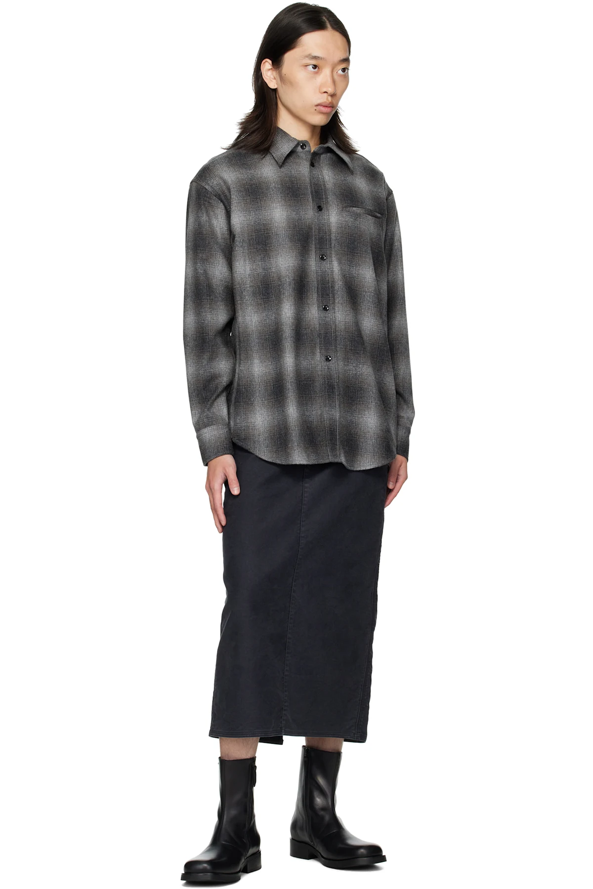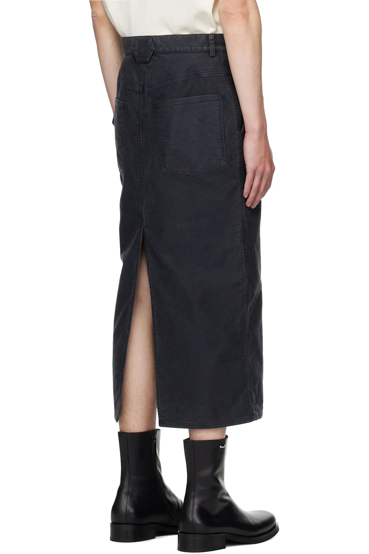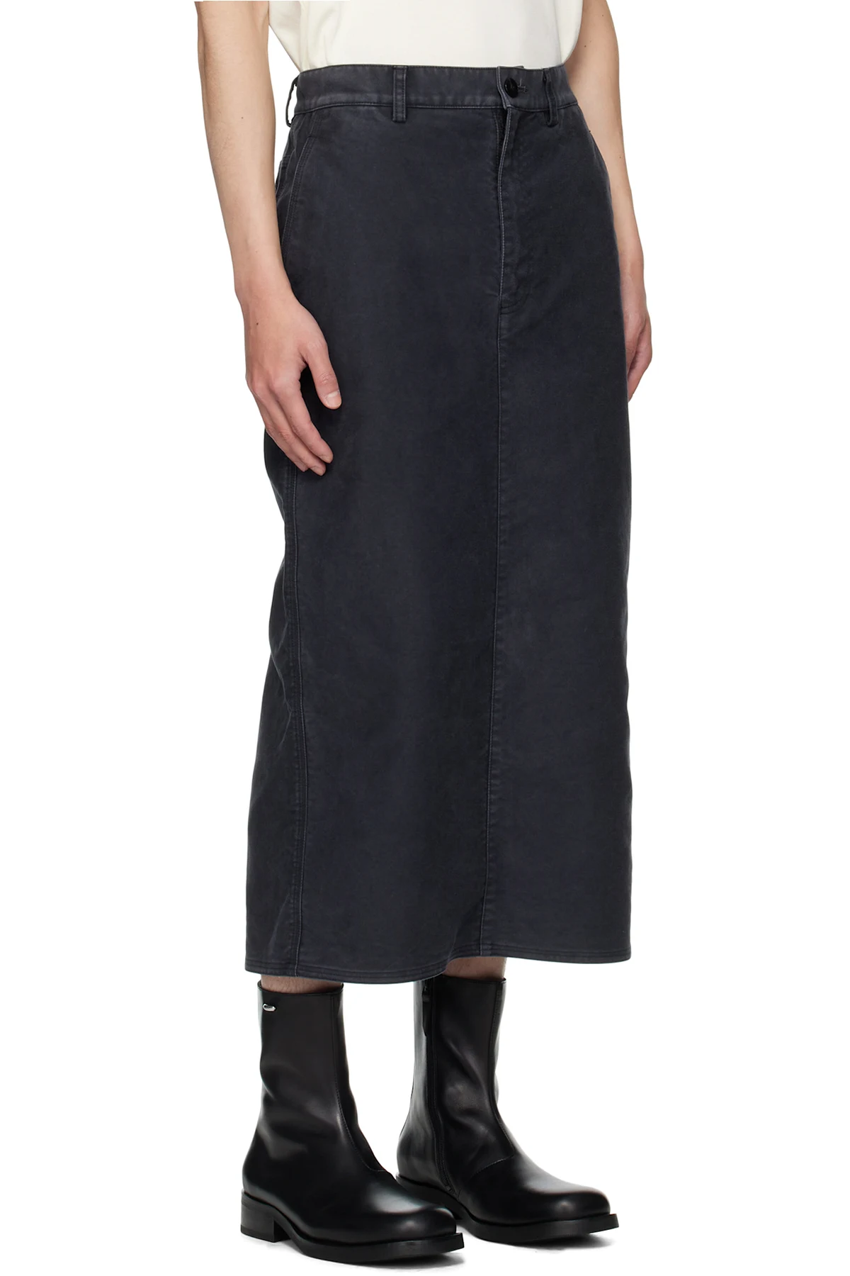 Peached cotton canvas midi skirt.