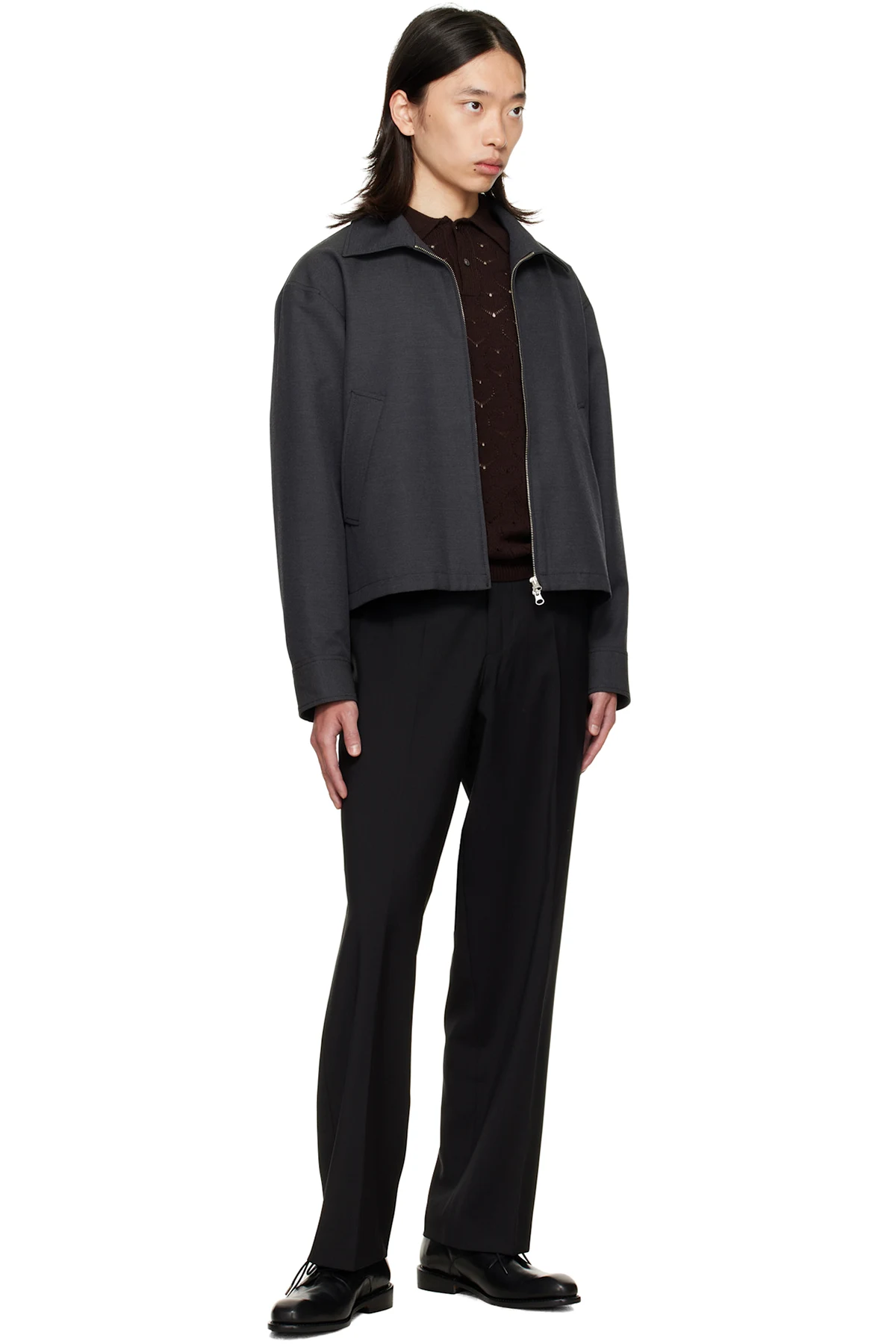 Body: 100% wool. Trim: 70% polyester, 30% cotton. Lining: 100% polyester.