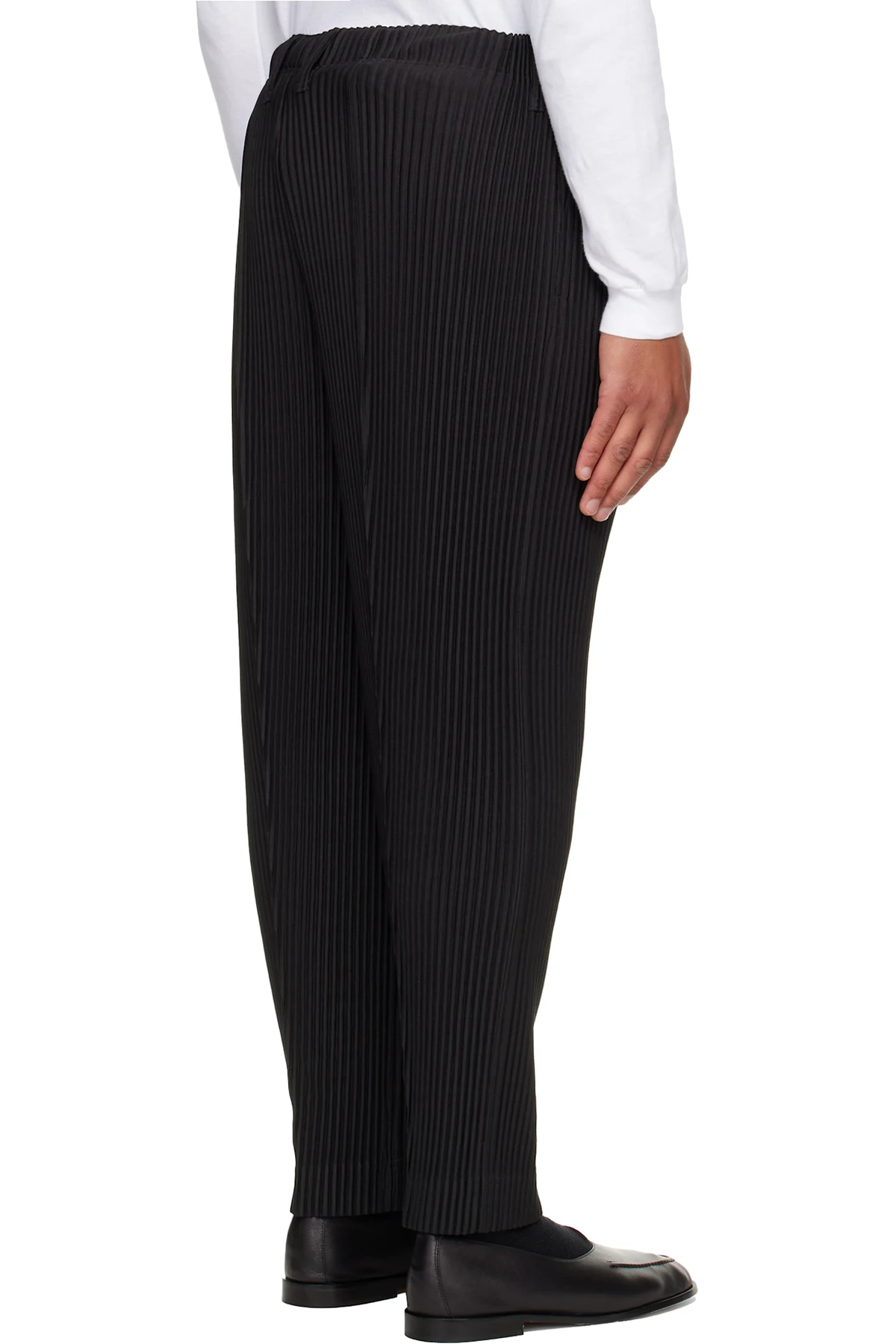 Garment-pleated tricot trousers.