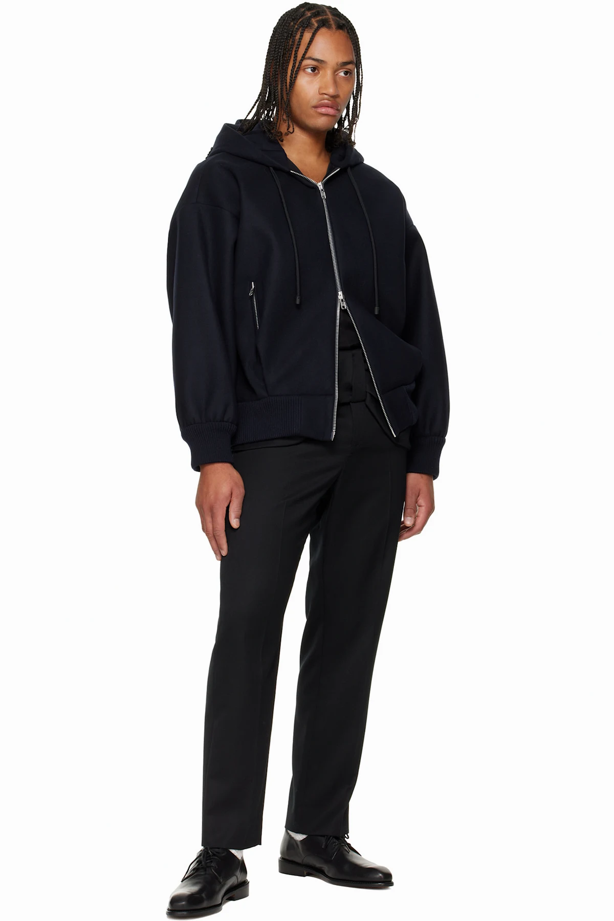 Body: 55% polyester, 45% virgin wool. Lining: 60% acetate, 40% cupro.