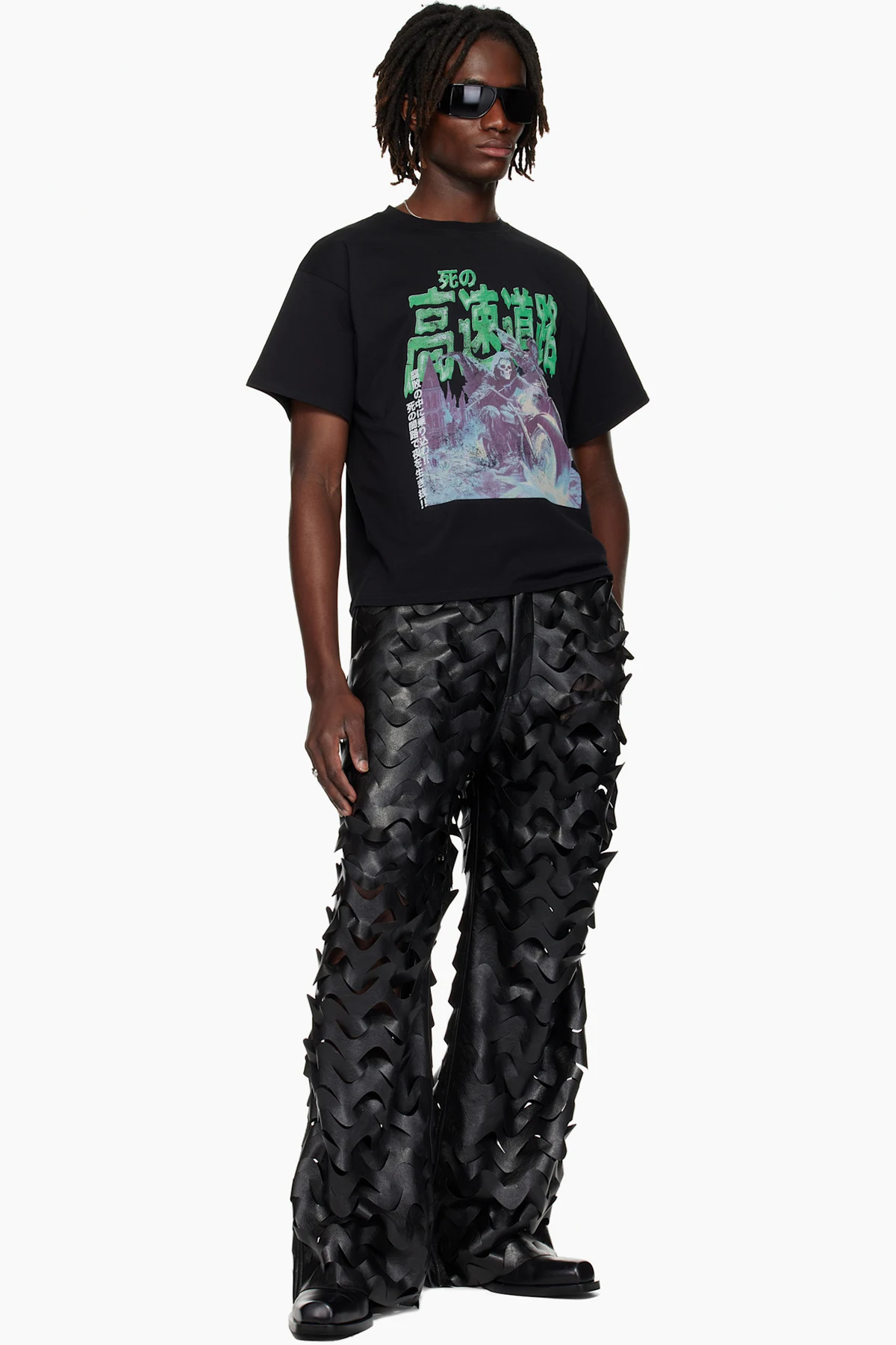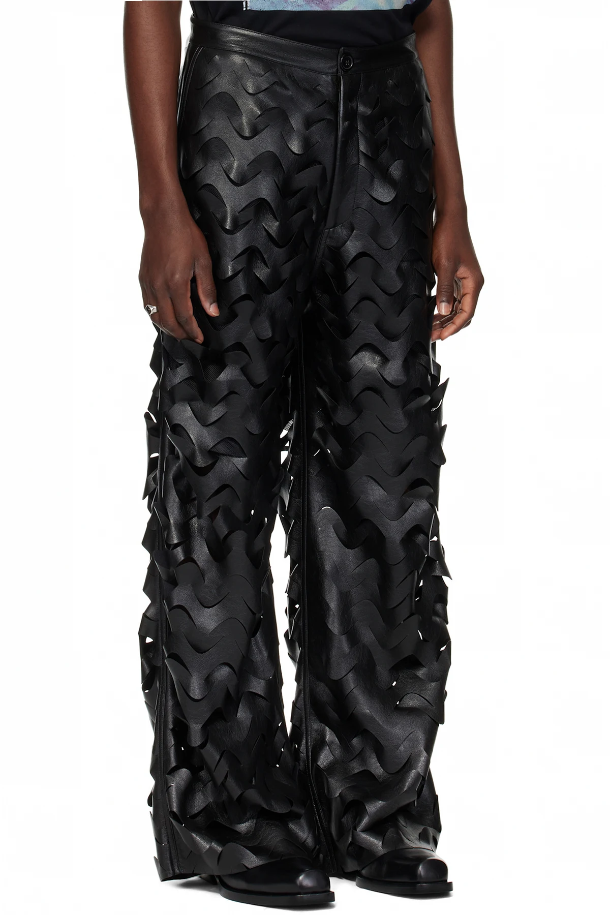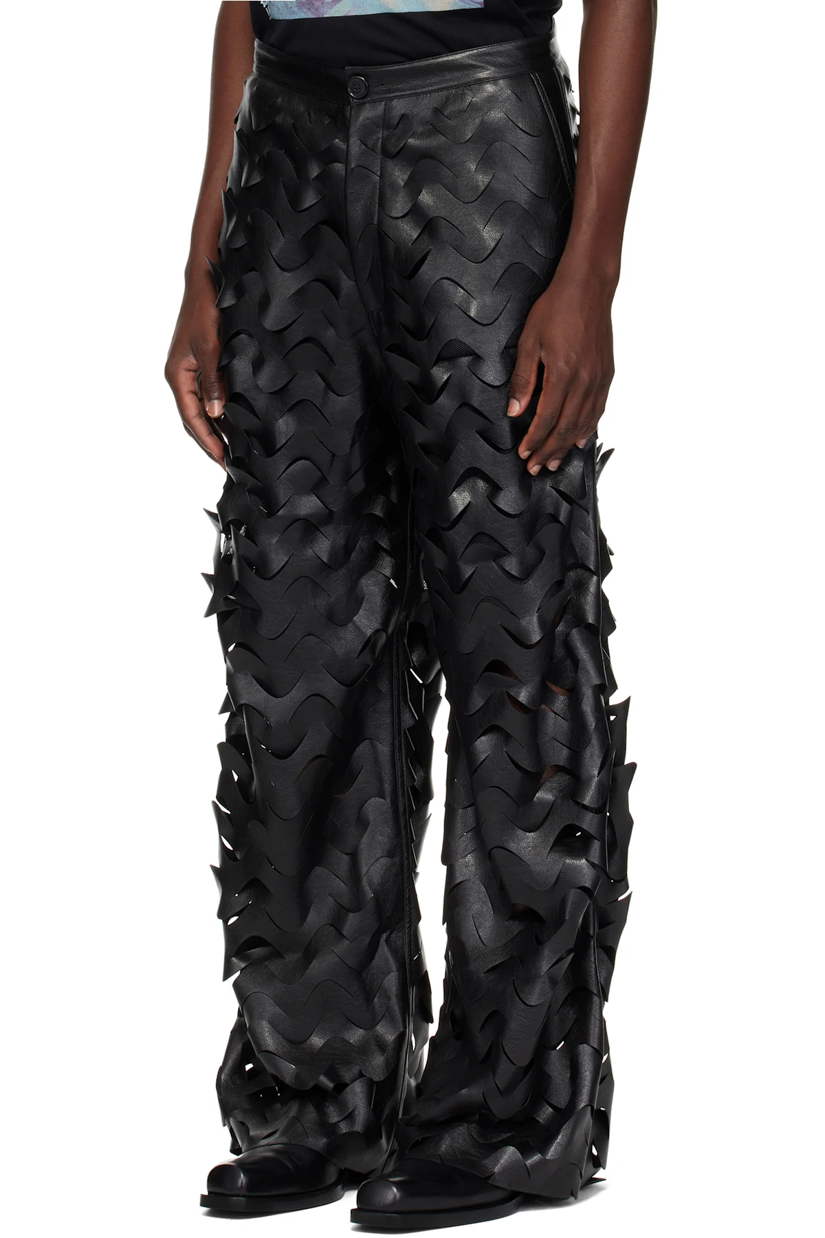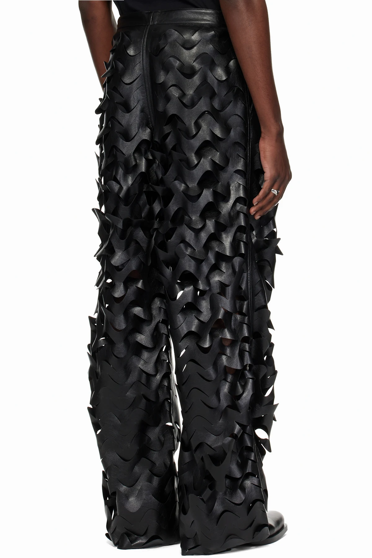 Black Laser Cut Wide-Leg Faux-Leather Pants