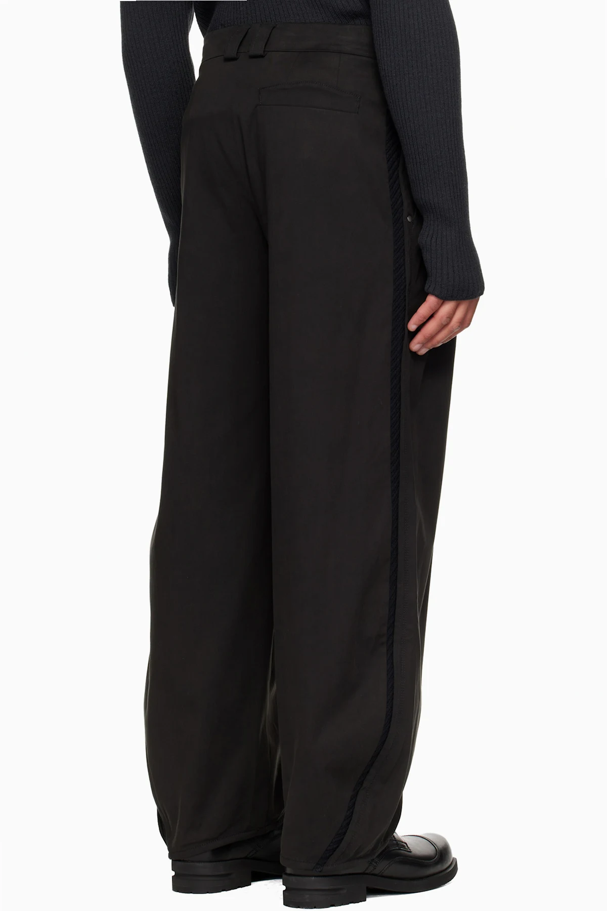 · Rib-knit virgin-wool blend trim and rivets at outseams