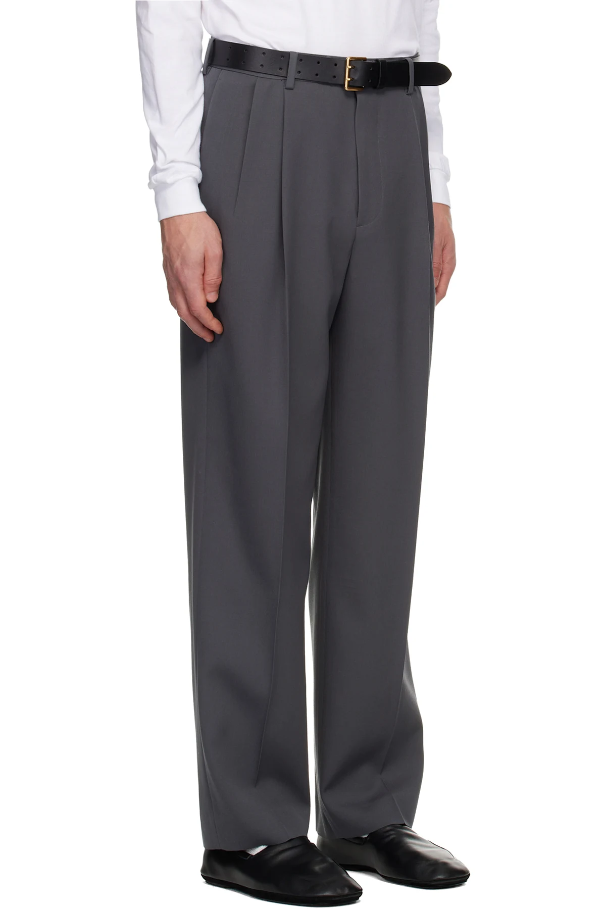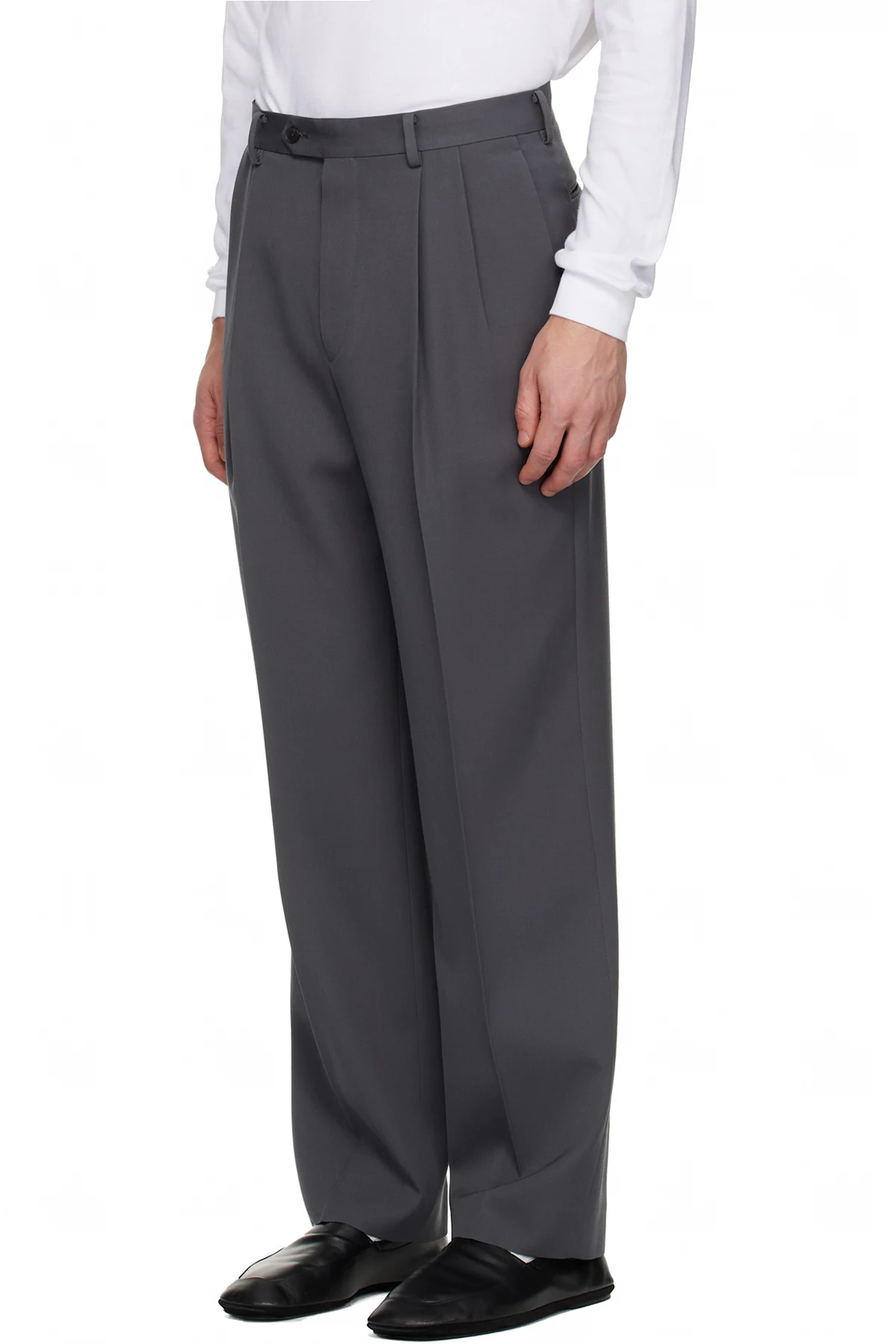 Gray Light Wool Two-Tucks Trousers