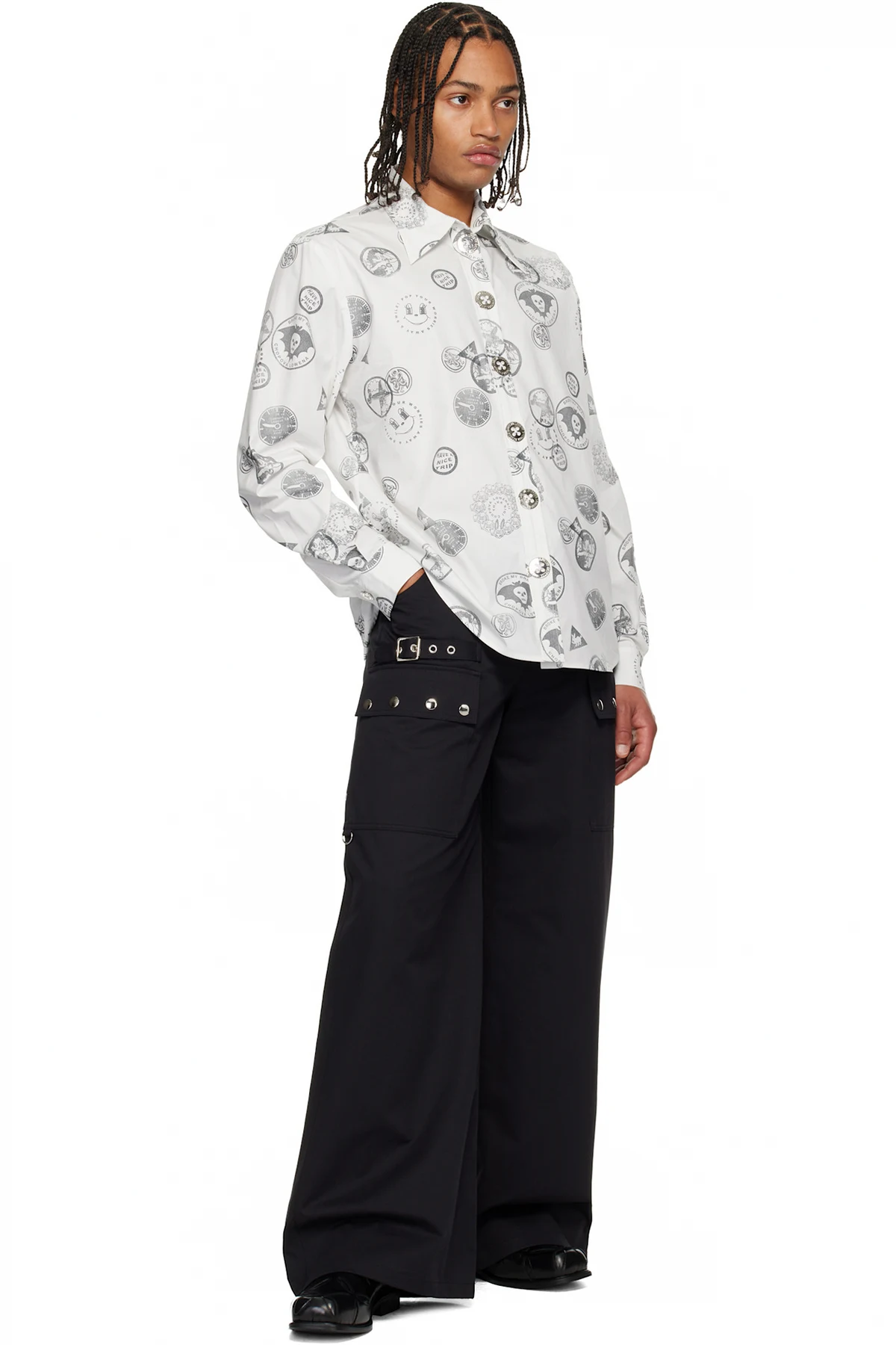 · Detachable pin-buckle belt with graphic turn-lock fastenings