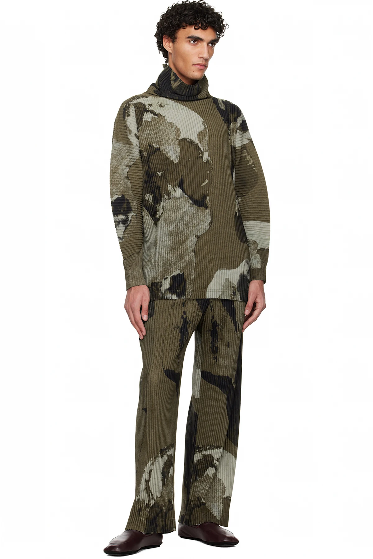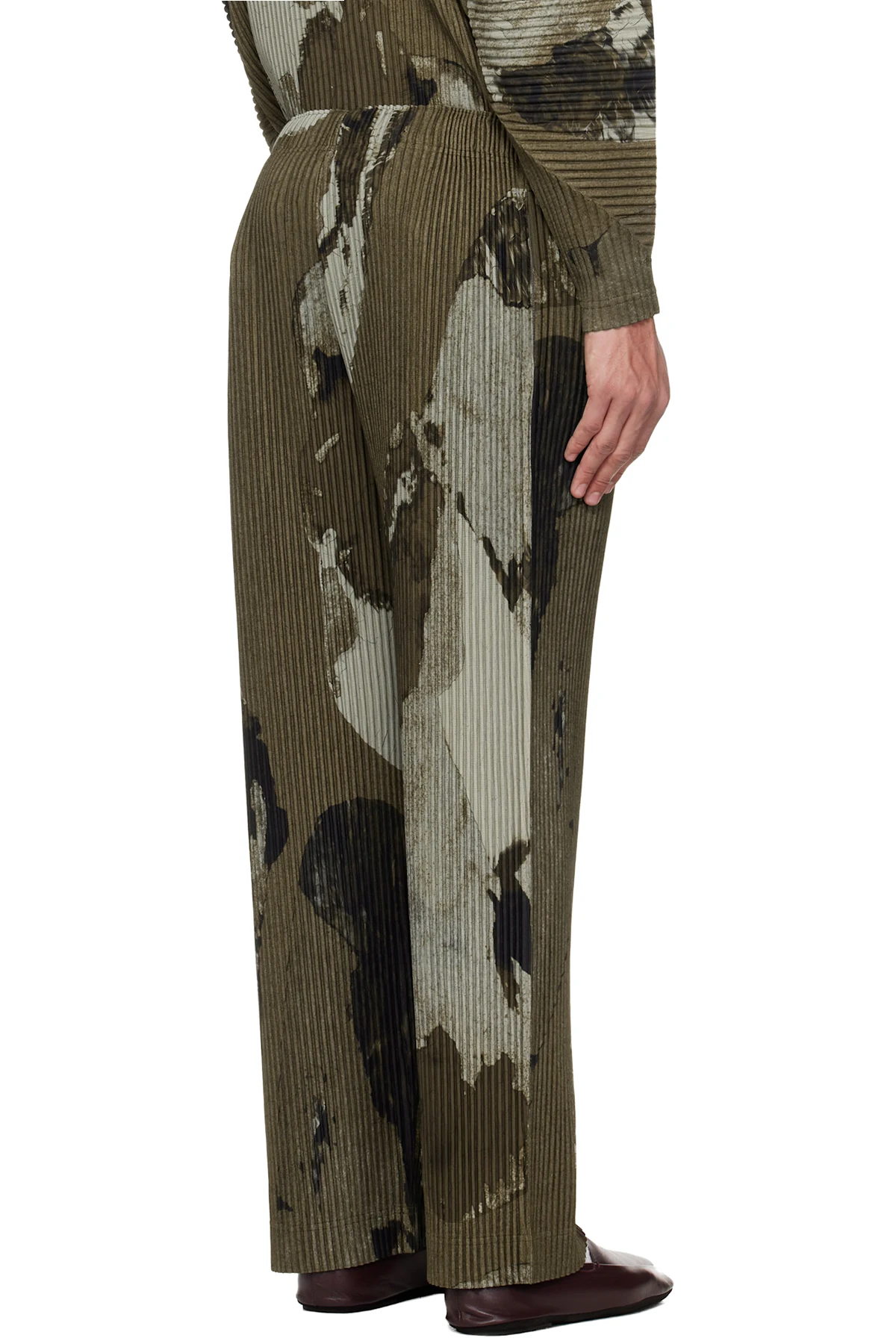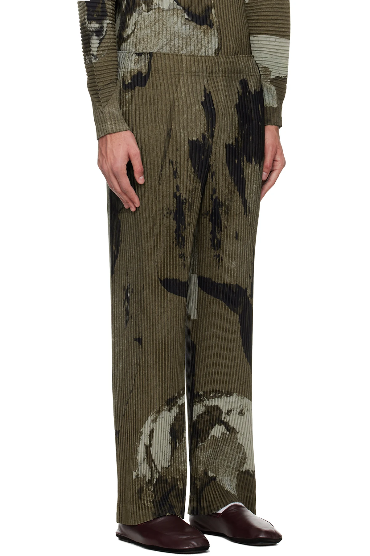Garment-pleated tricot trousers.