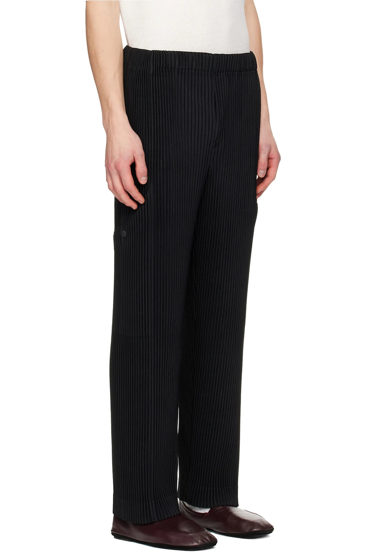 Garment-pleated tricot trousers.