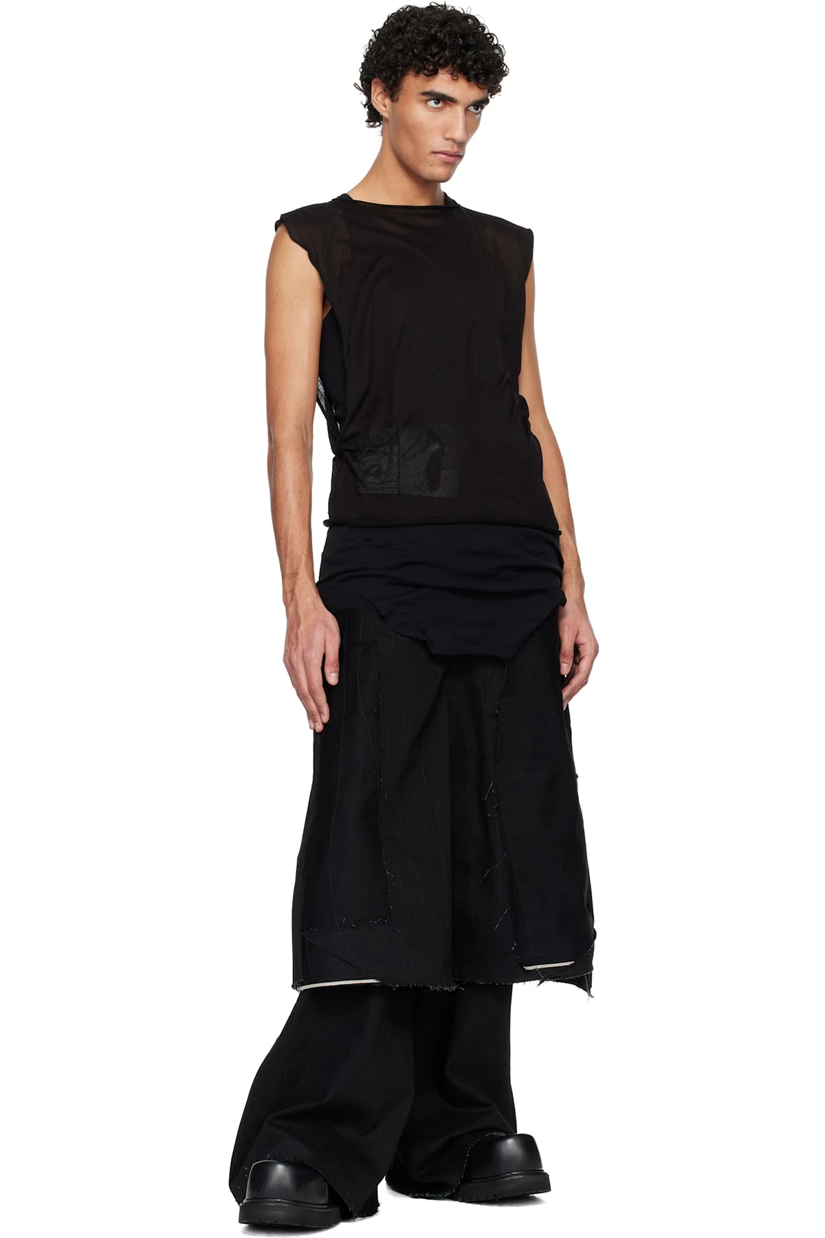 · Raw edges and stitching throughout