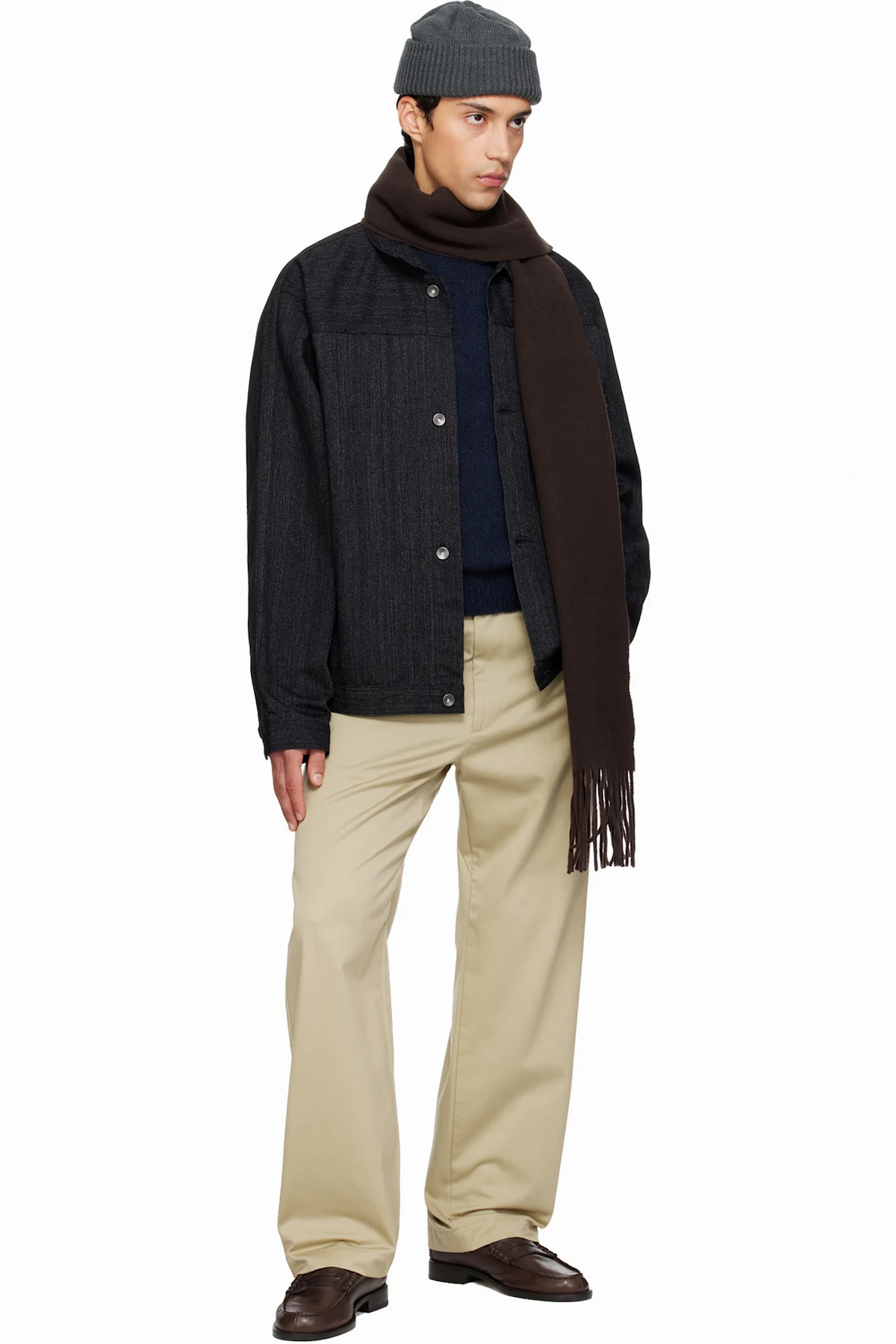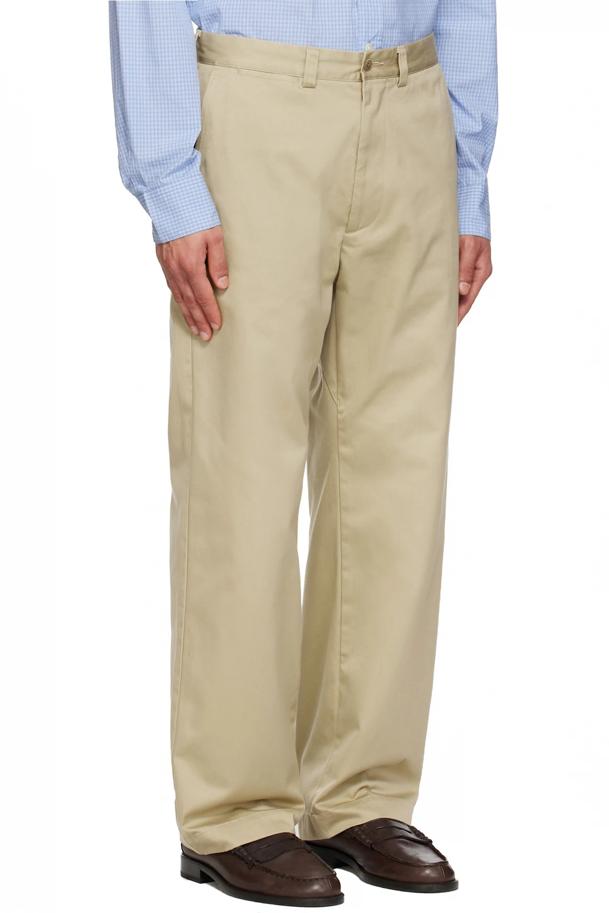 Khaki Wide Straight Chino Trousers