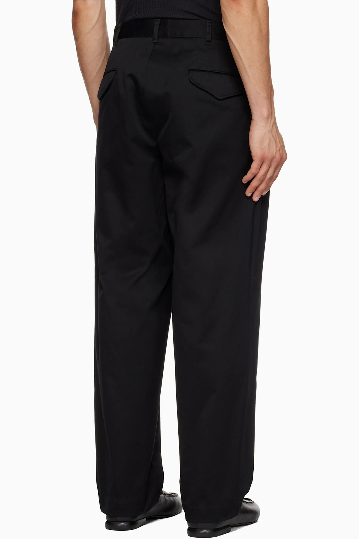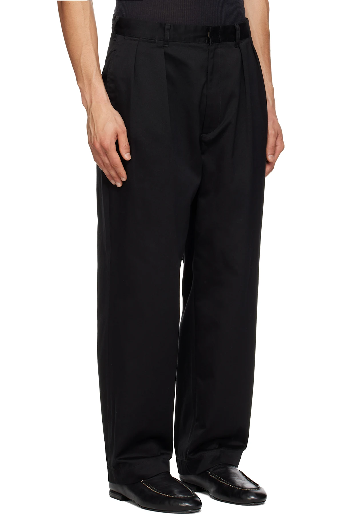 Black Double Pleated Chino Trousers