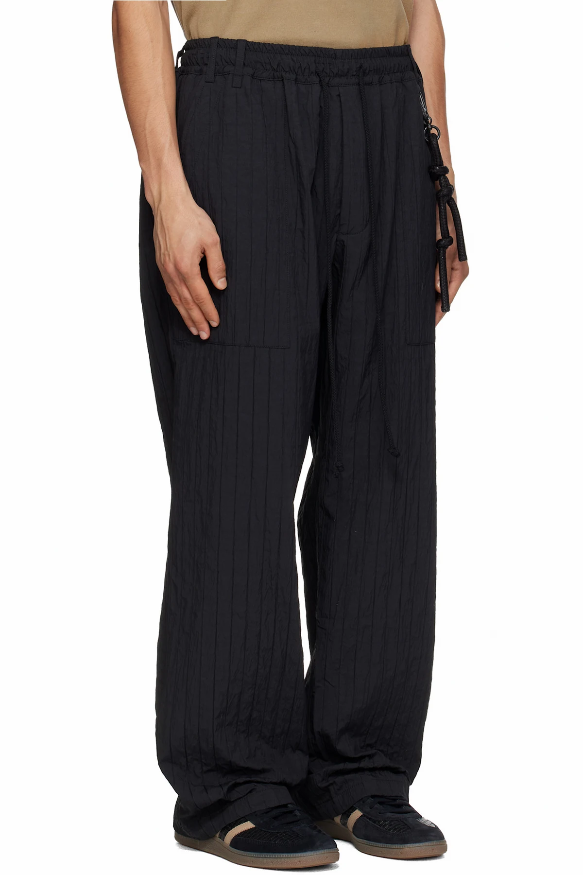 Quilted and crinkled taffeta track pants.