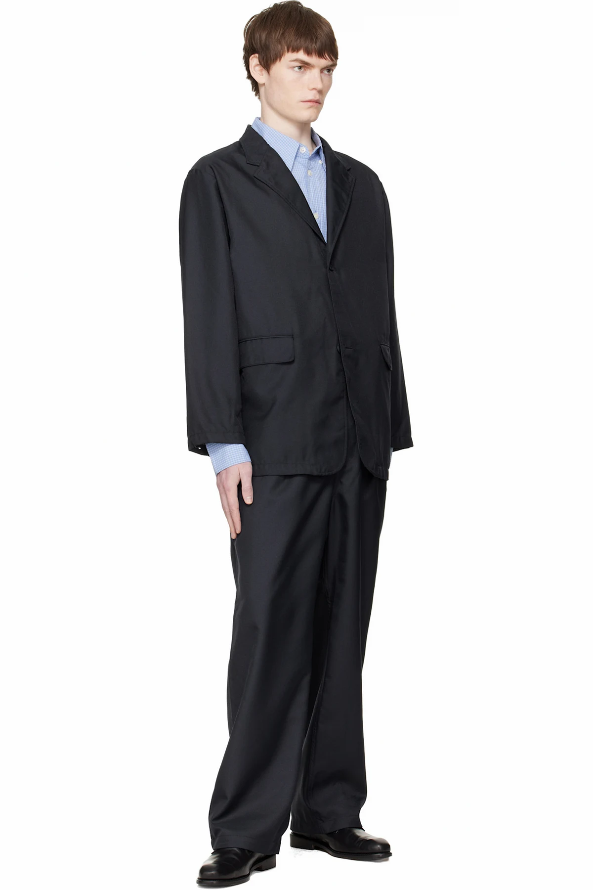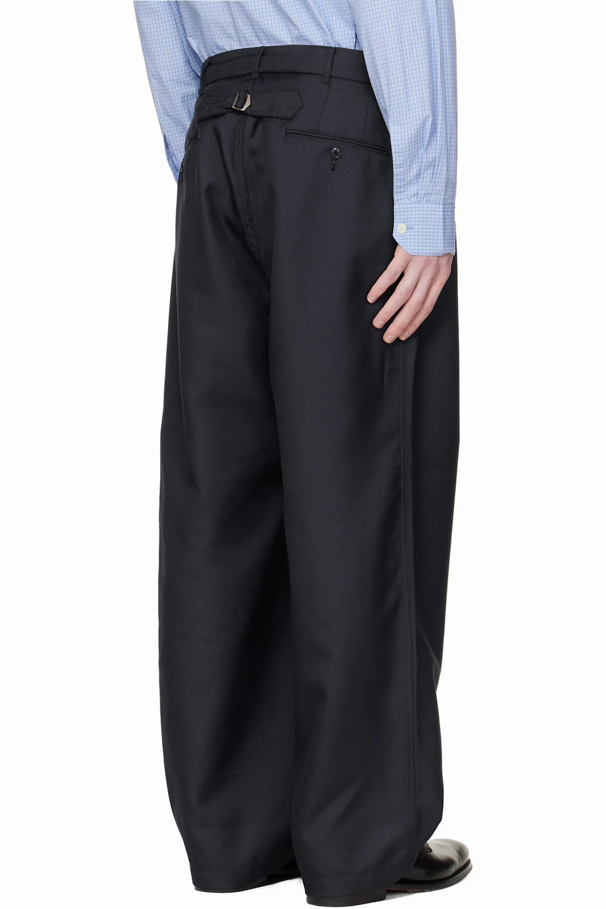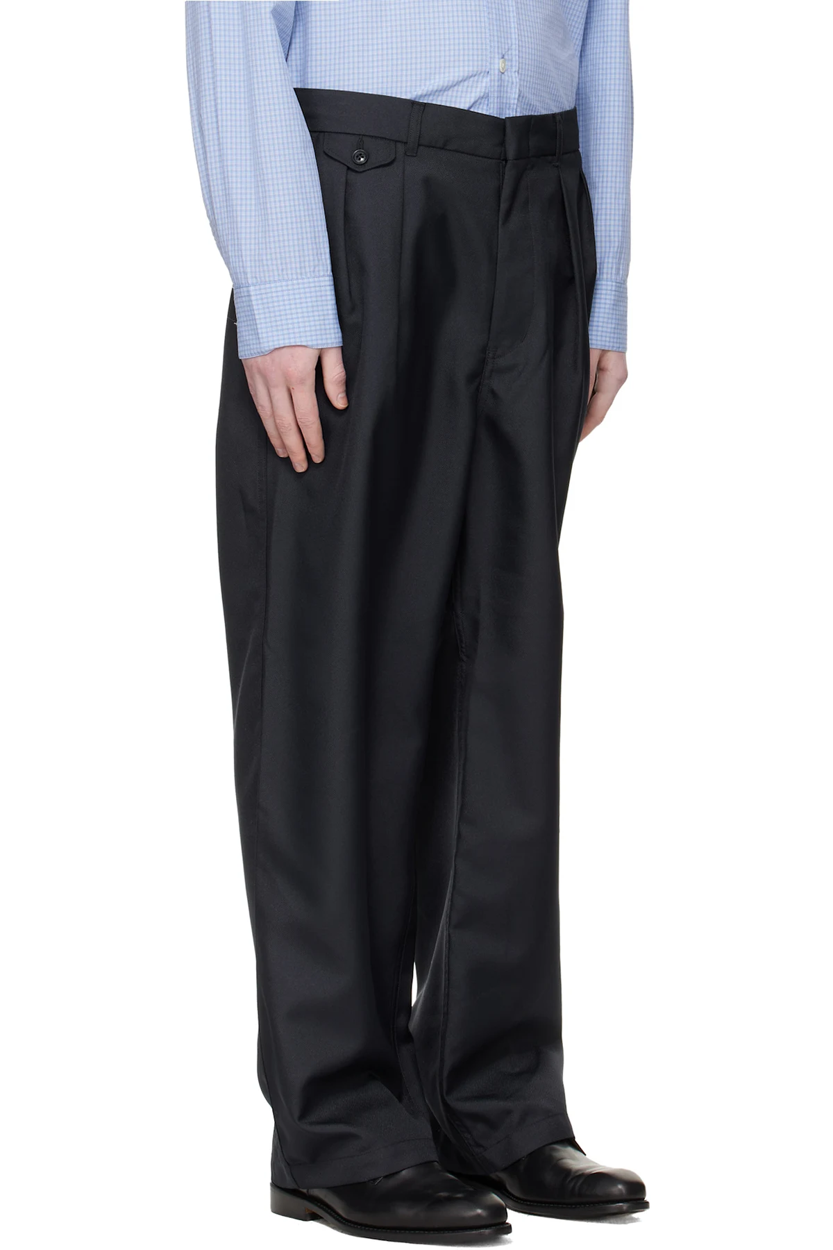 Garment-washed twill trousers.