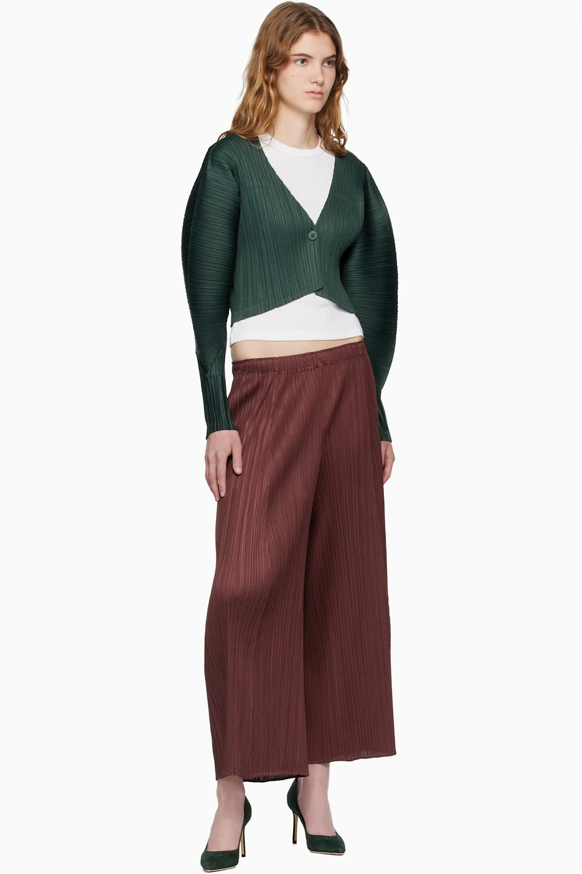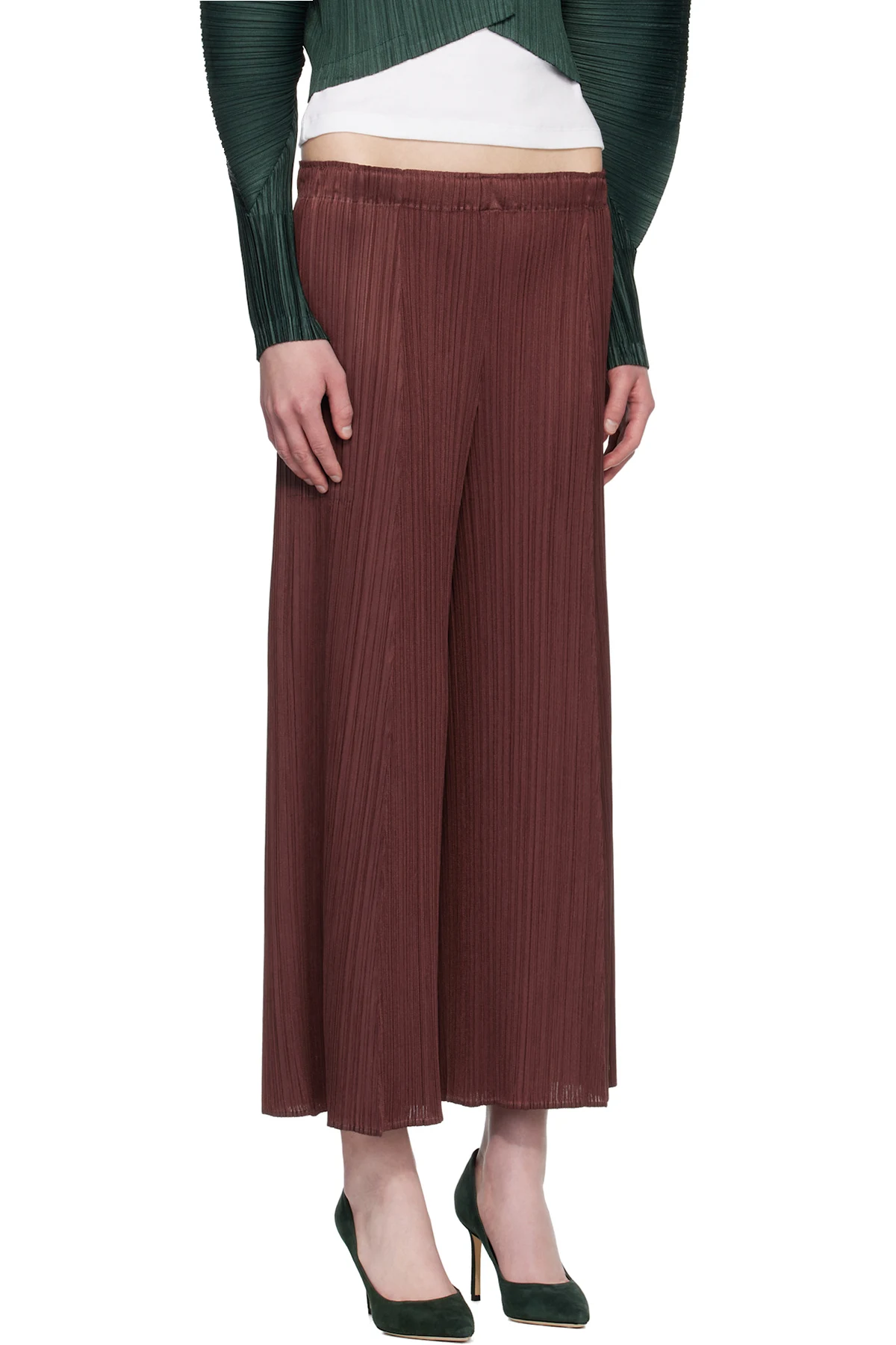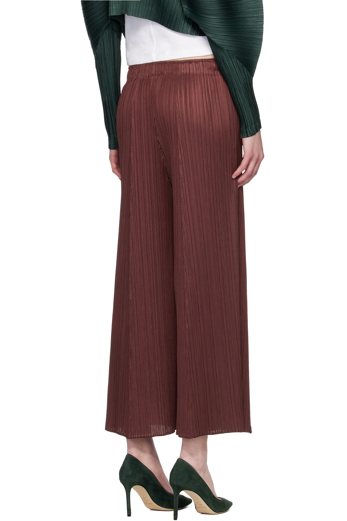 Garment-pleated tricot trousers.