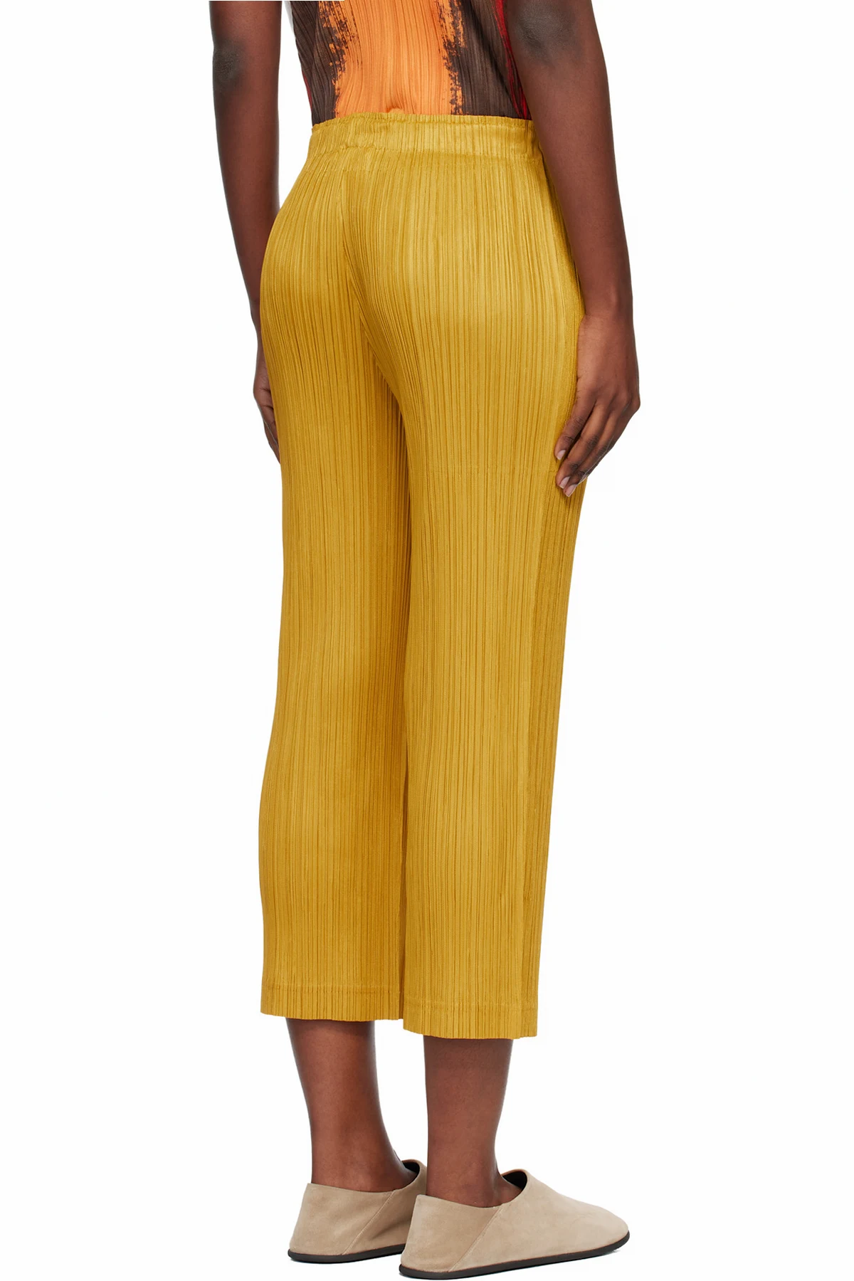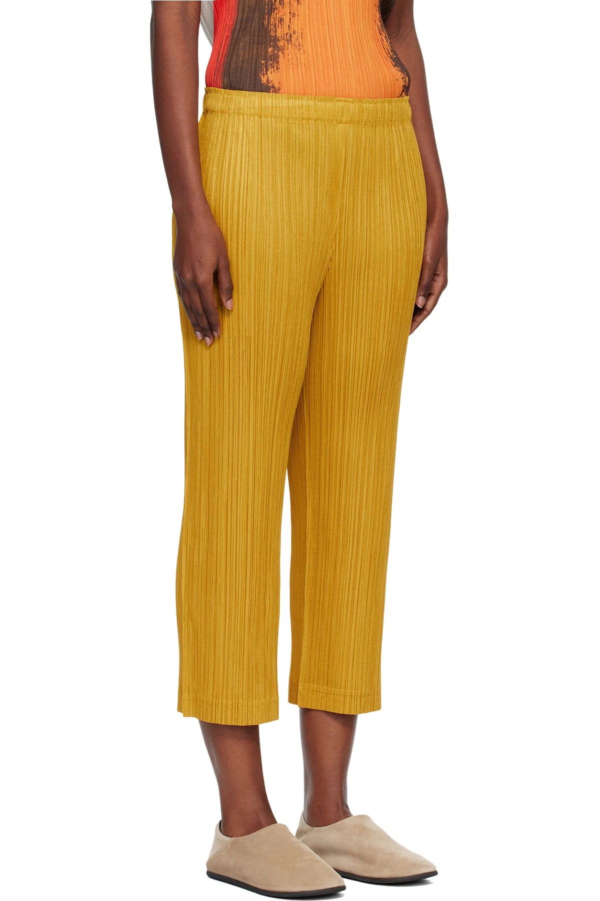 Garment-pleated tricot trousers.