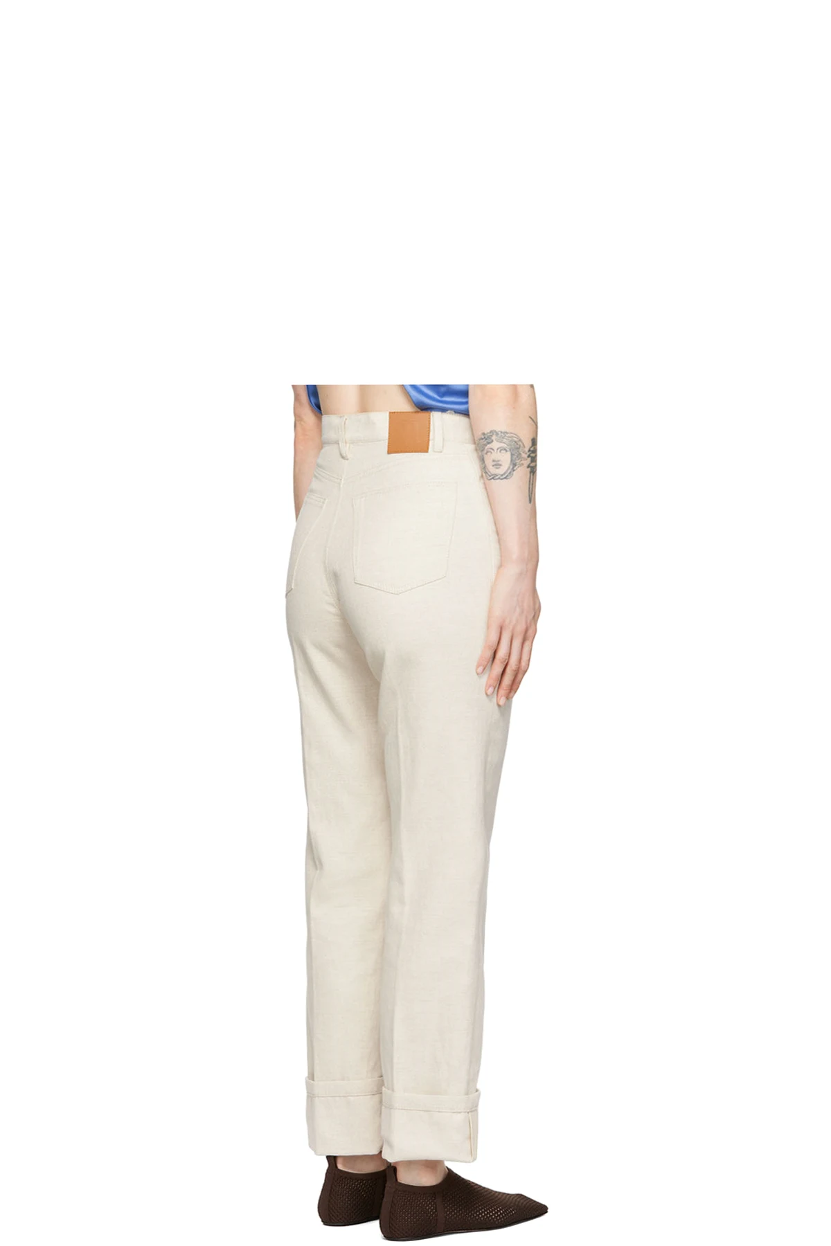 · Leather logo patch at back waistband