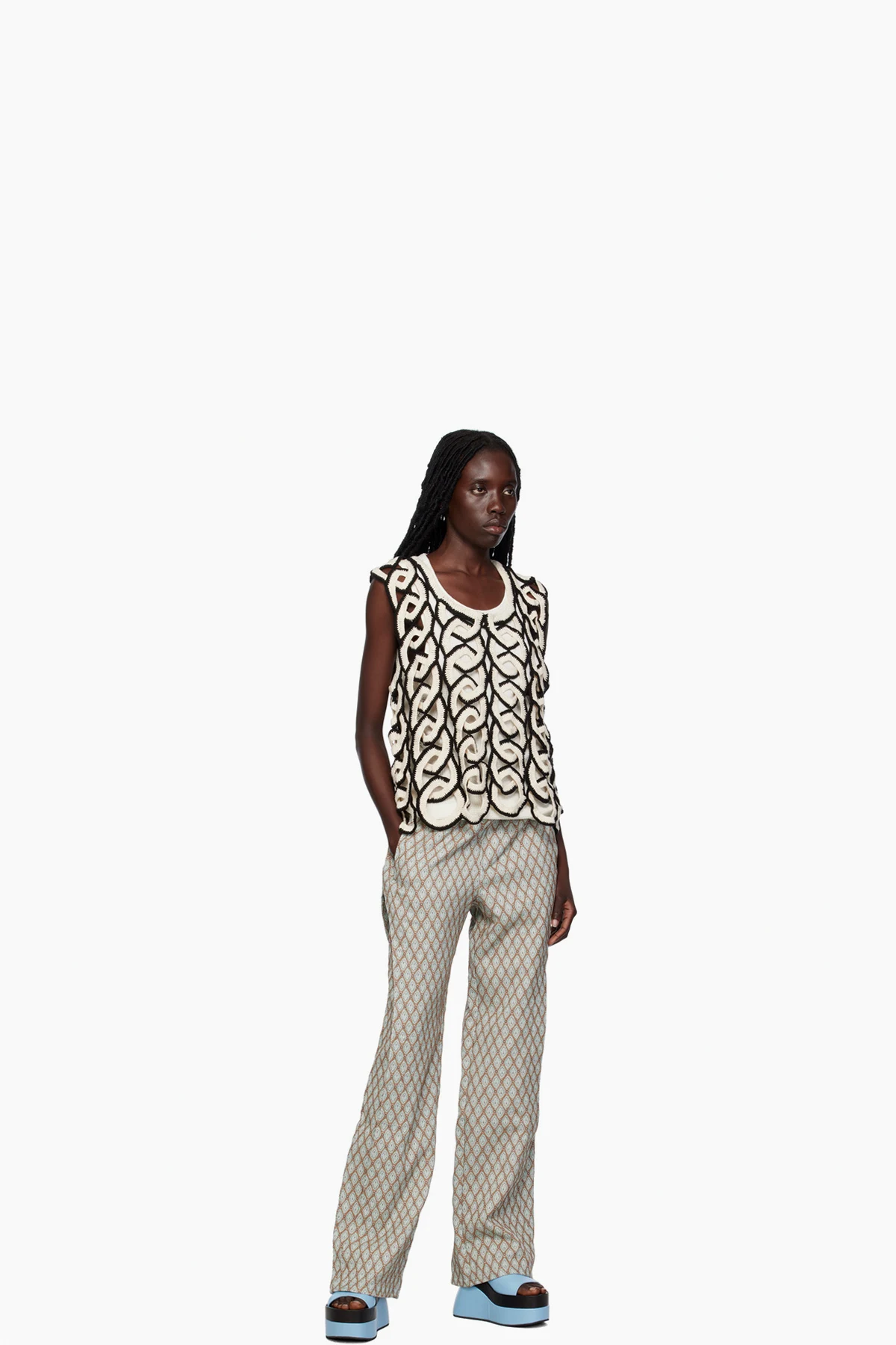 Polyester- and rayon-blend gobelin trousers. Jacquard graphic pattern throughout.