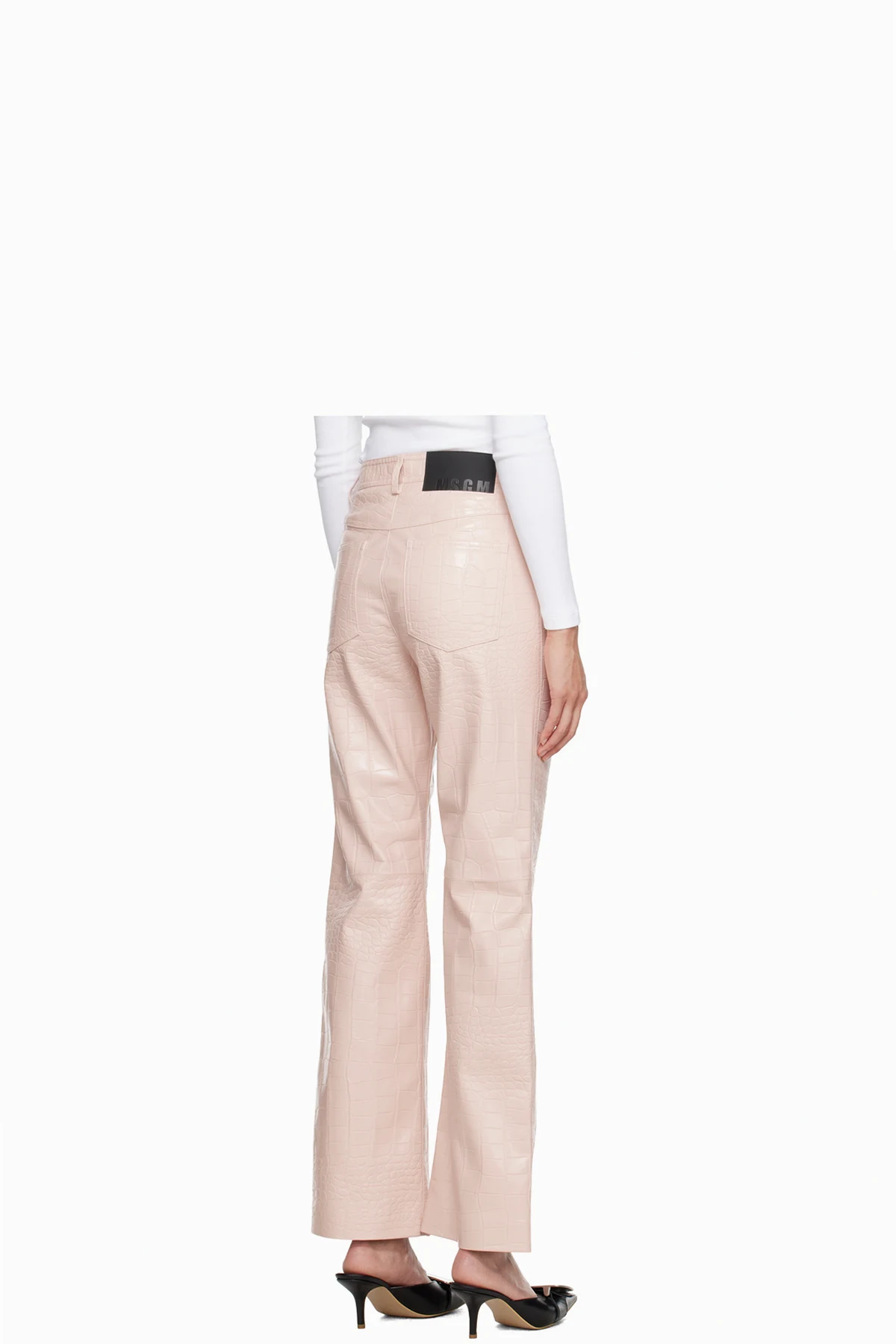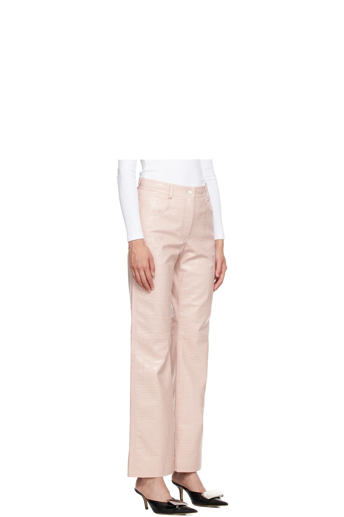 Straight-leg croc-embossed faux-leather trousers.