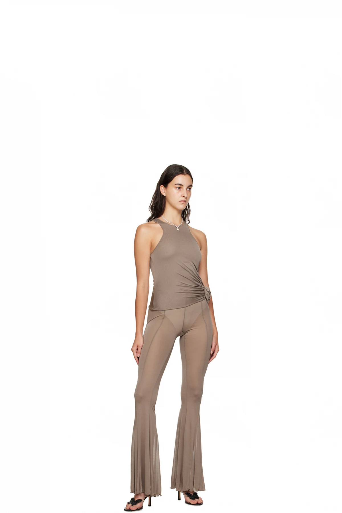 Sheer viscose georgette trousers. Zip closure at outseam.