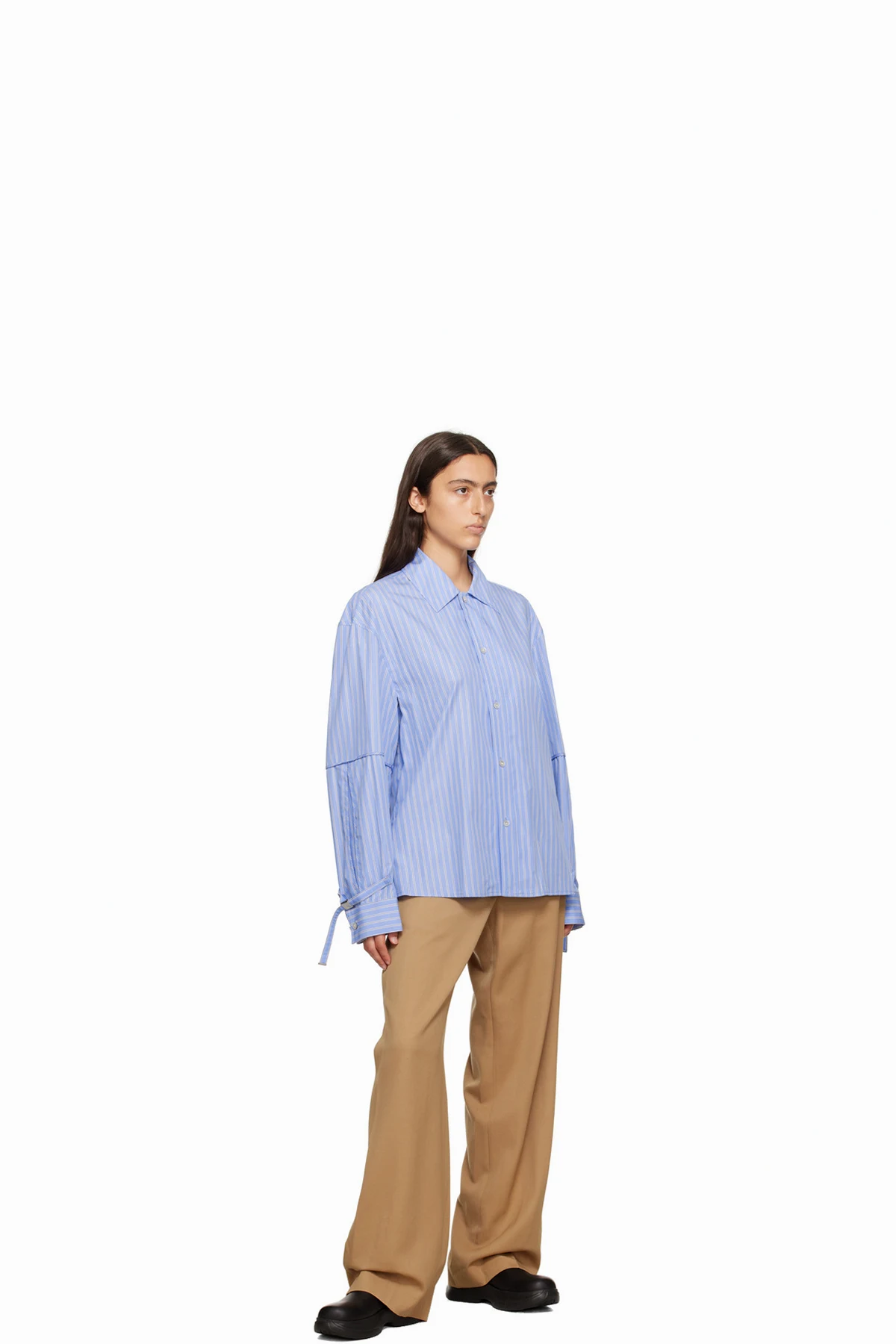 Paneled straight-leg plain-woven wool trousers.