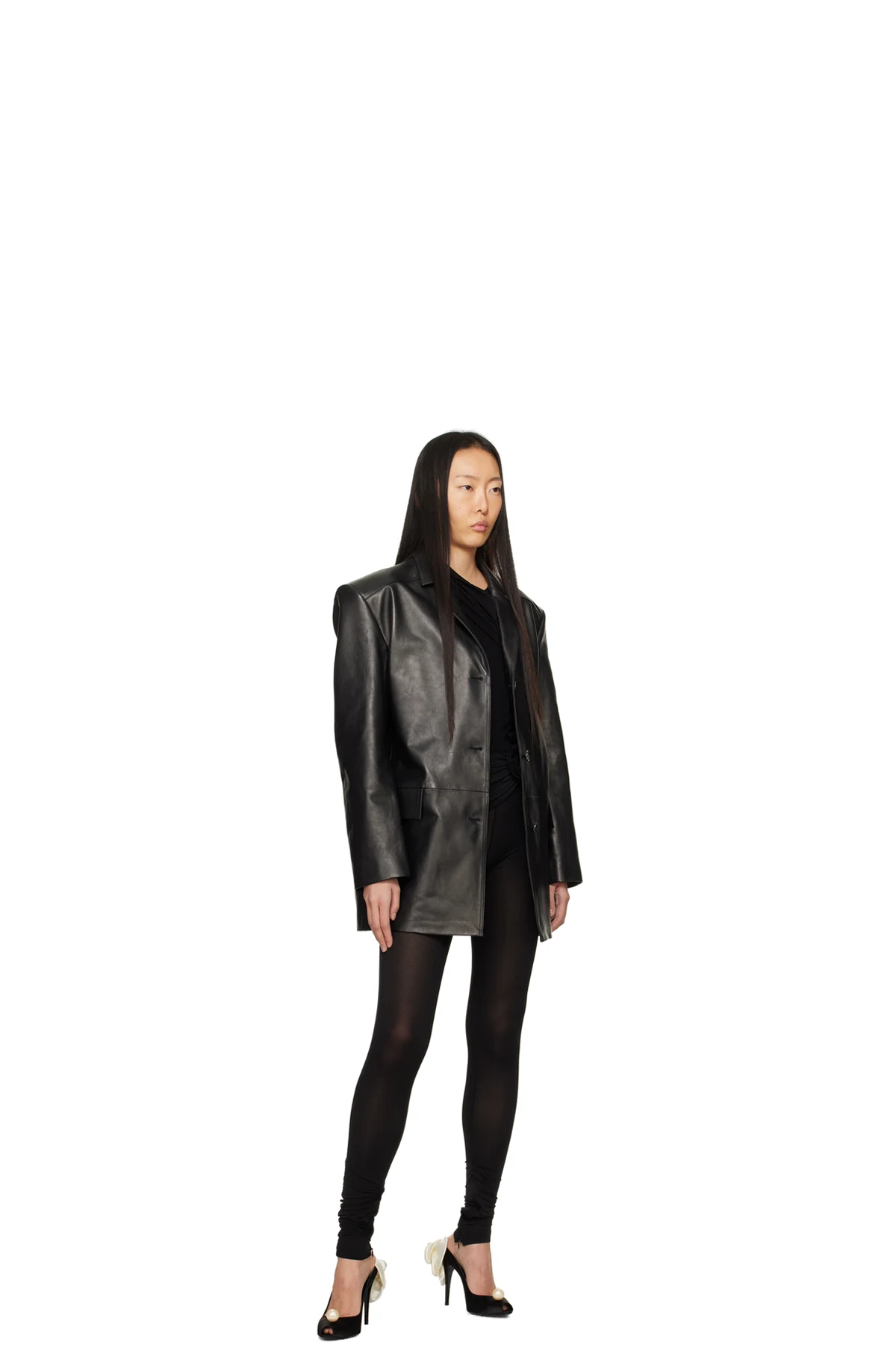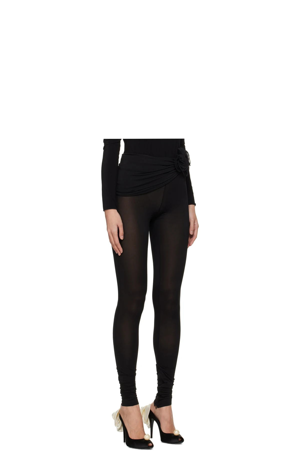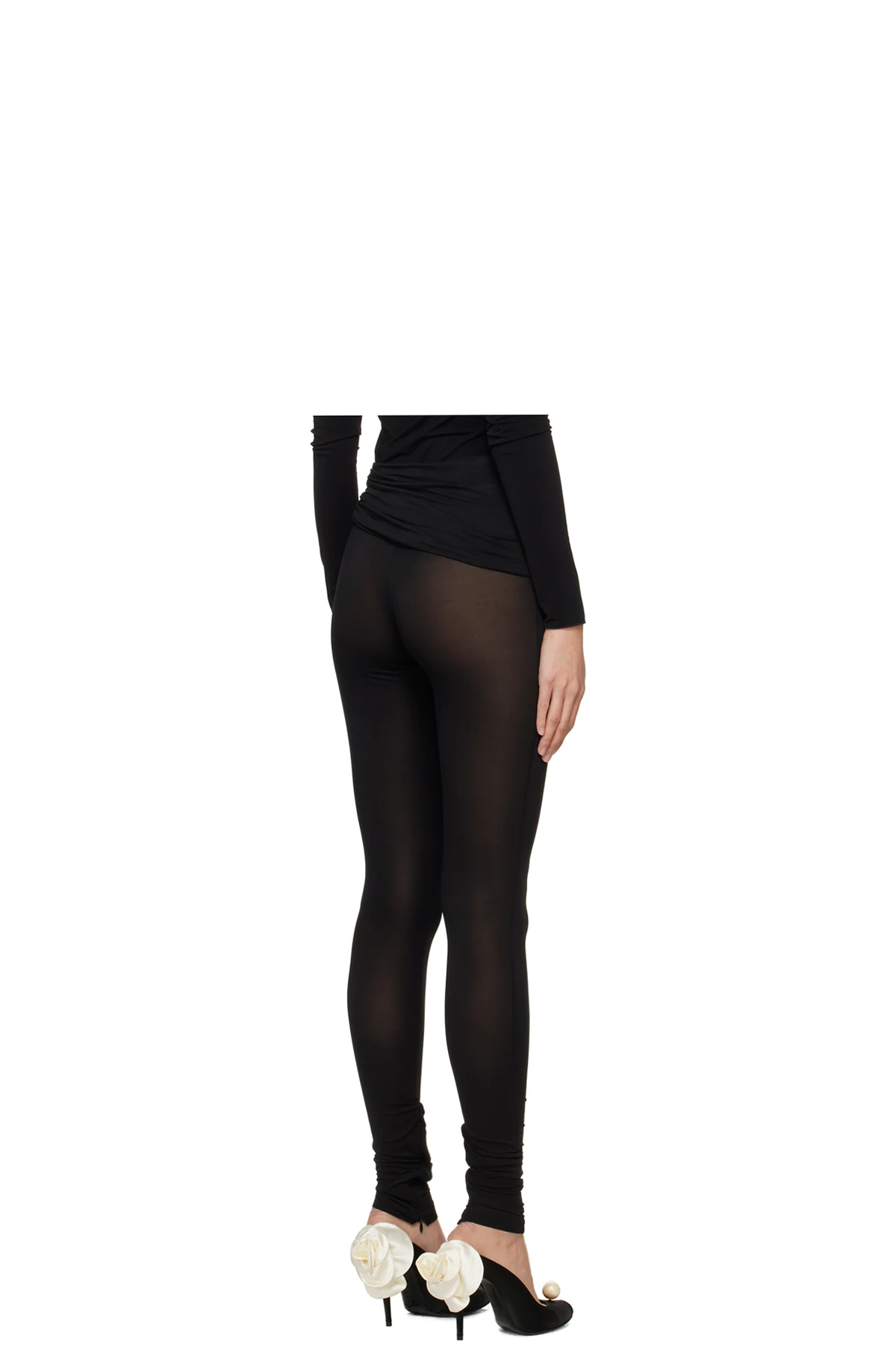 Semi-sheer stretch nylon jersey leggings.