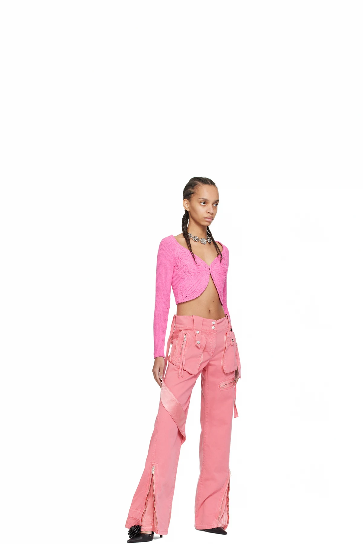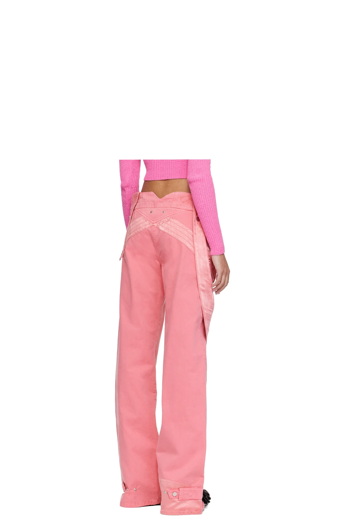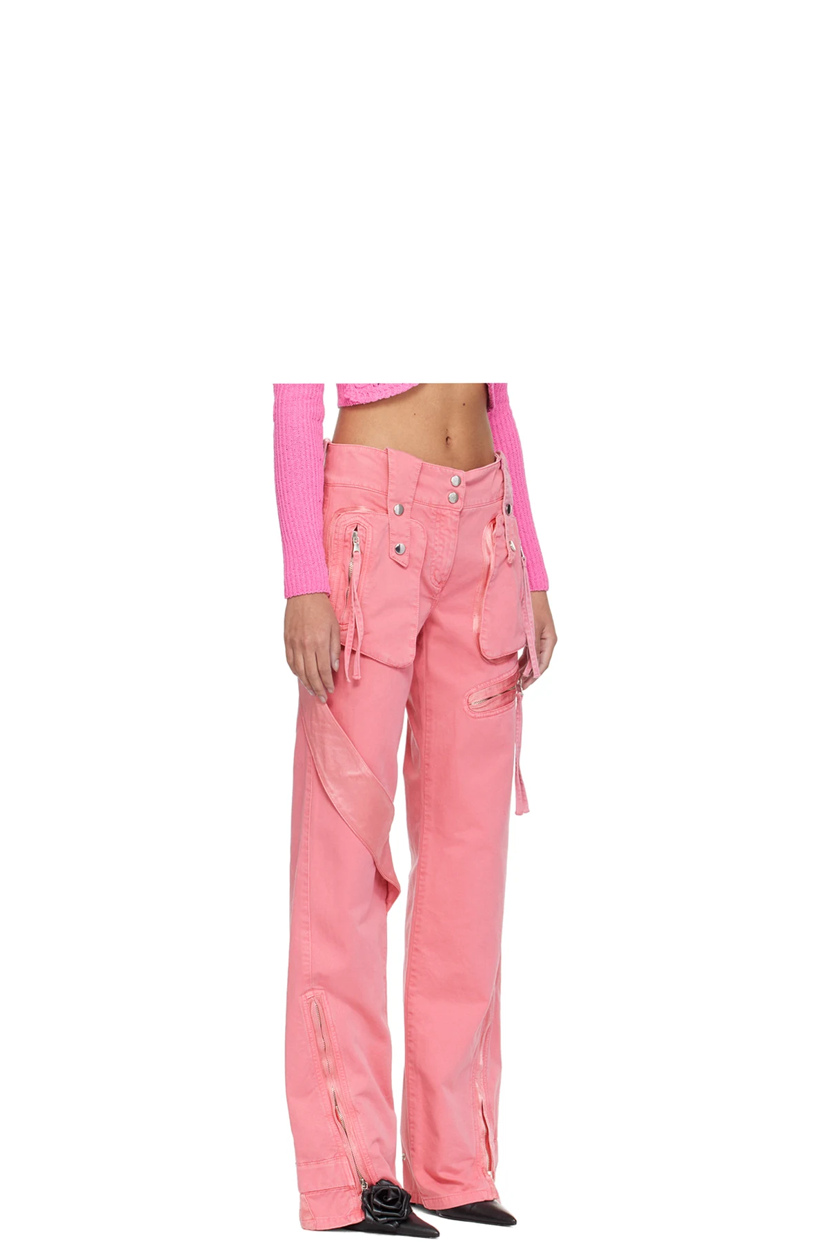 Handcrafted garment-dyed non-stretch denim cargo pants. Satin trim throughout.