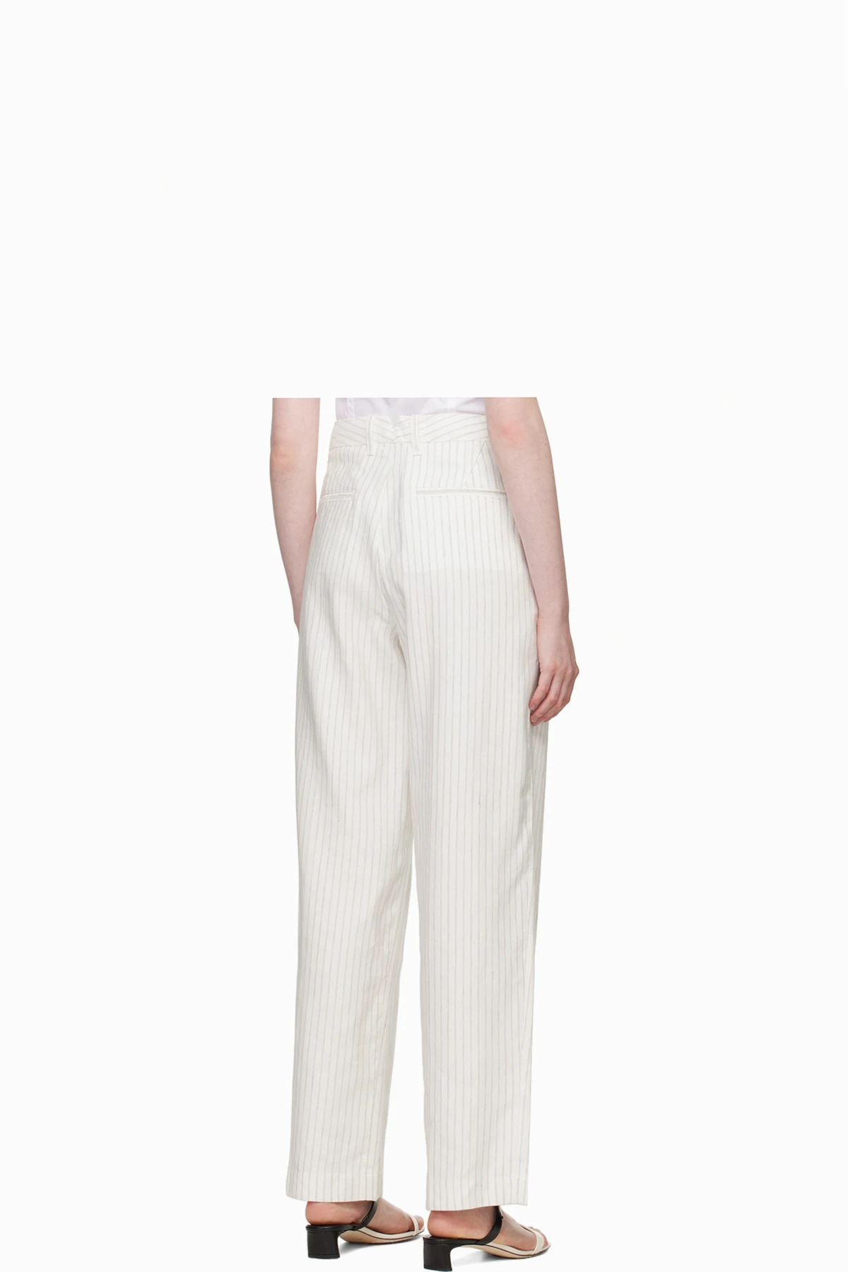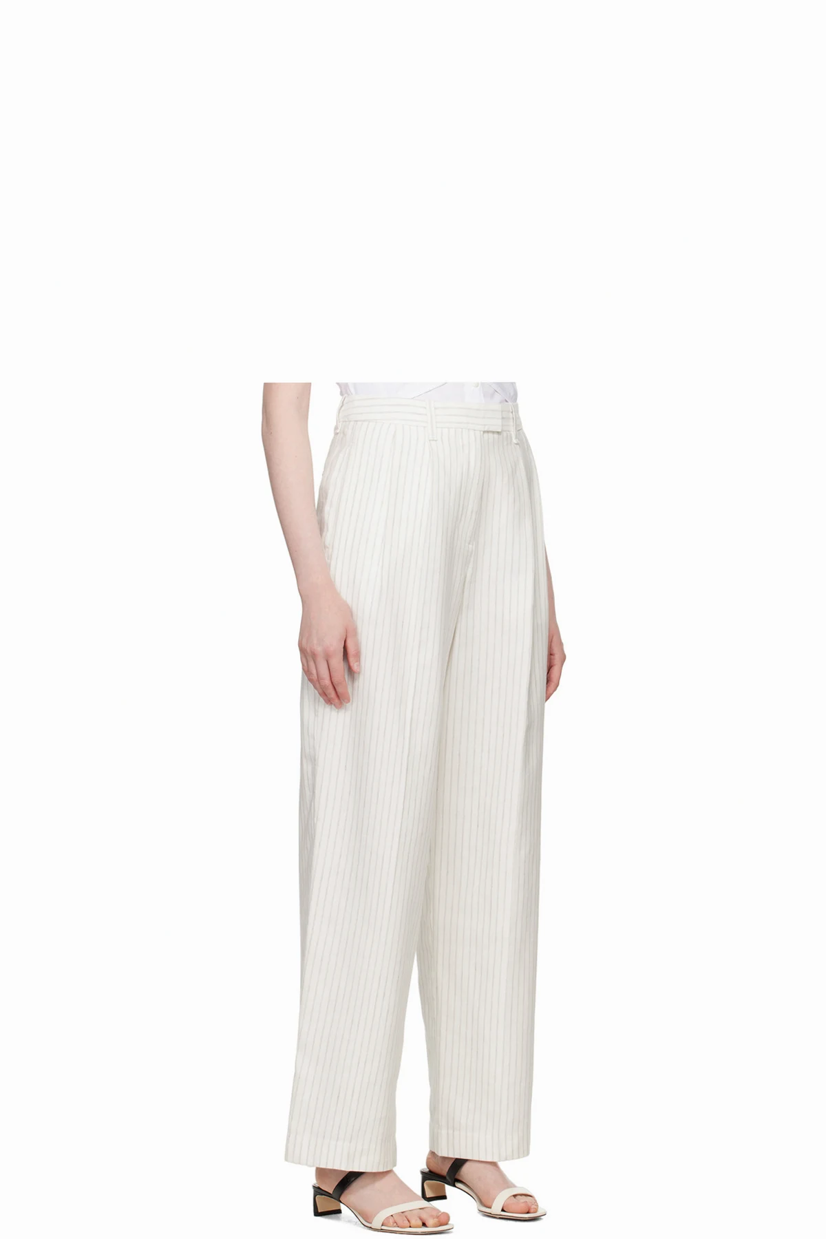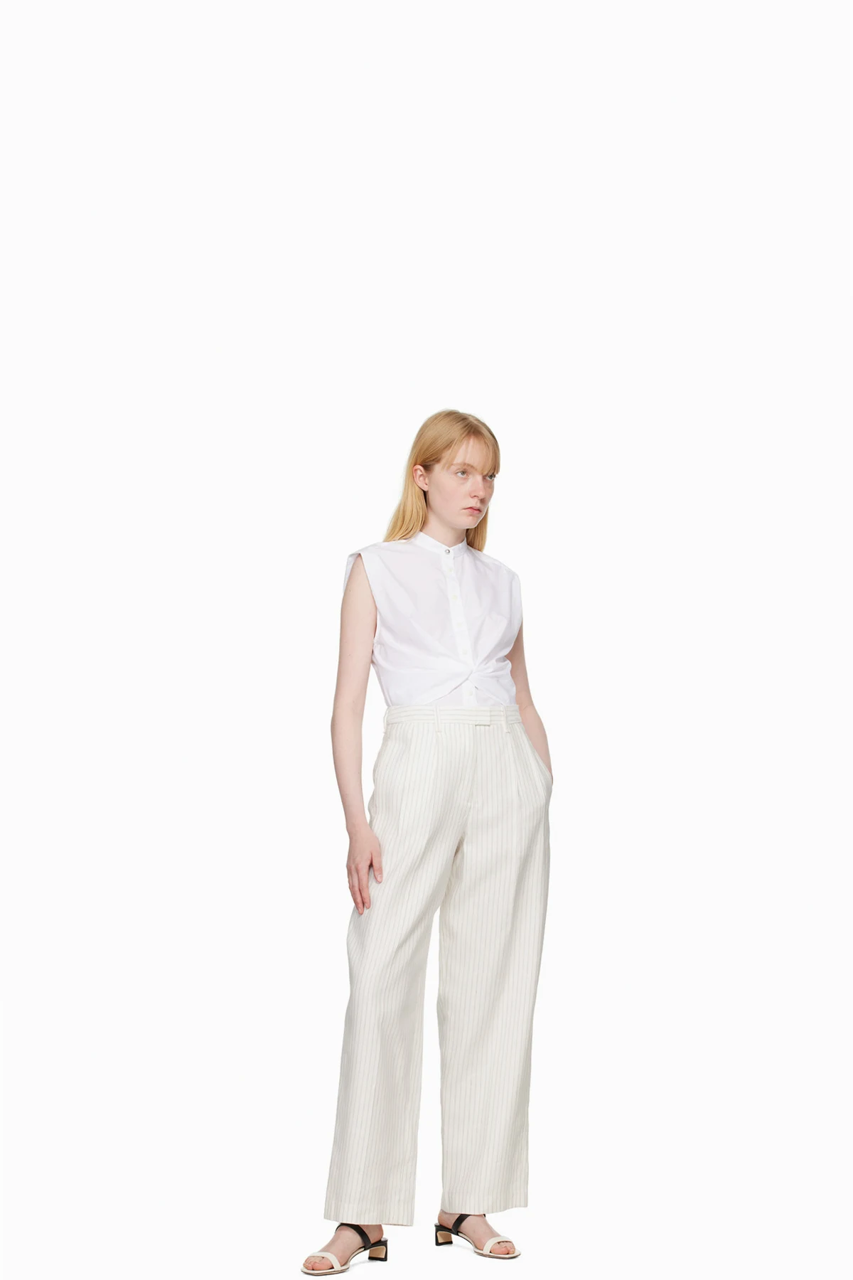 Wide-leg cotton- and linen-blend cavalry twill trousers. Pinstripes throughout.