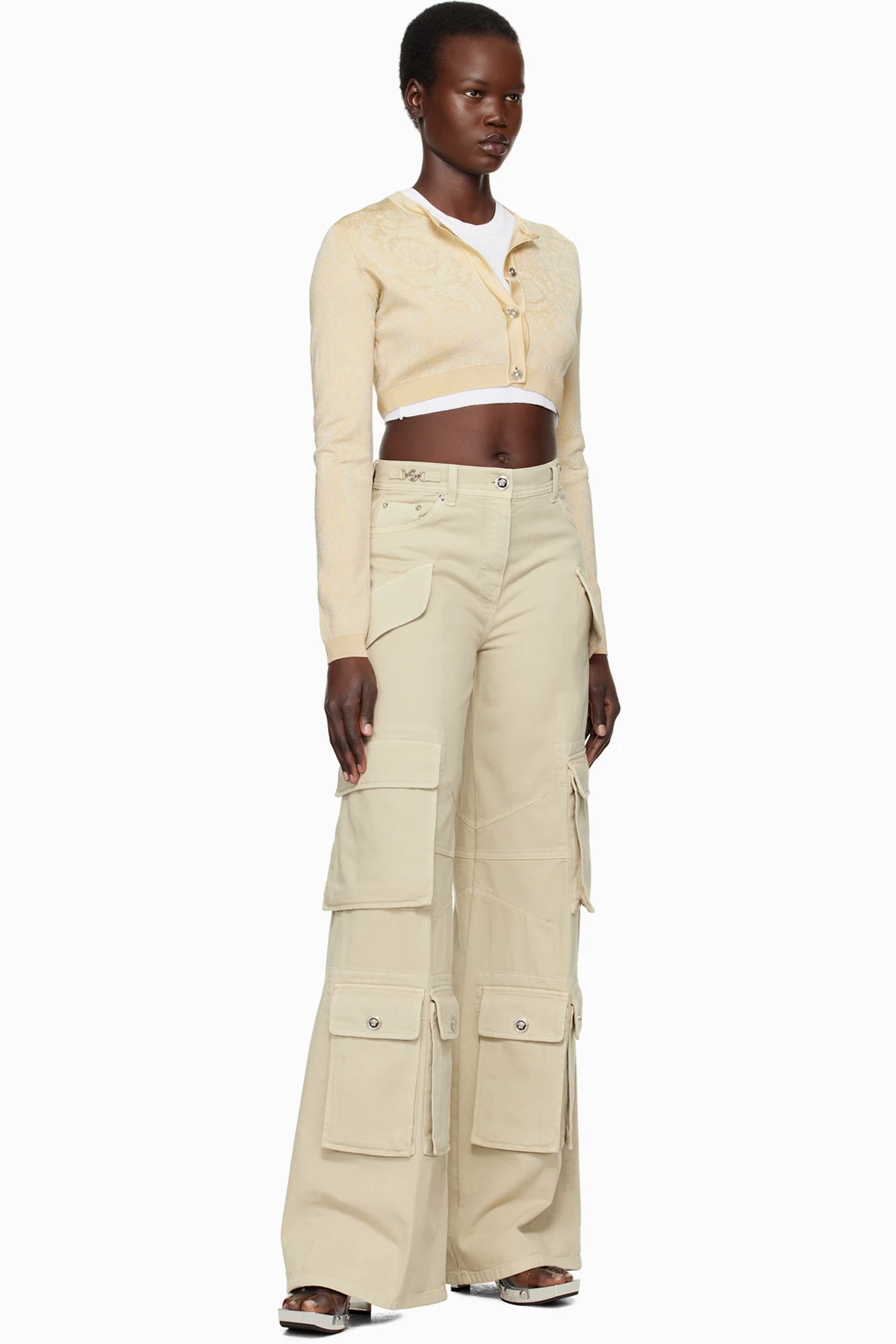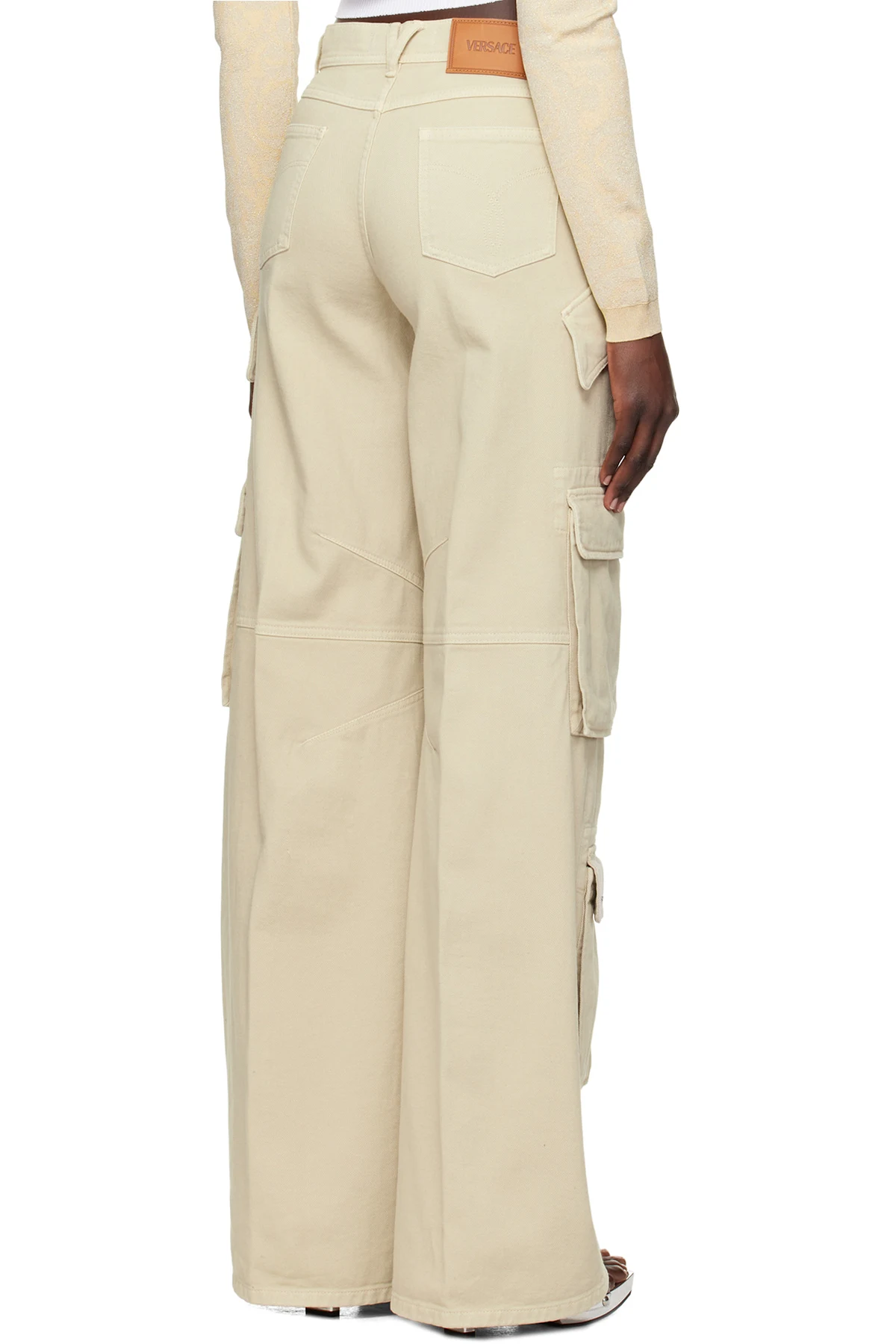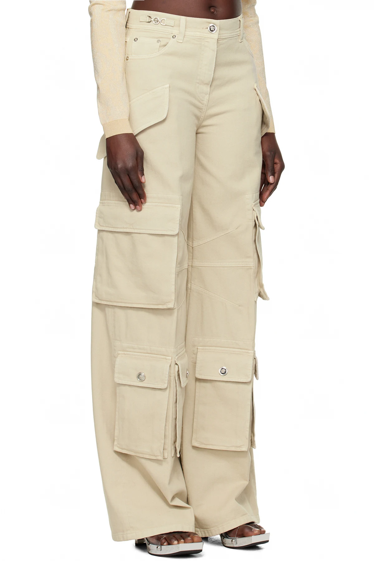 Wide-leg stonewashed non-stretch denim cargo pants.