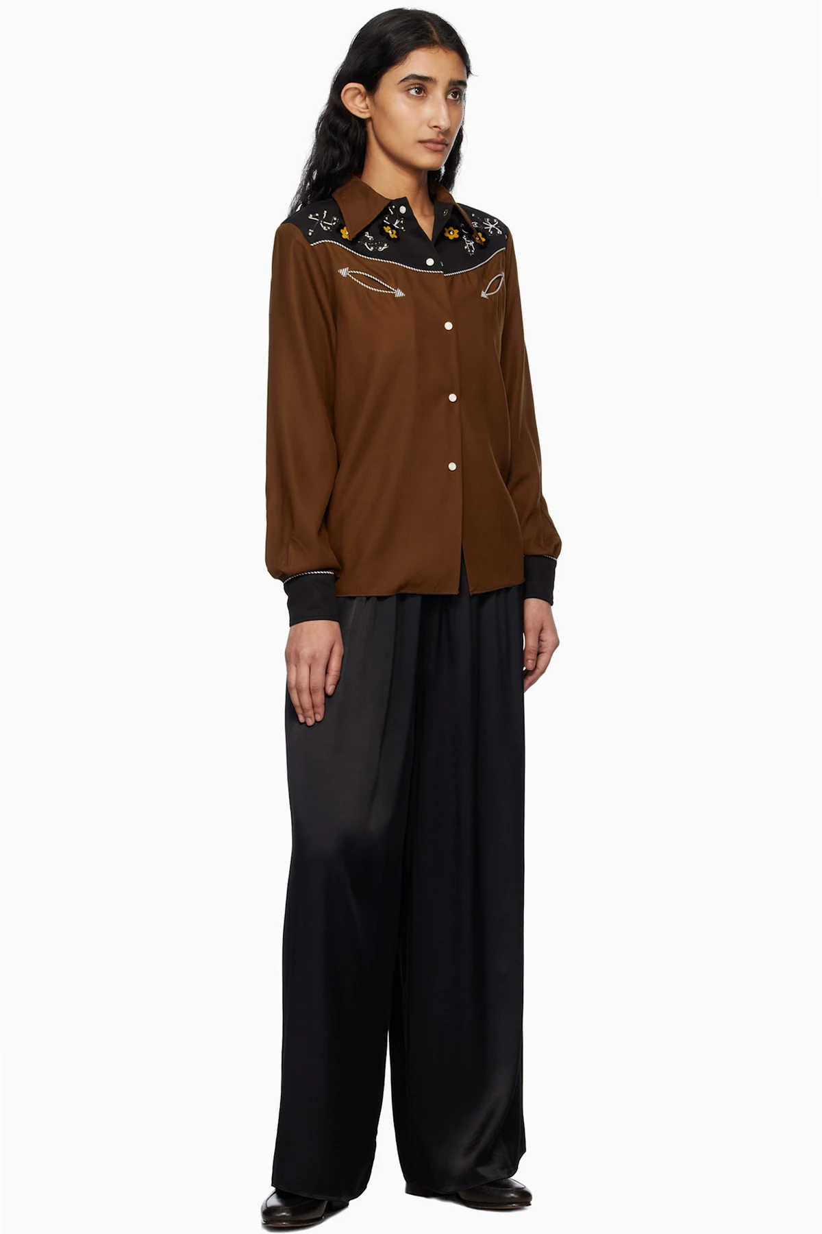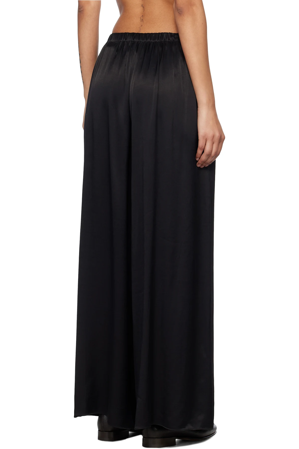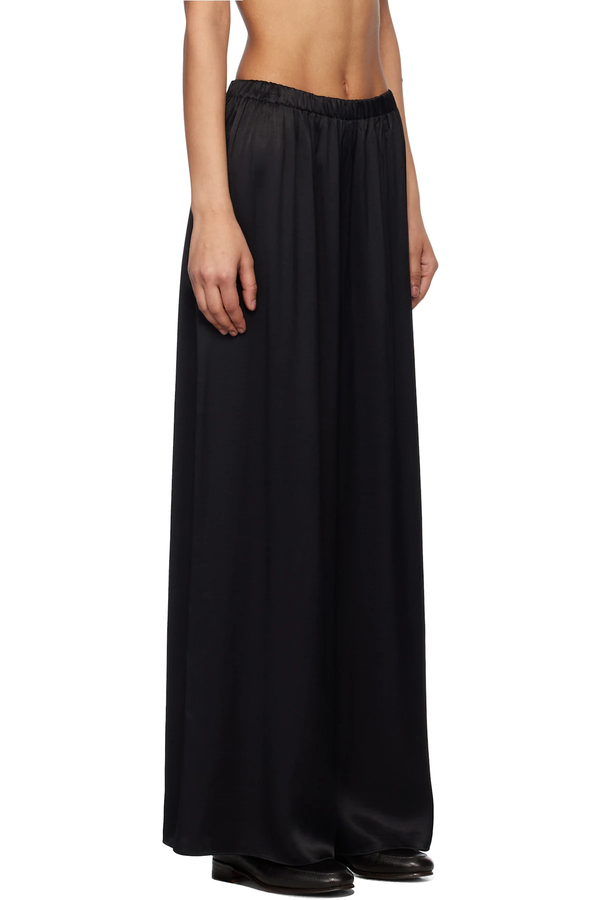 Loose-fit viscose satin trousers. Elasticized waistband.