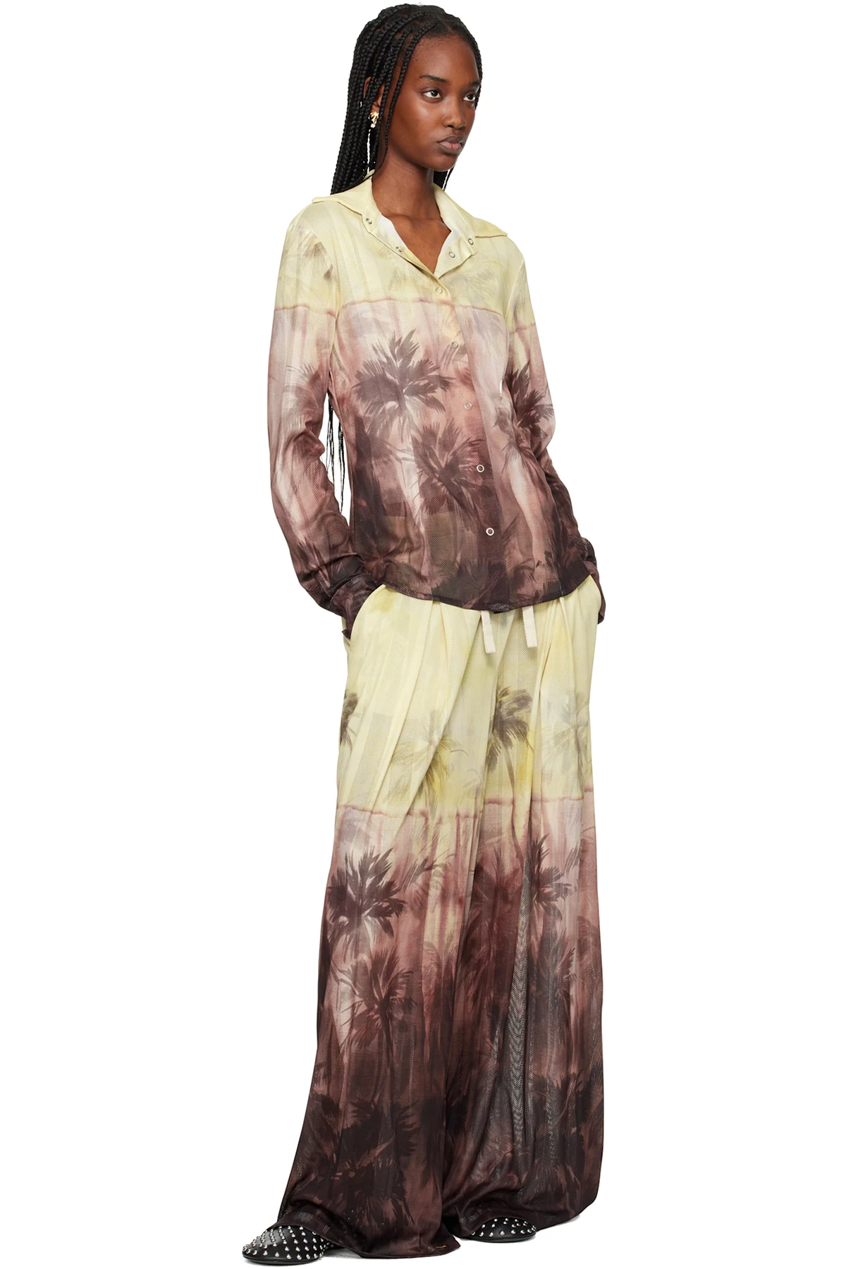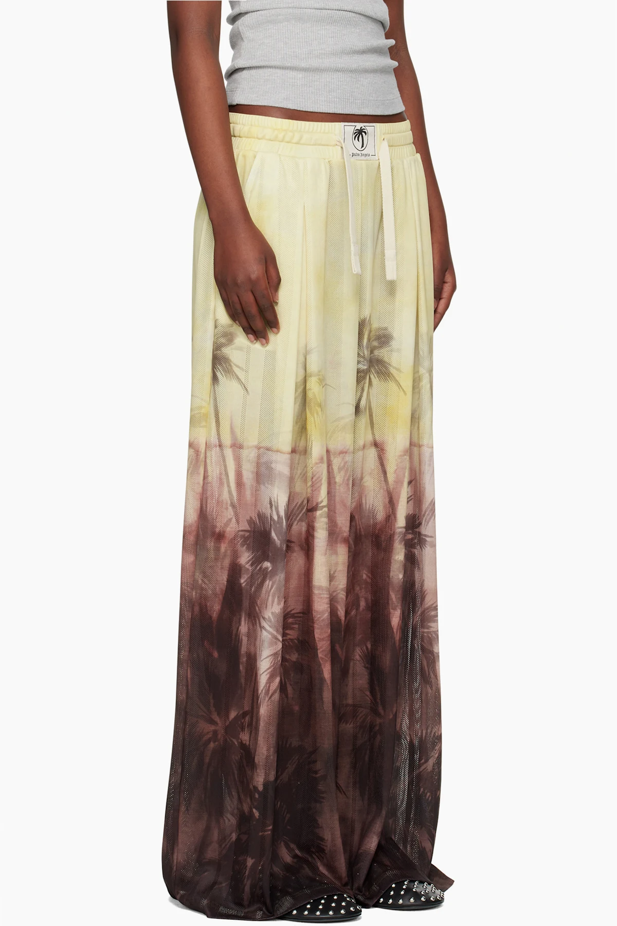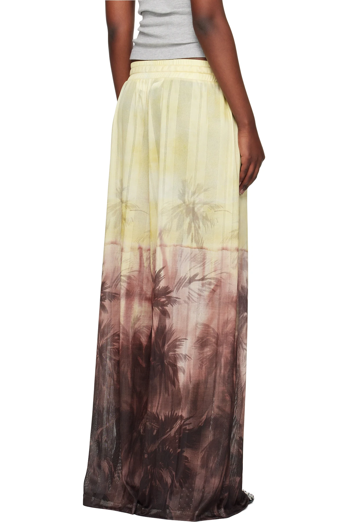 Semi-sheer polyester mesh trousers. Graphic pattern printed throughout.