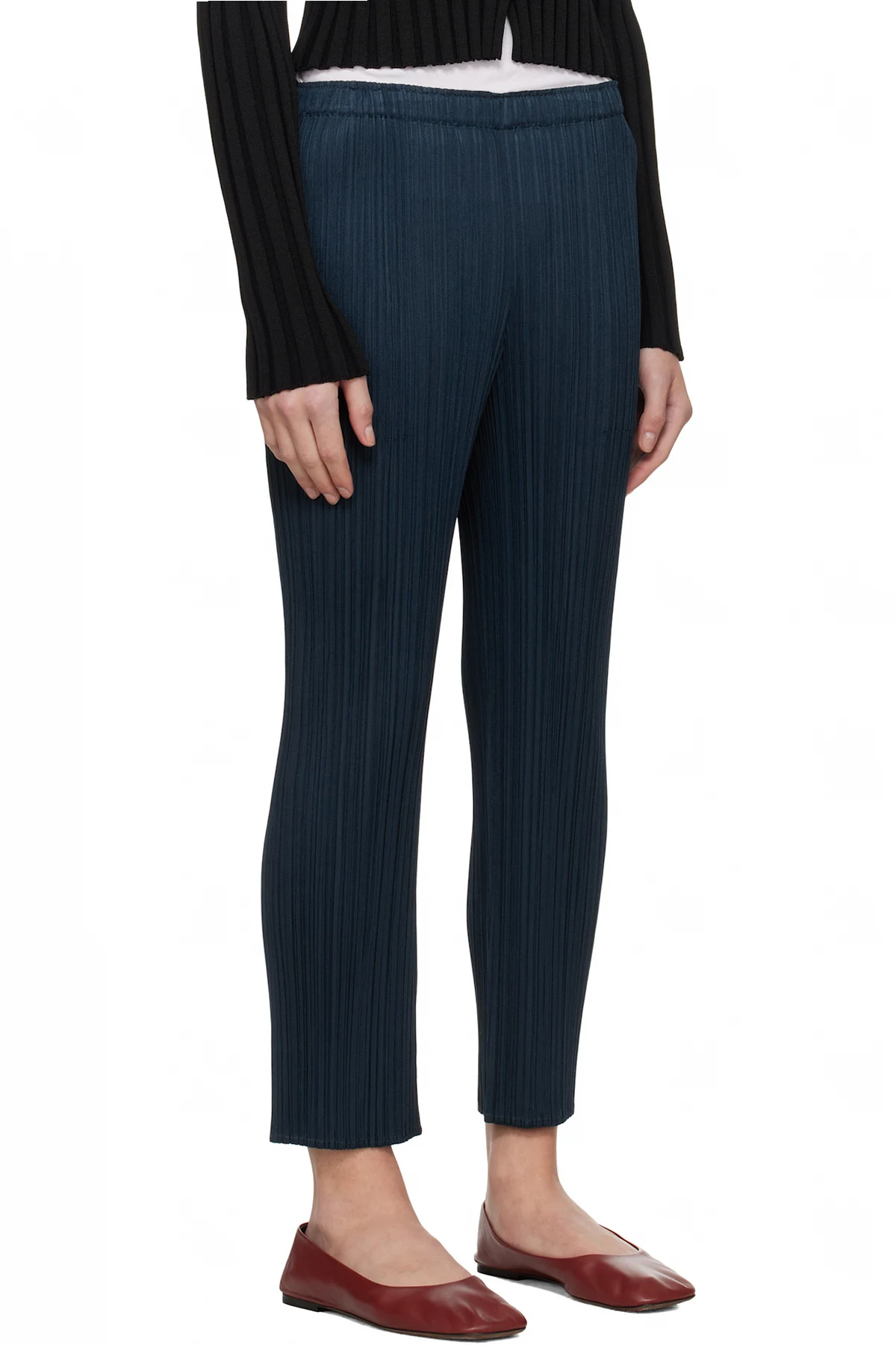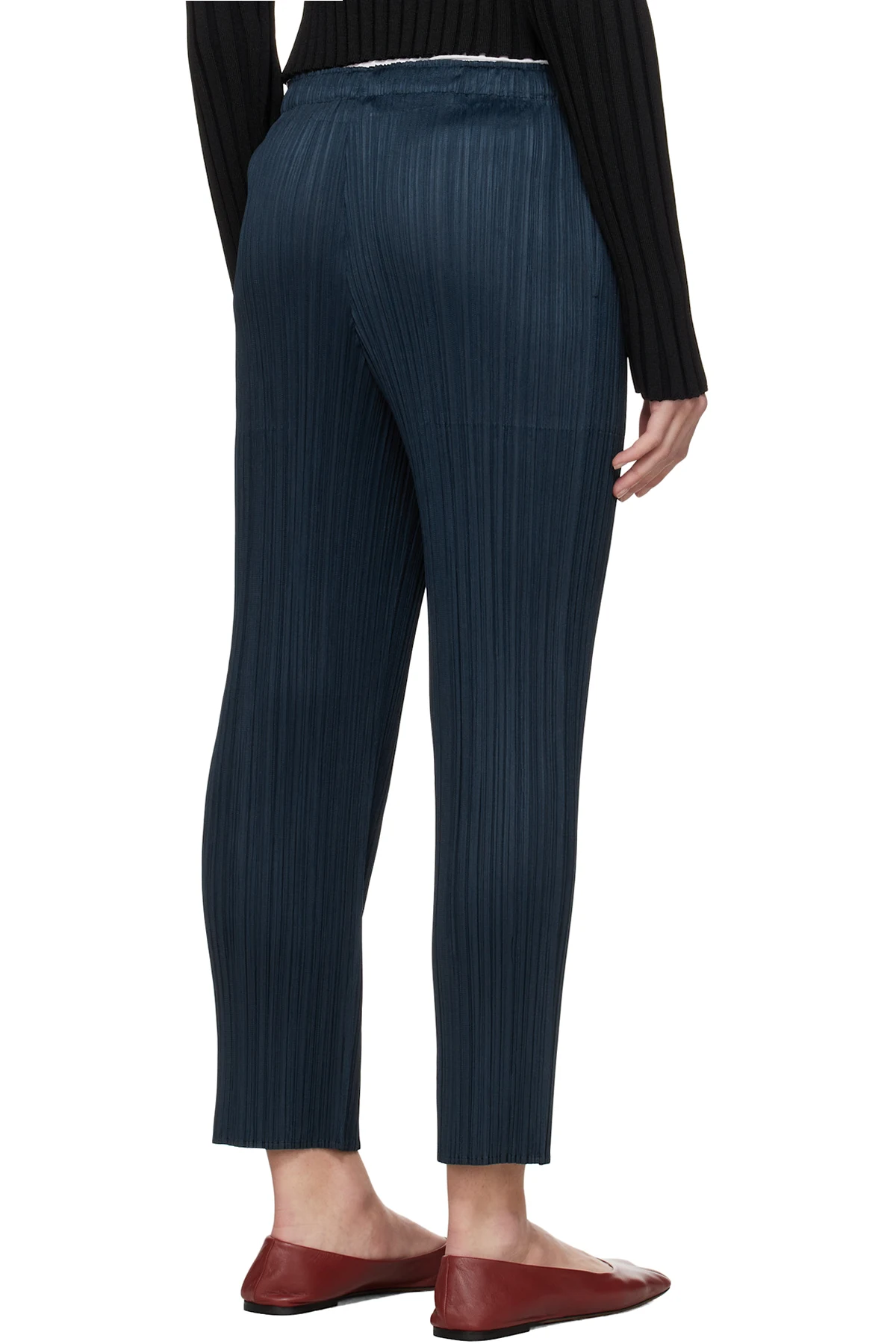 Slim-fit garment-pleated polyester tricot trousers.