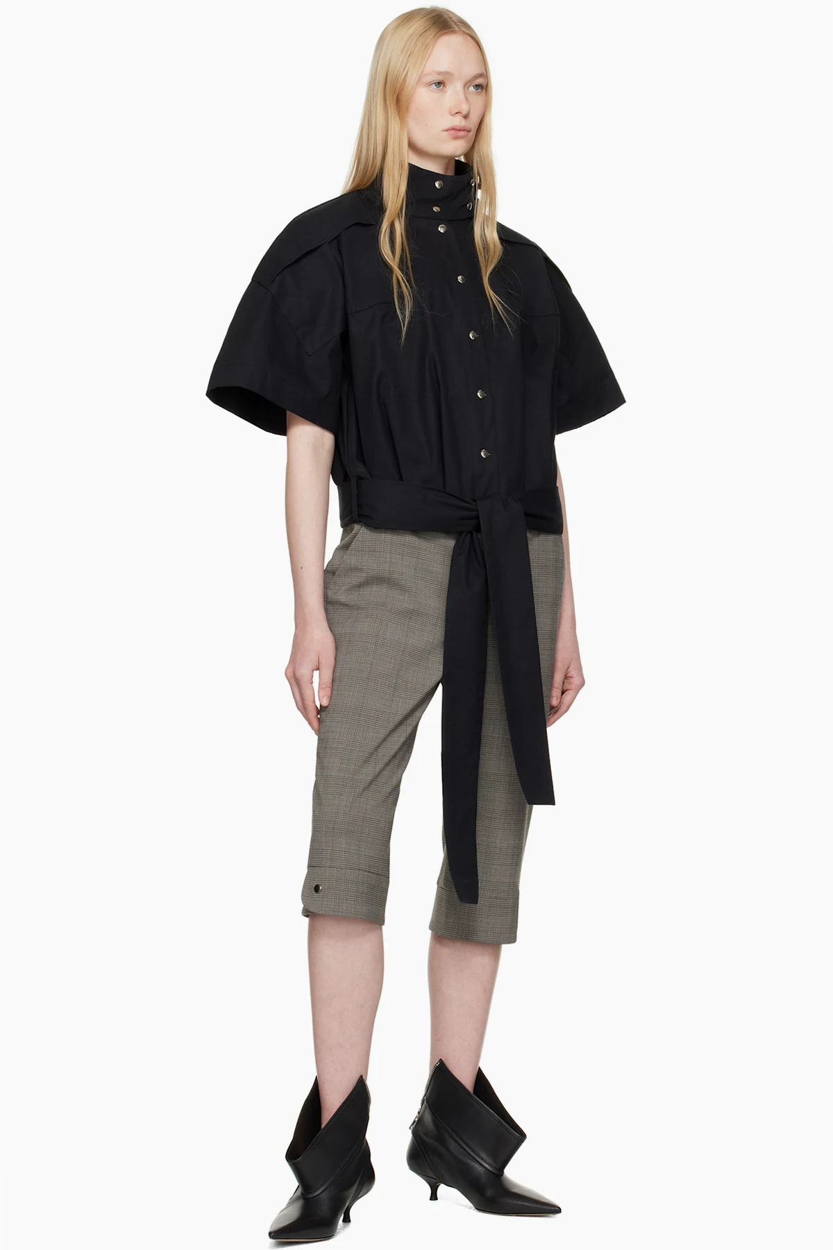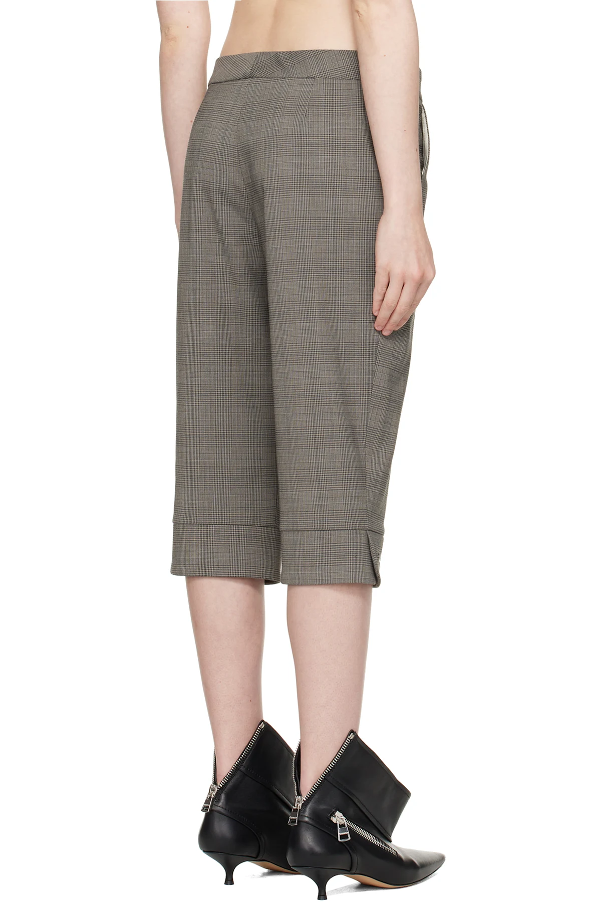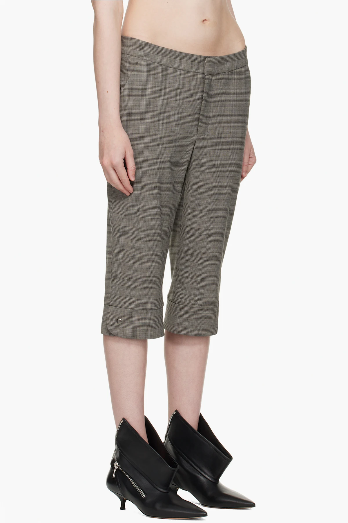 Stretch polyester- and wool-blend delaine trousers. Glen check pattern throughout.