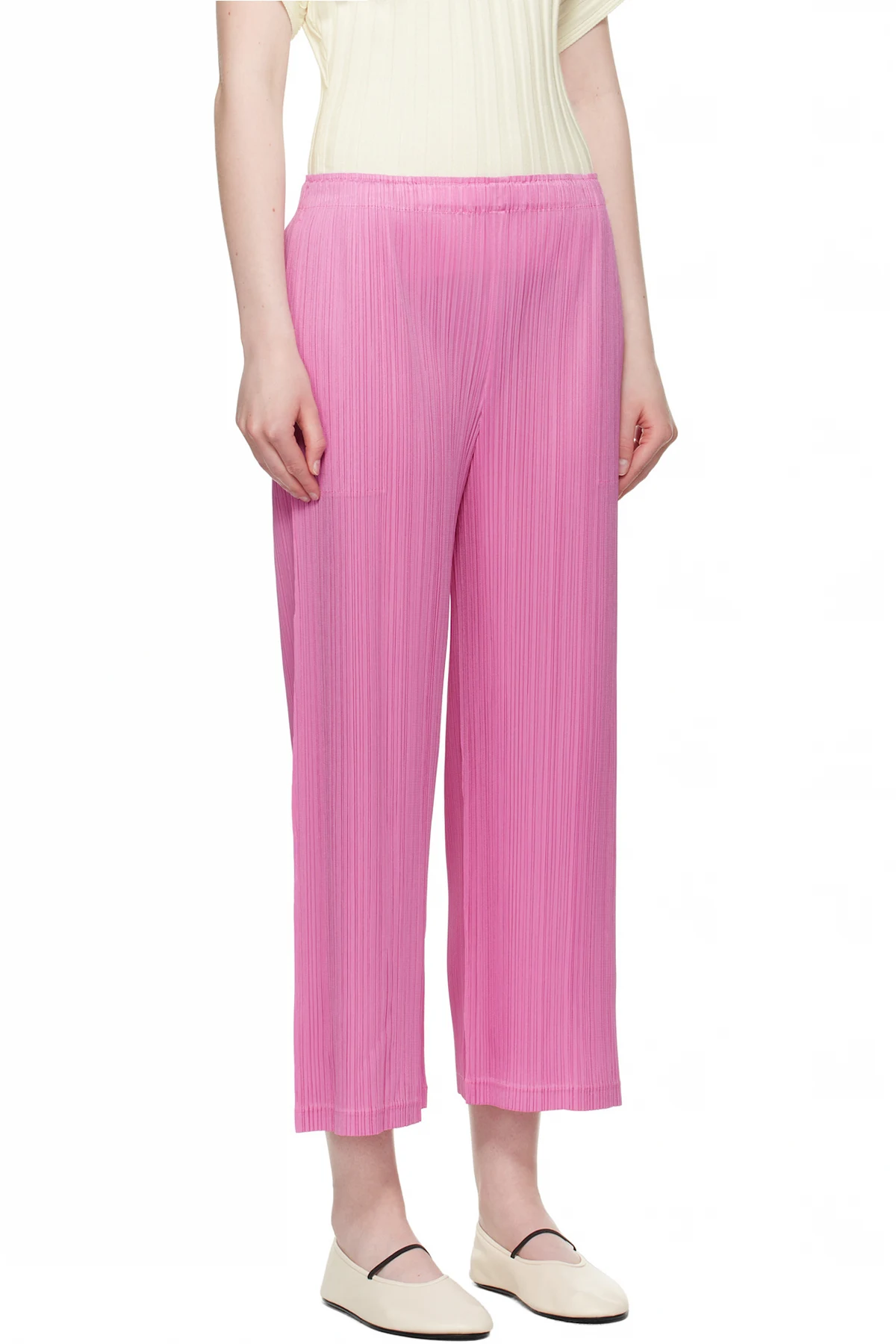 Straight-leg garment-pleated polyester tricot trousers.