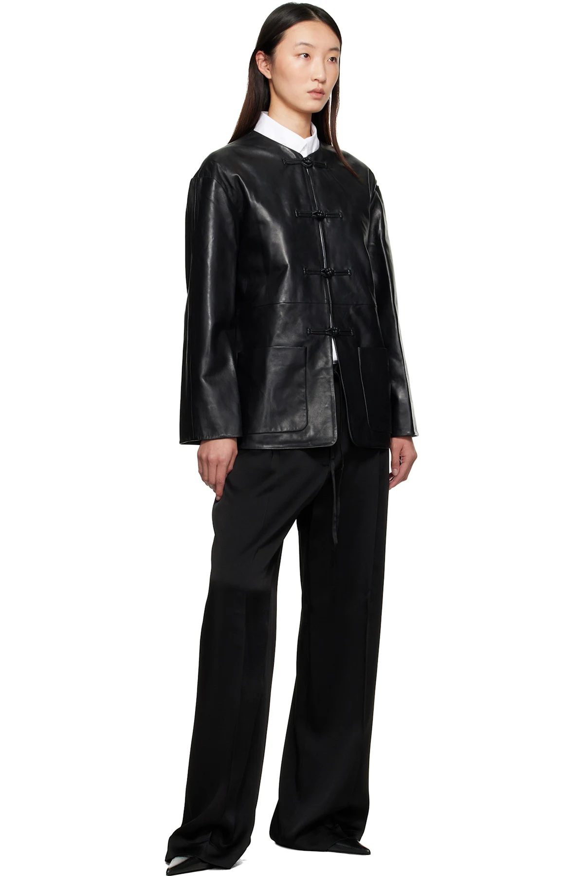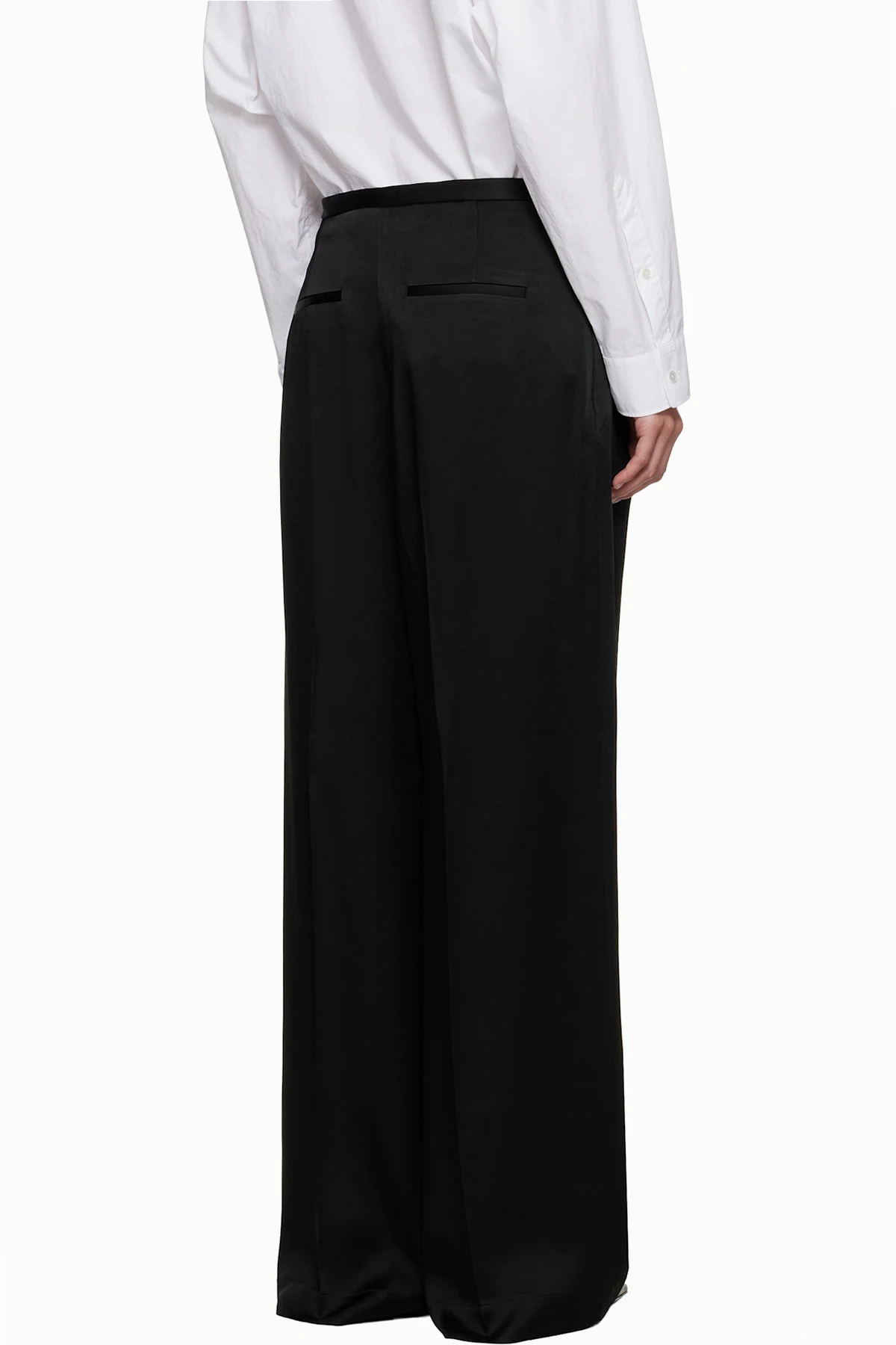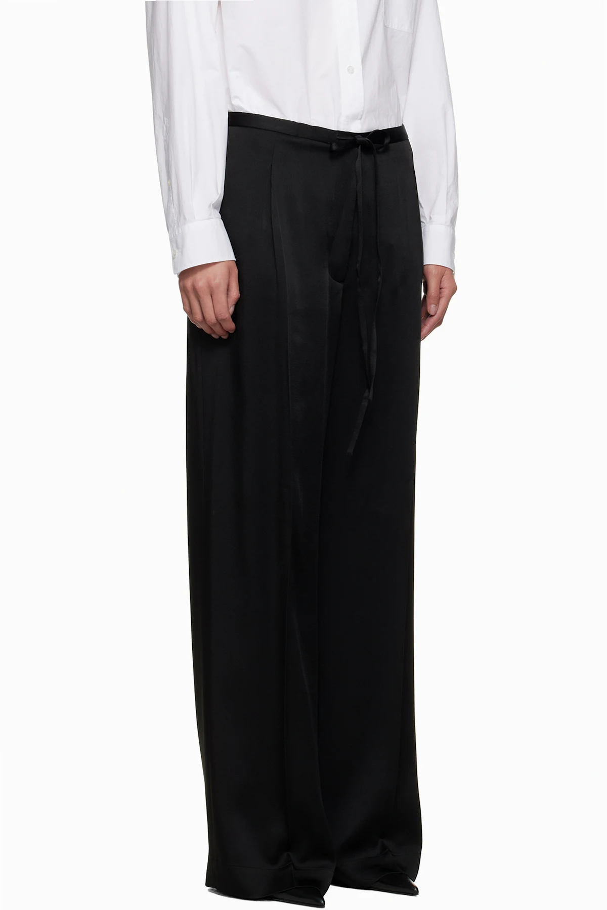 Satin trousers.