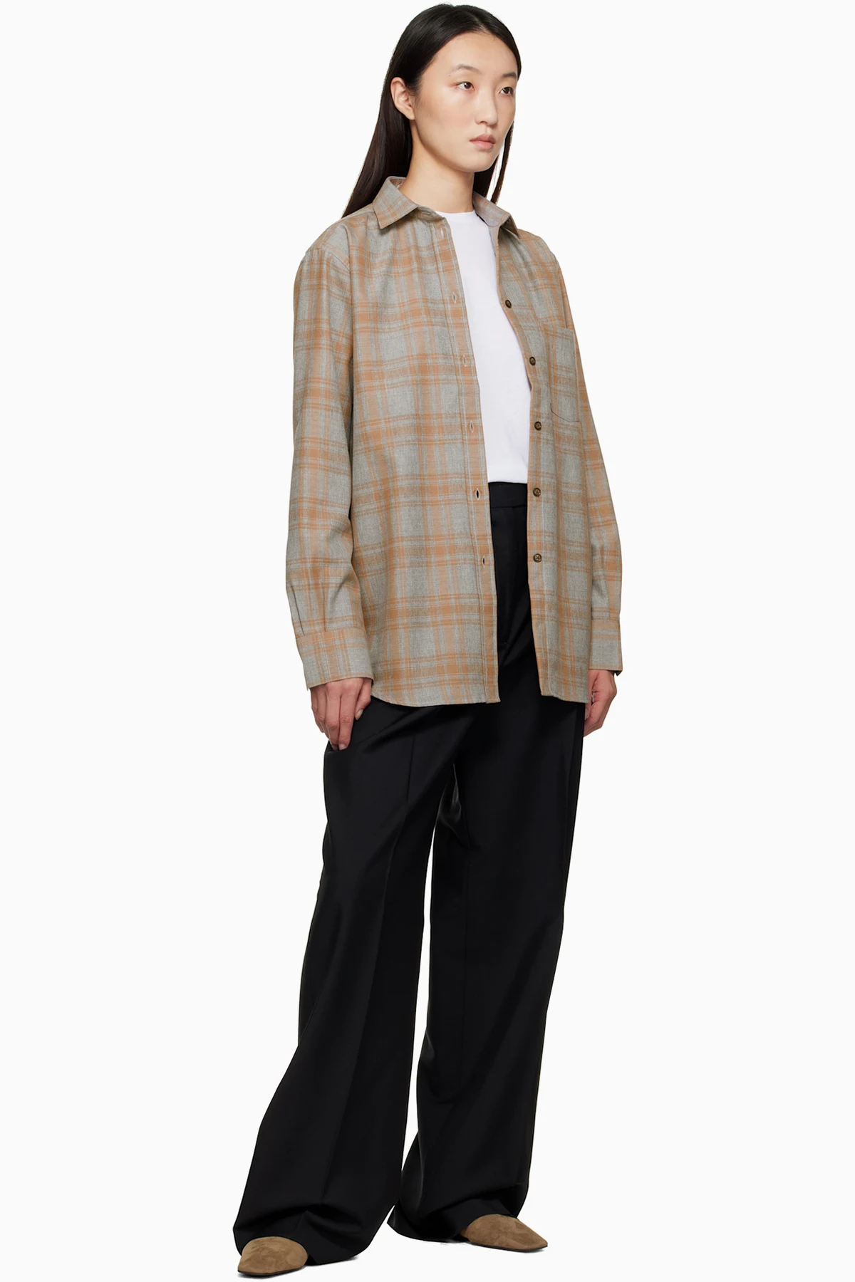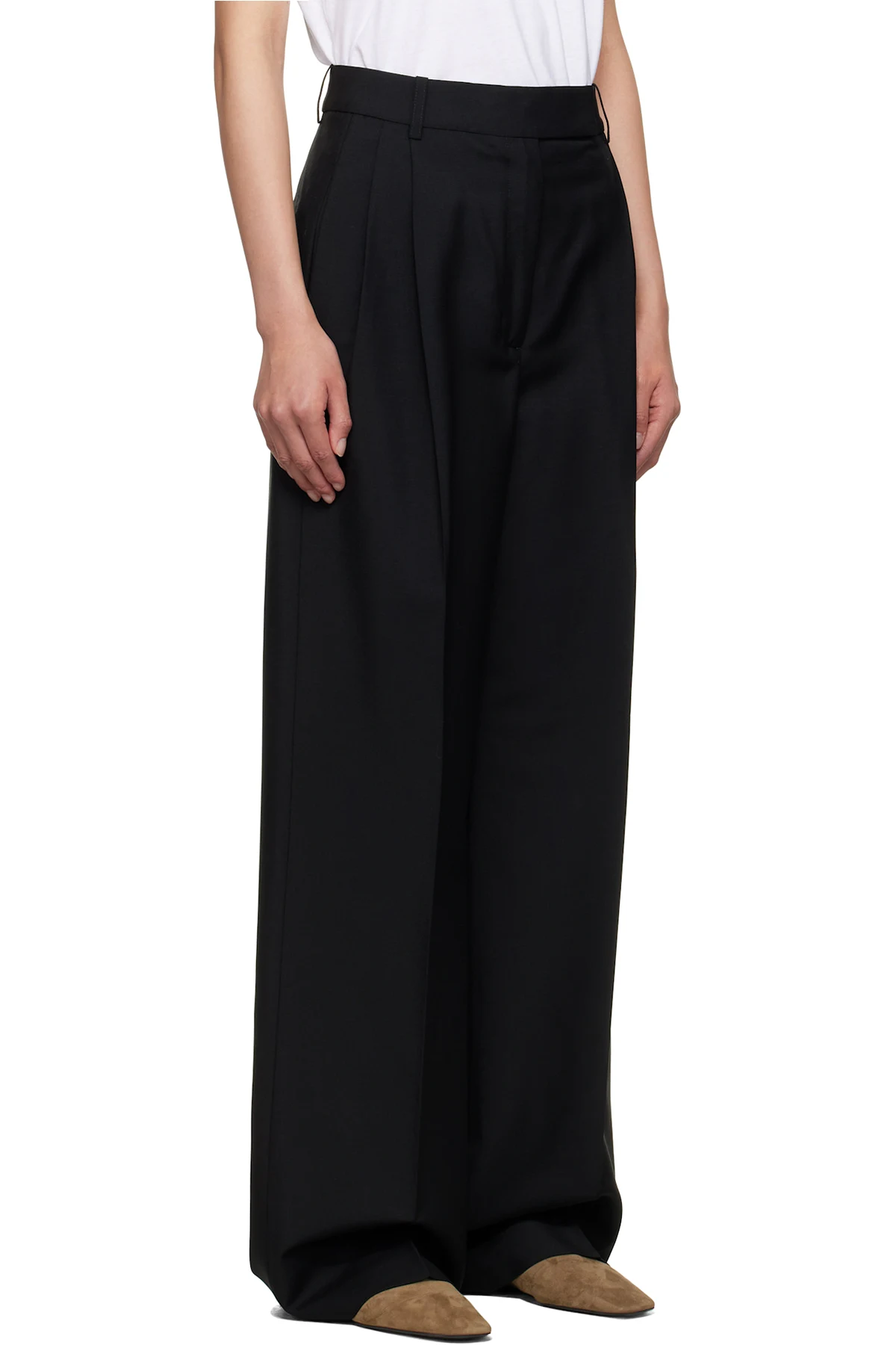 · Pleats at waist