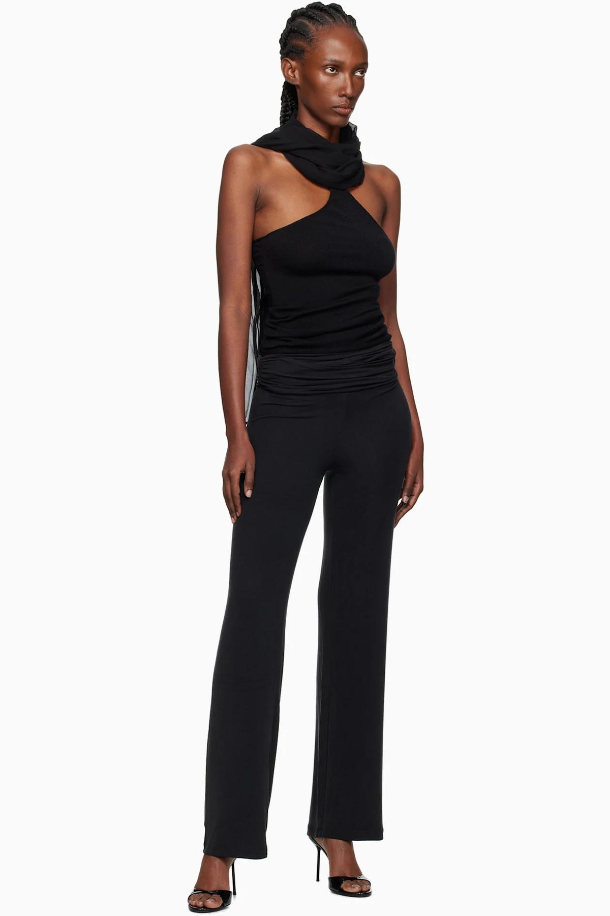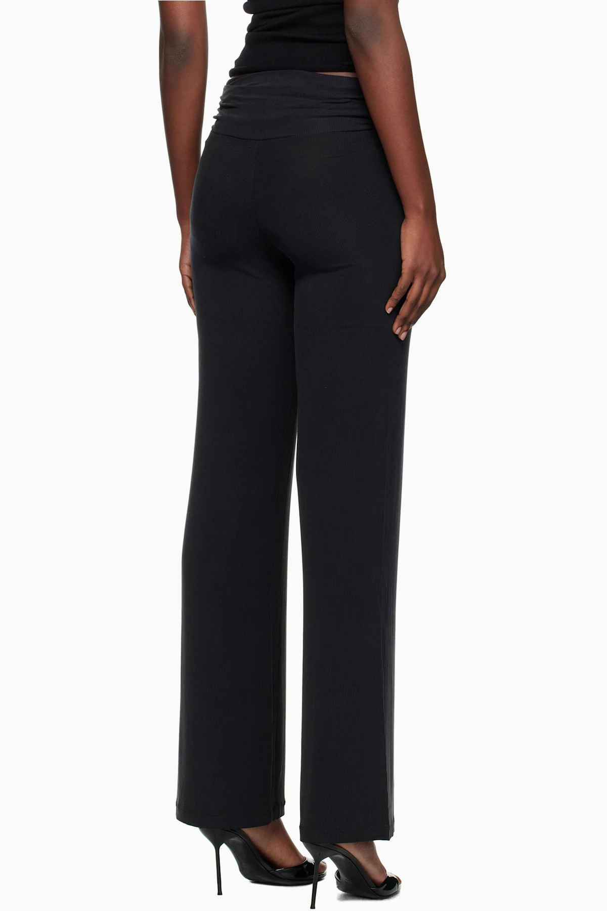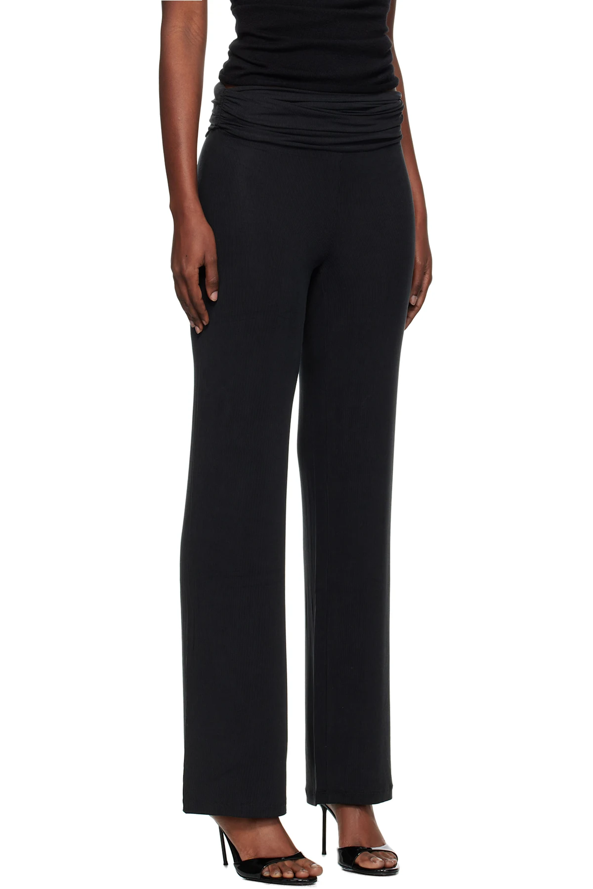 Stretch cupro ribbed jersey trousers. Ruching at foldover waistband.