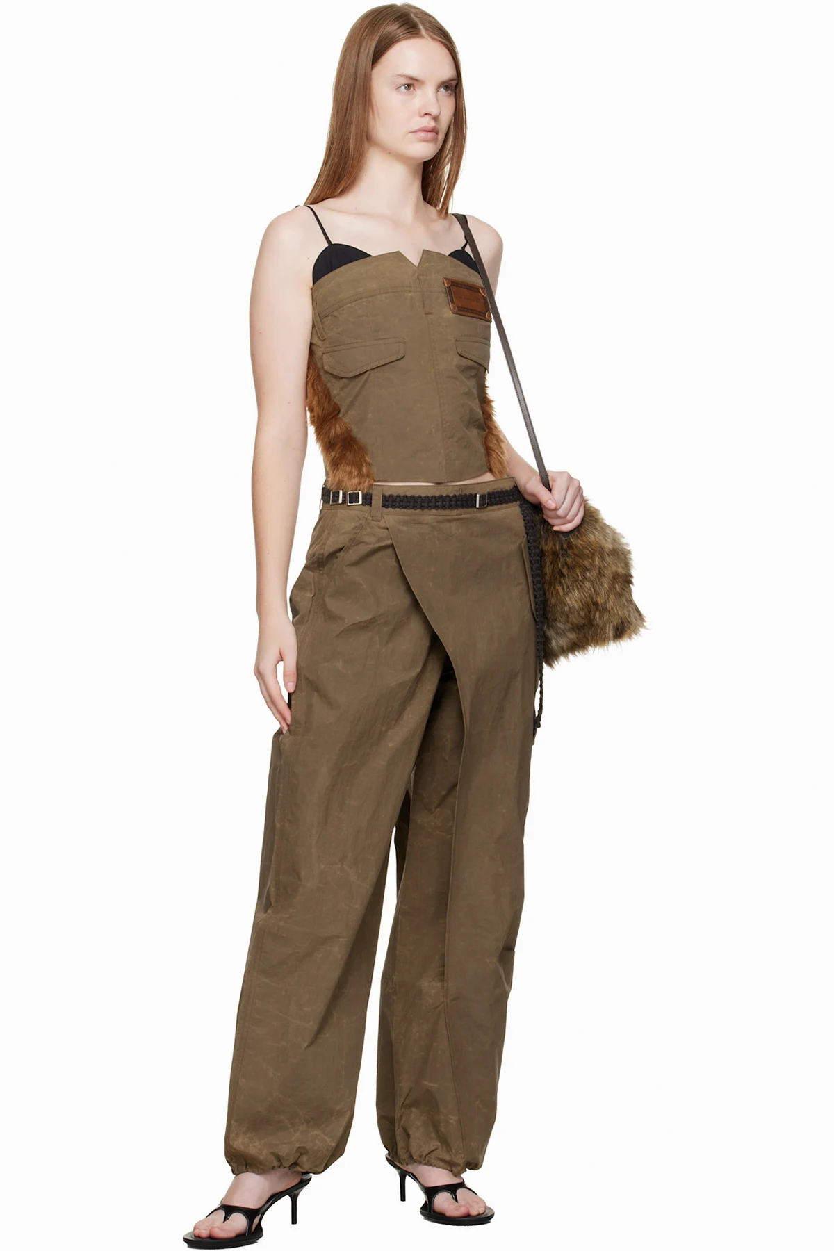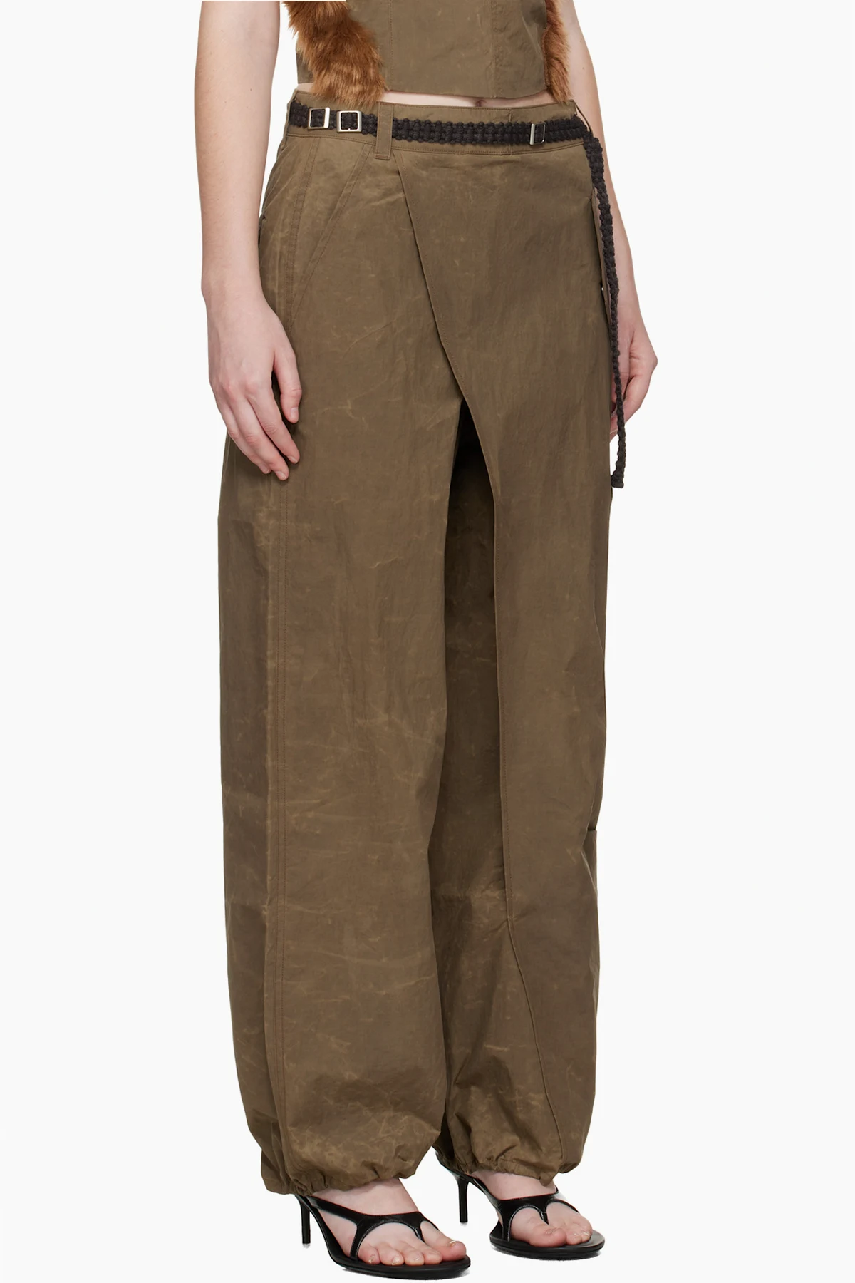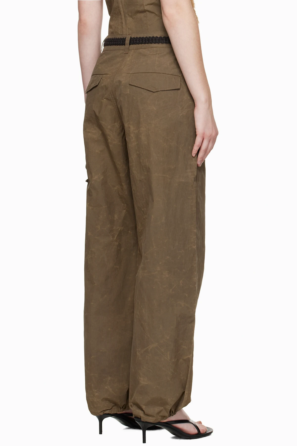 Crinkled nylon canvas cargo pants.