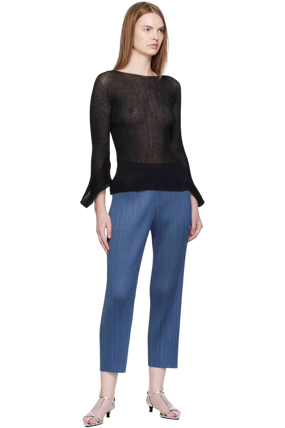 Garment-pleated tricot trousers.