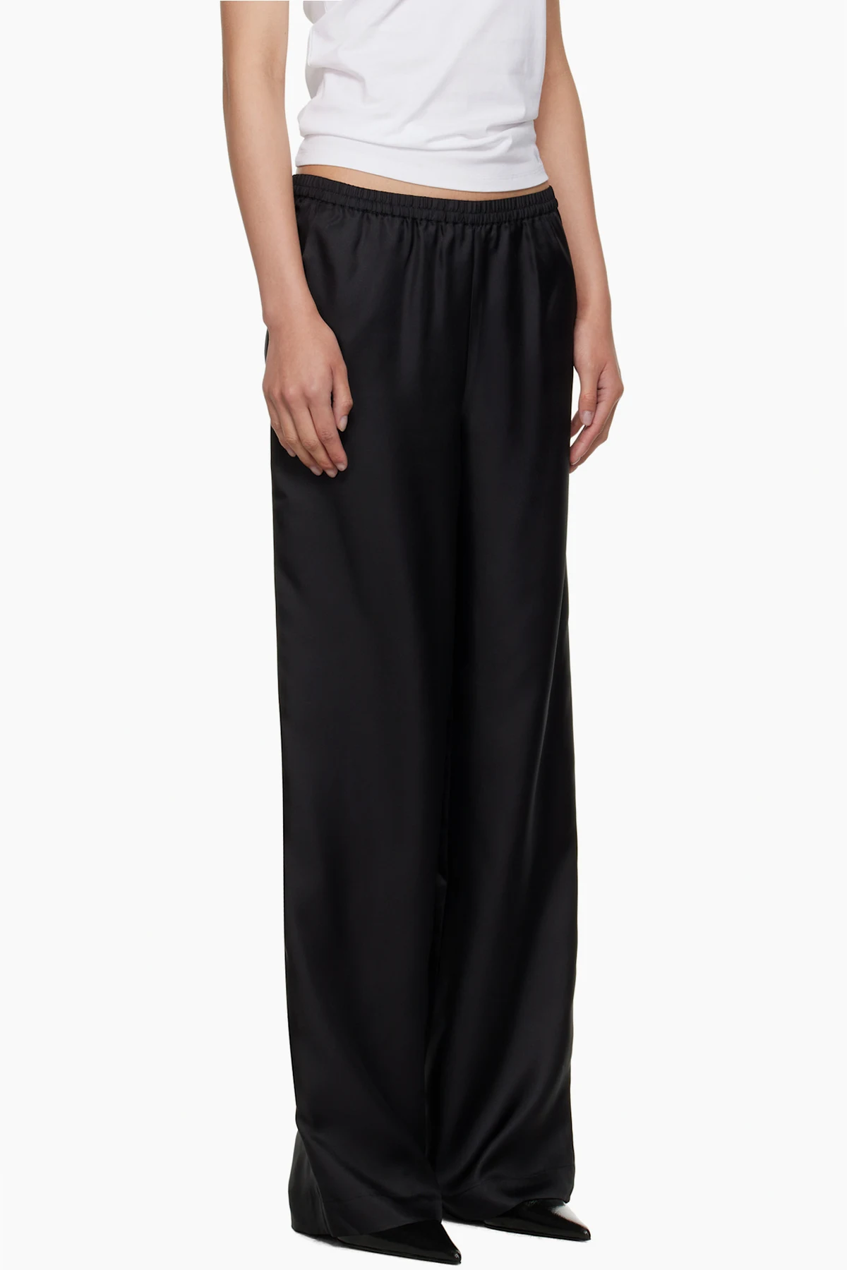 Black Alera Wide-Leg Silk Trousers
