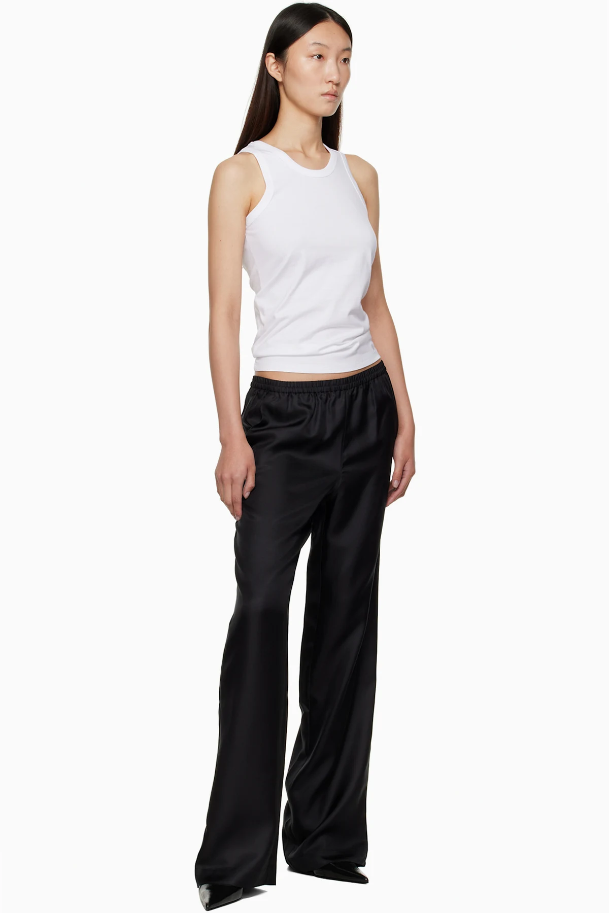 Silk twill trousers.