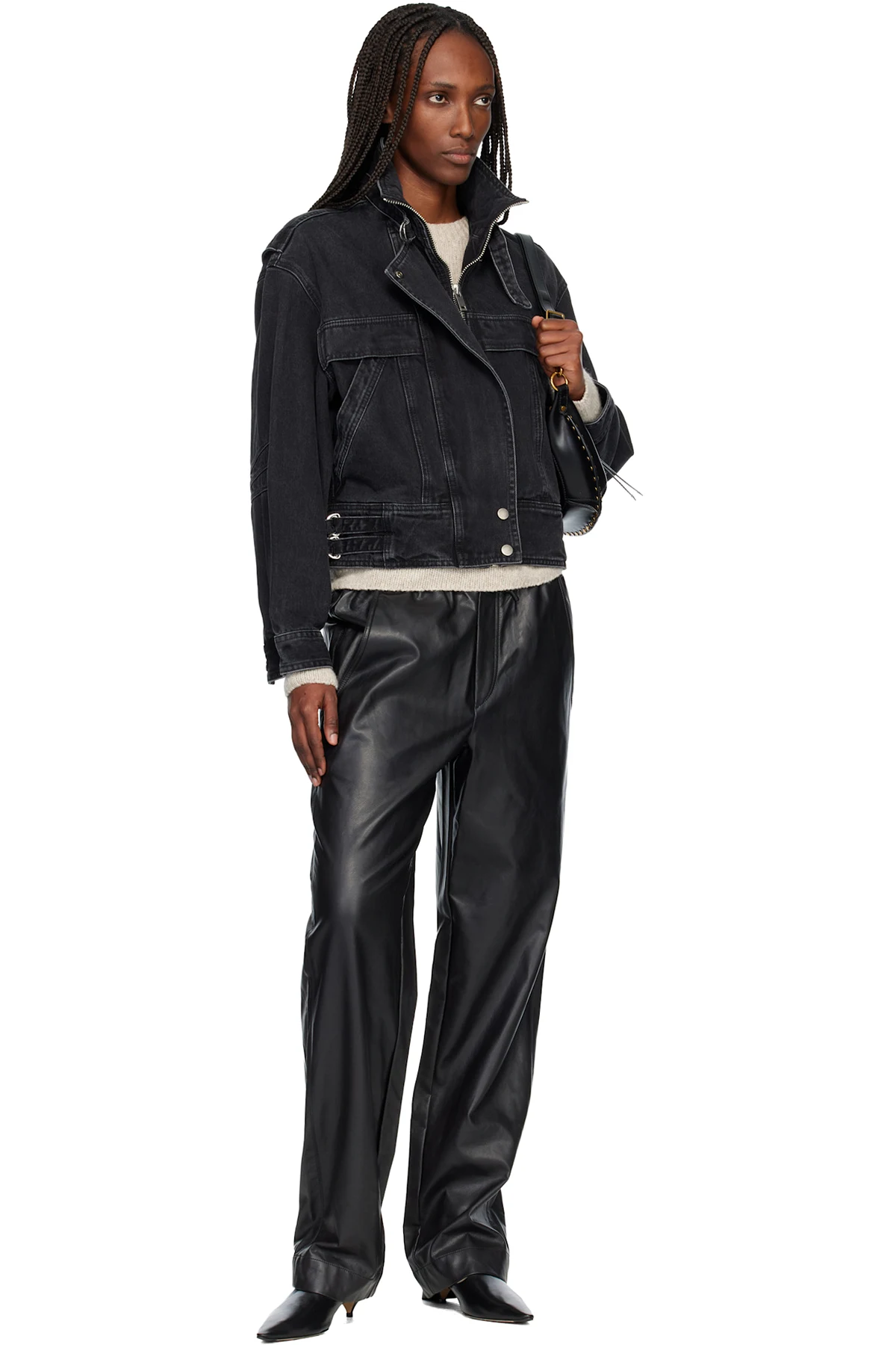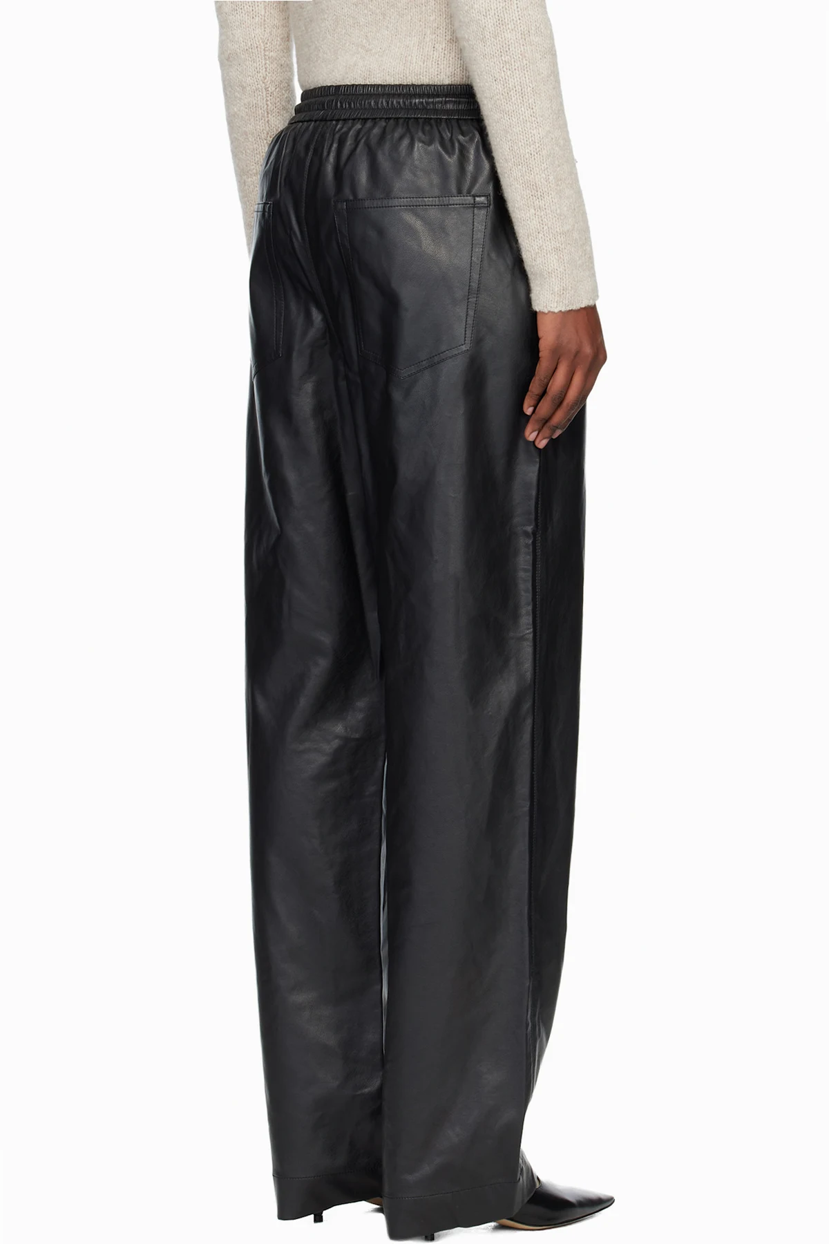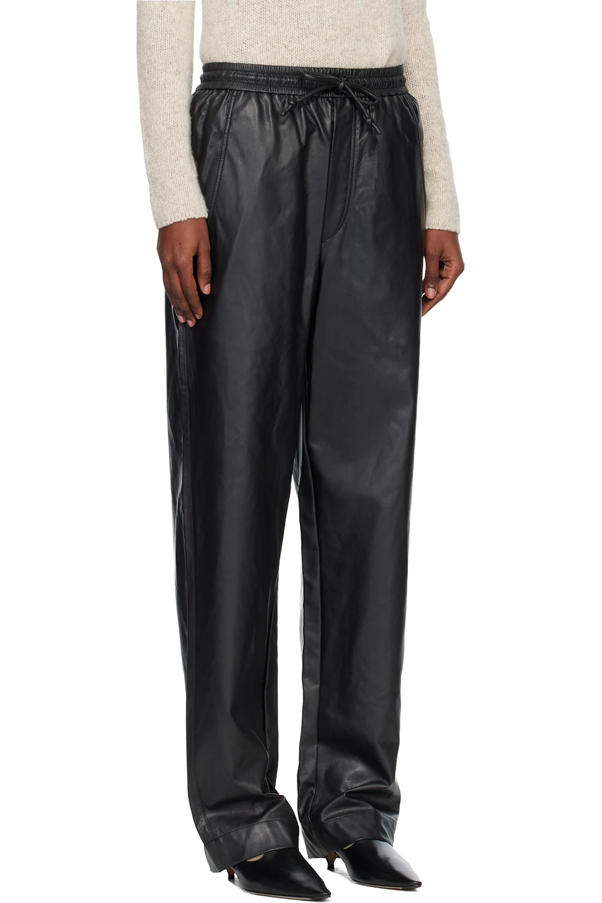 Grained faux-leather trousers.