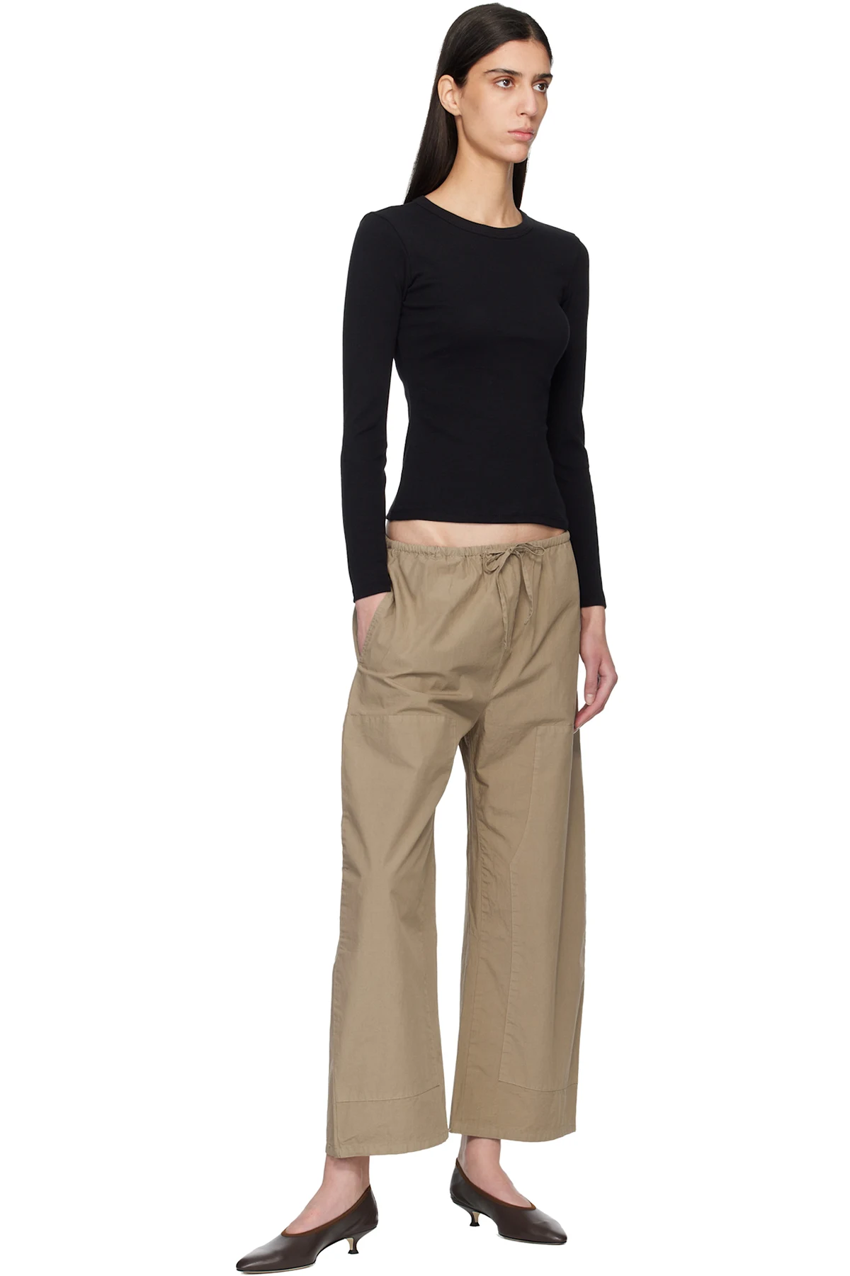 Garment-dyed cotton poplin trousers.