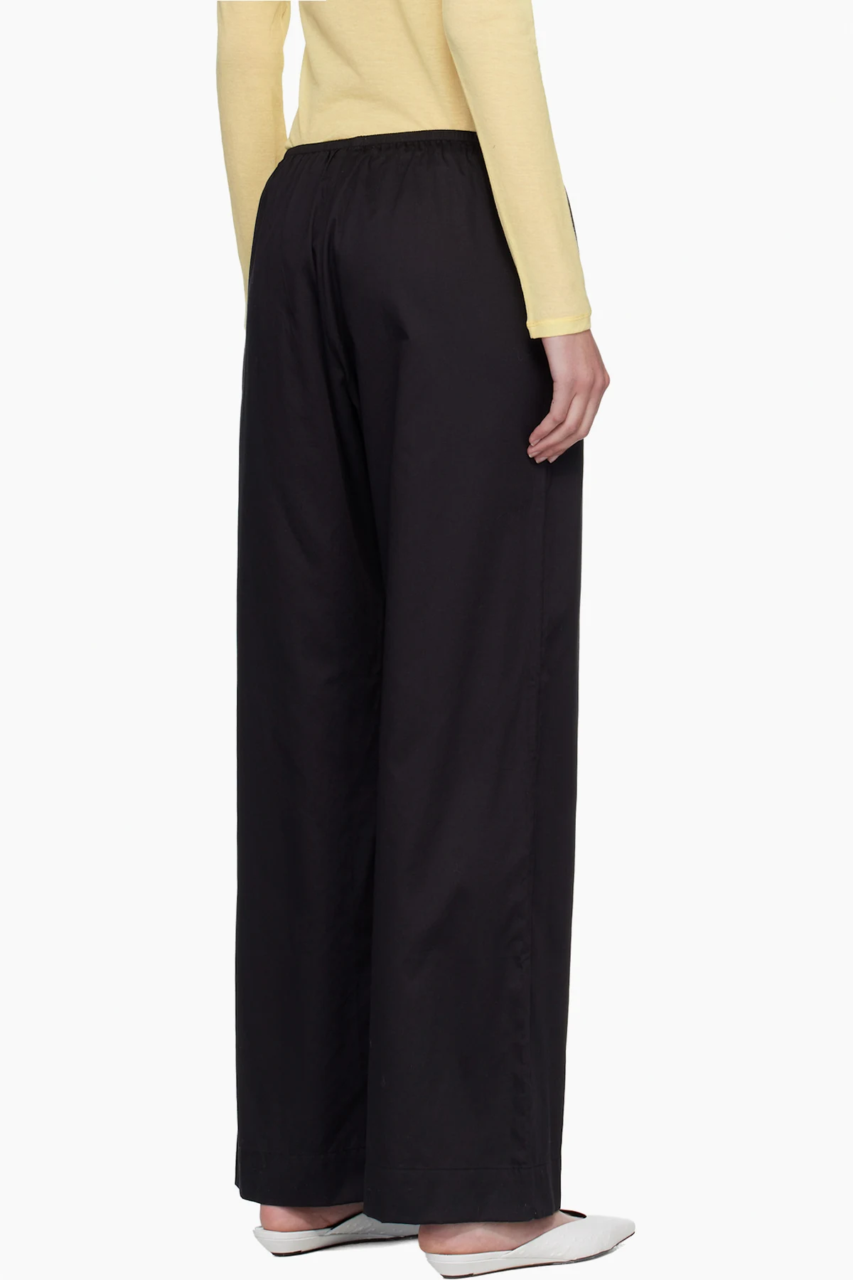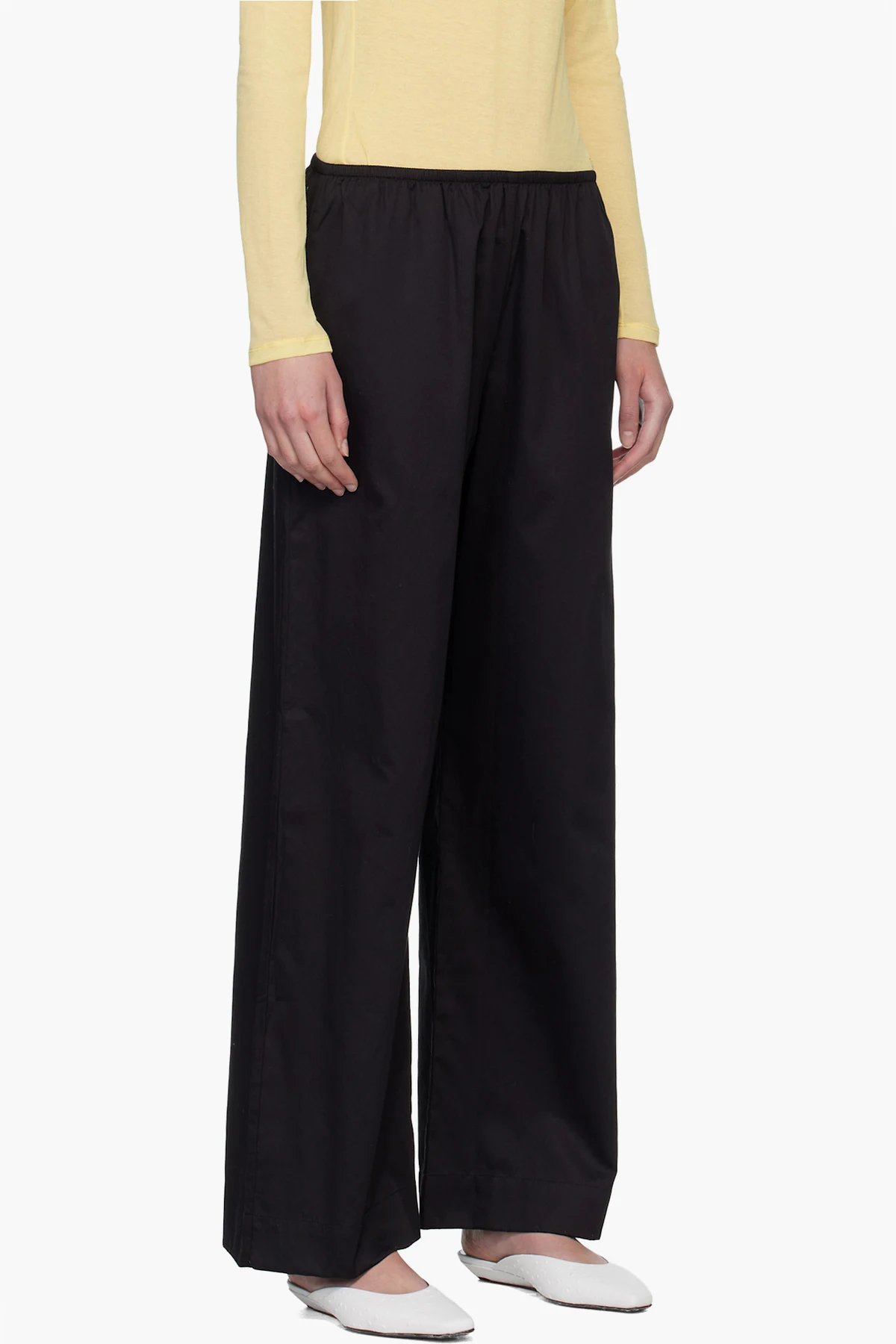 Cotton sateen trousers.