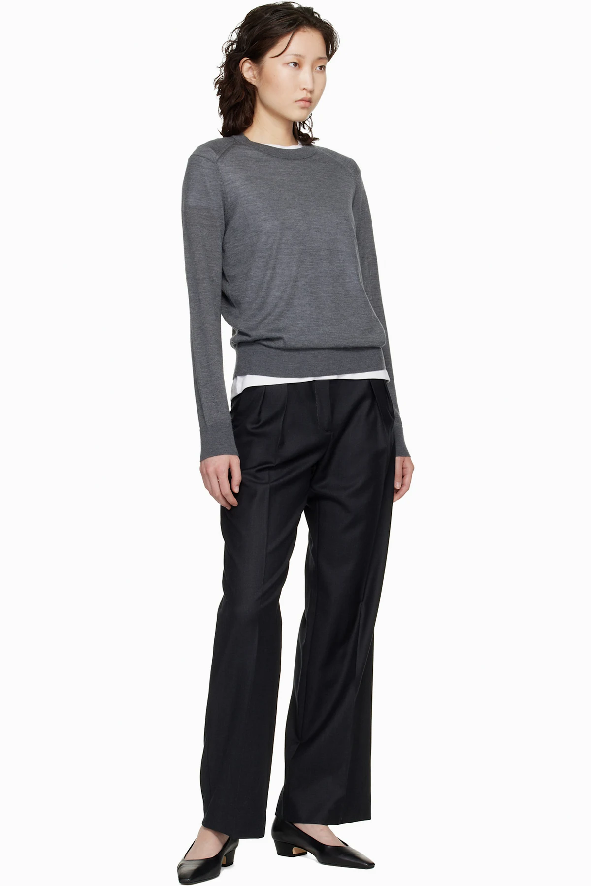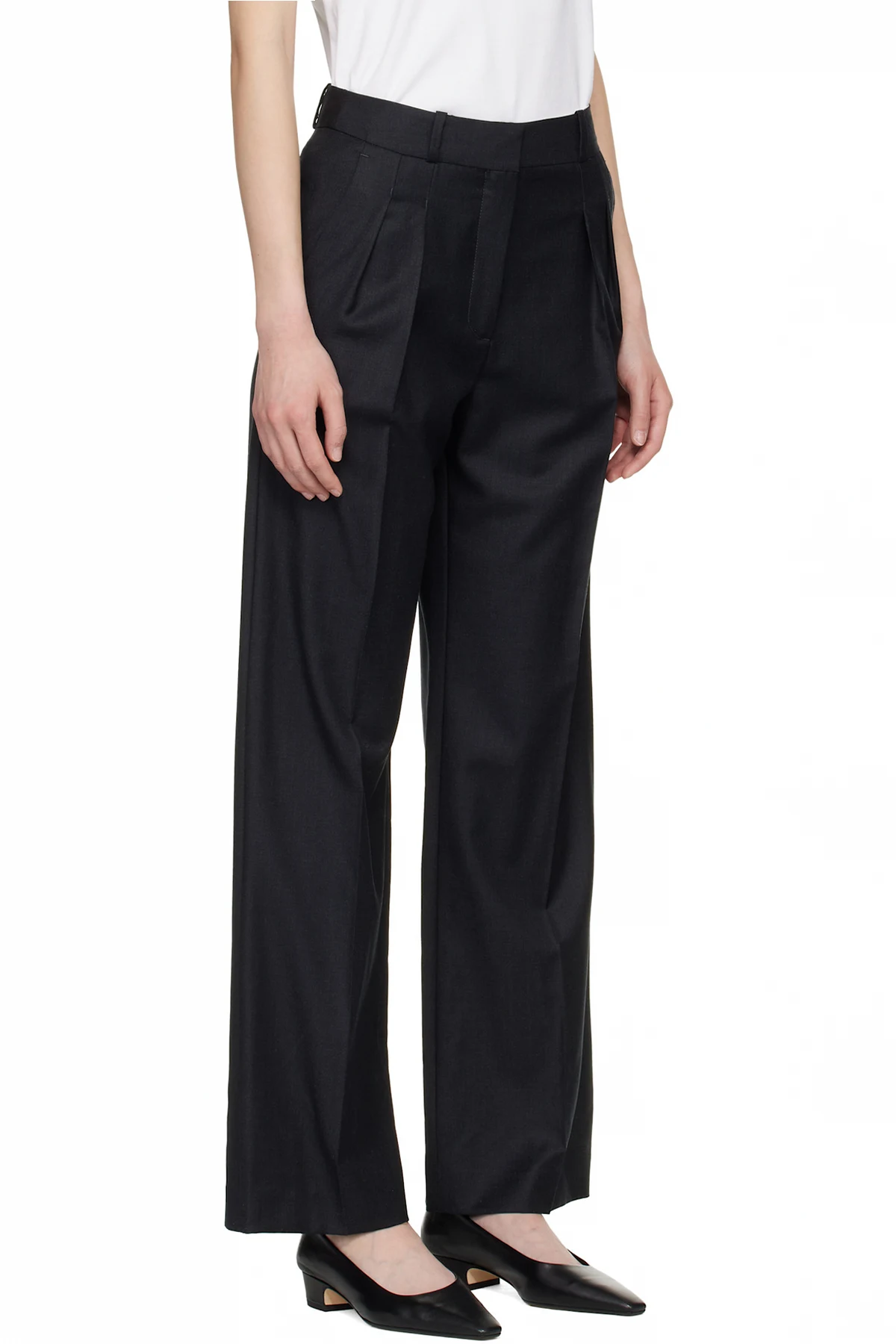 Virgin wool twill trousers.