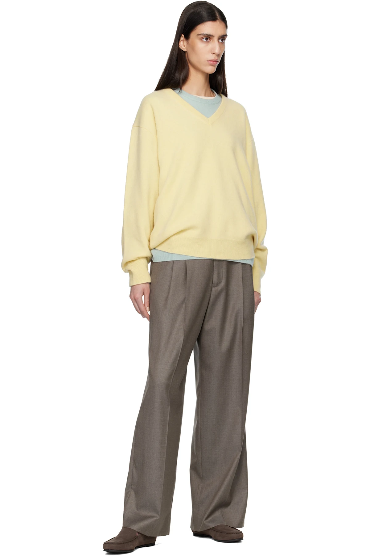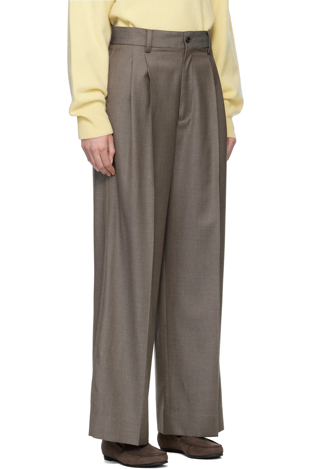 Gray Extra Fine Wool Long Wide Trousers