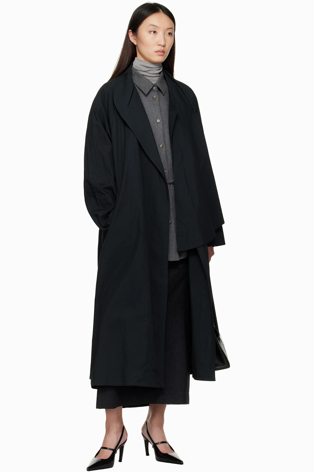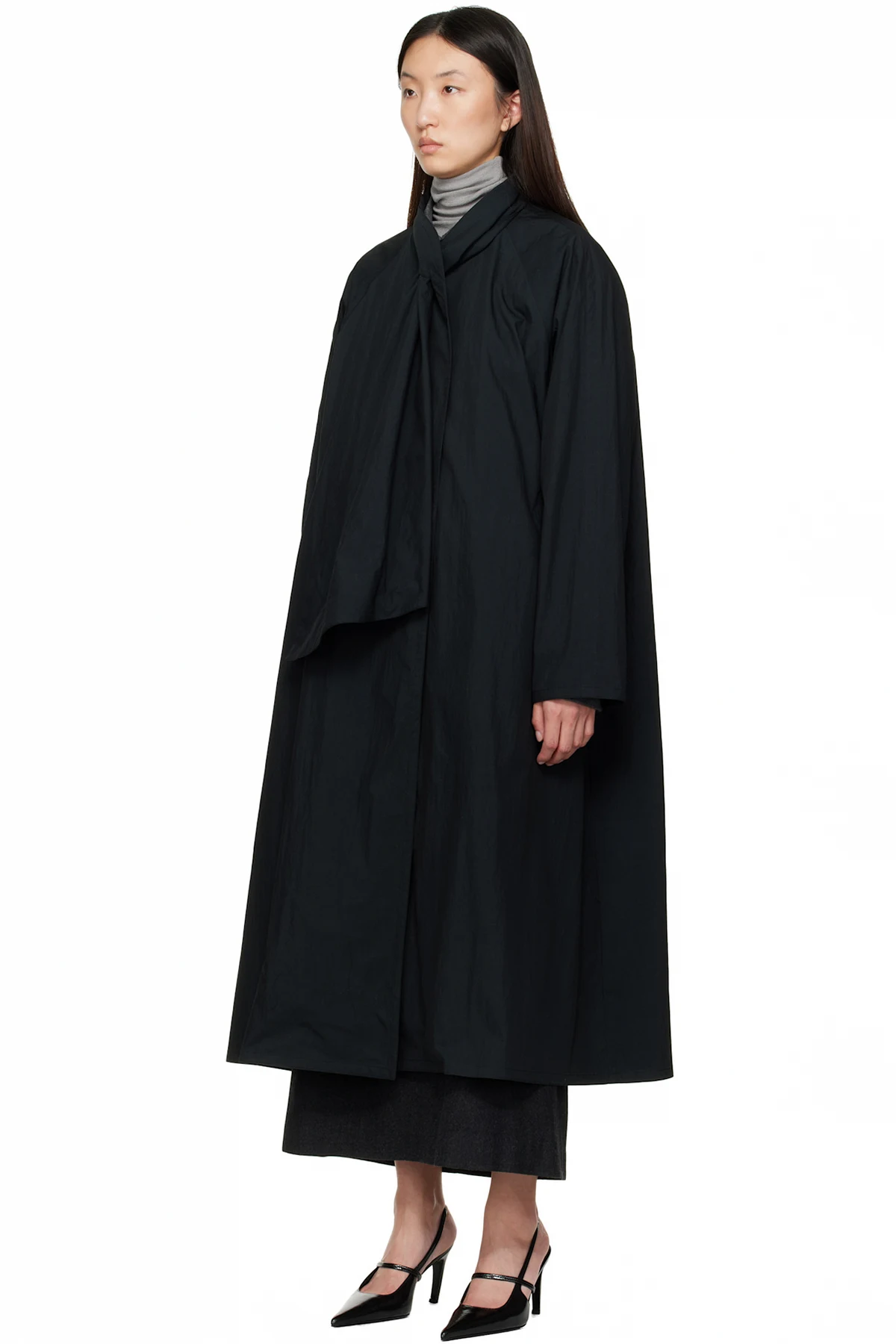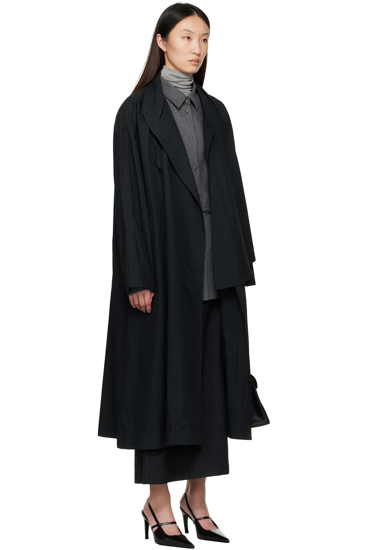 Black Water-Repellent Trench Coat