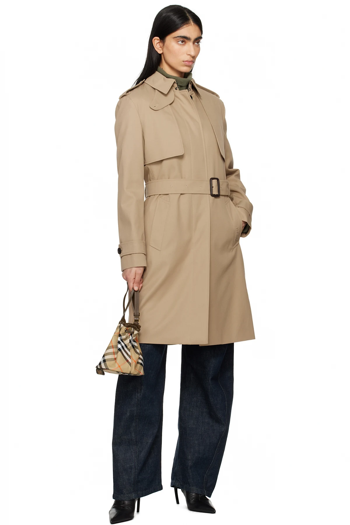 Polyester- and cotton-blend gabardine trench coat.