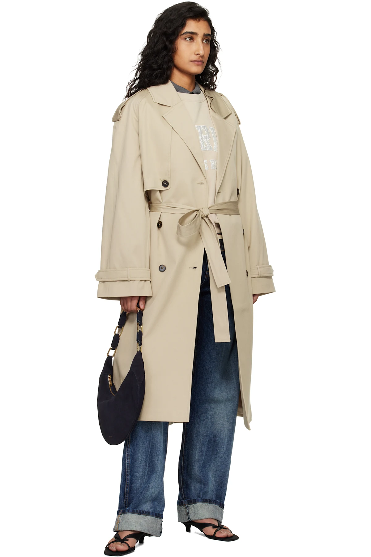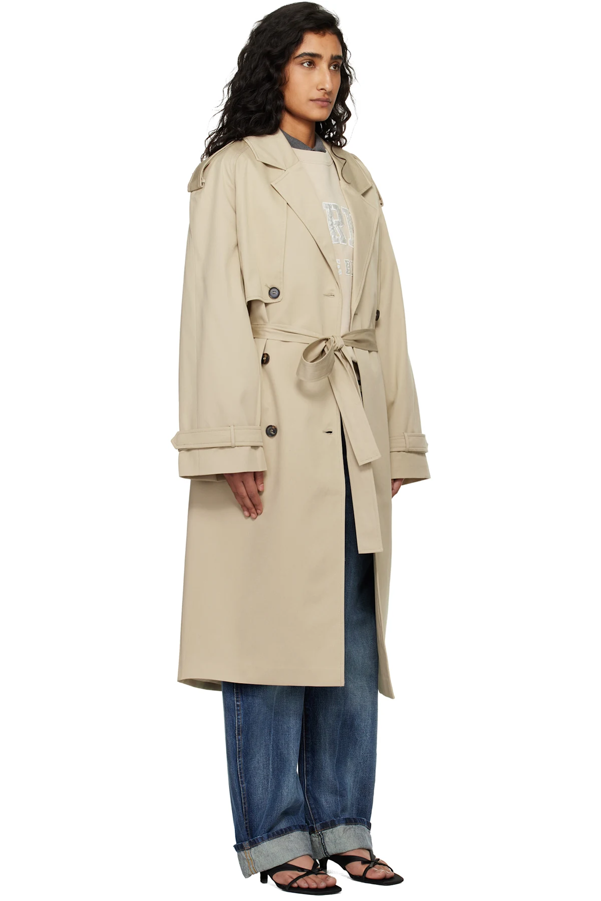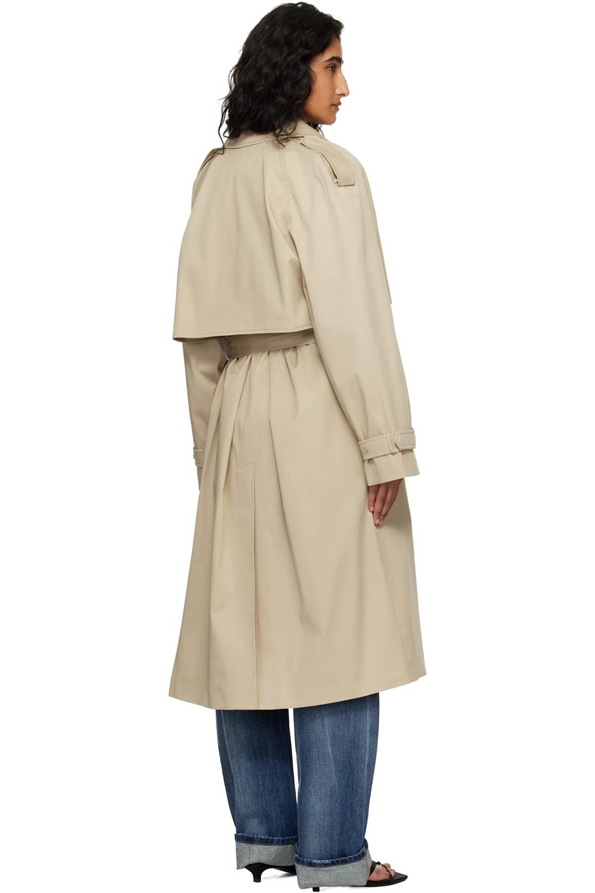 Stretch cotton gabardine trench coat.
